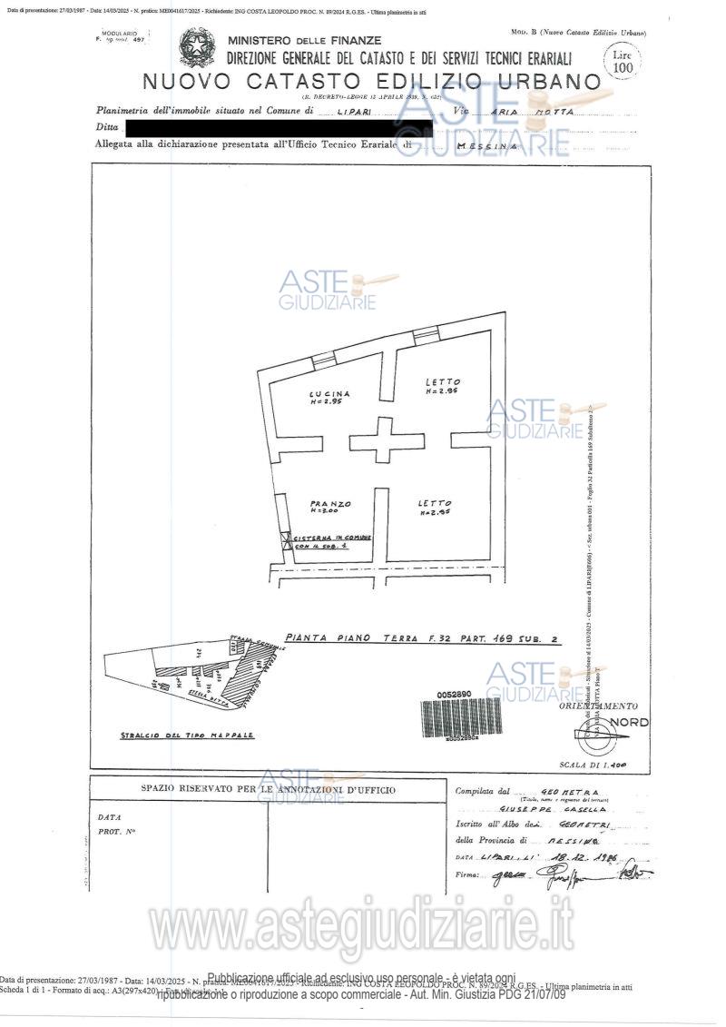 Custode Giudiziario: Dott. Antonio Italiano - Email "dottantonioitaliano@gmail.com"; Tel. 090/9281831.