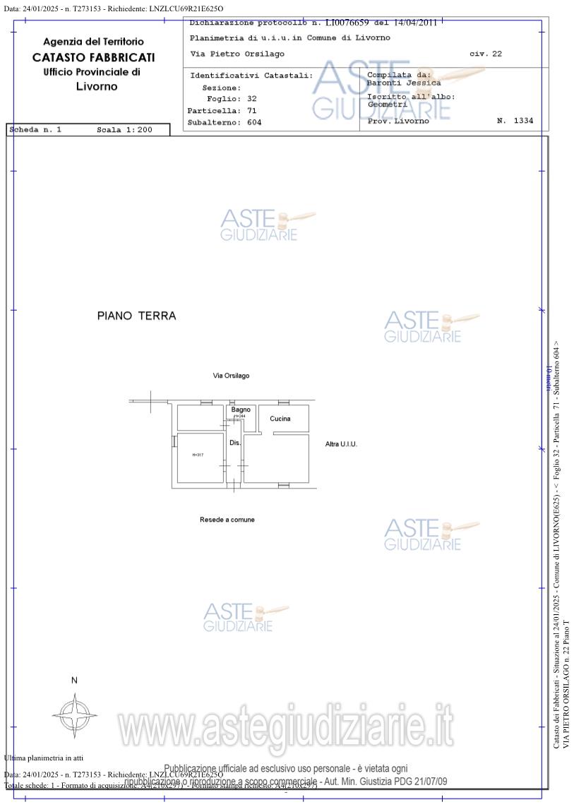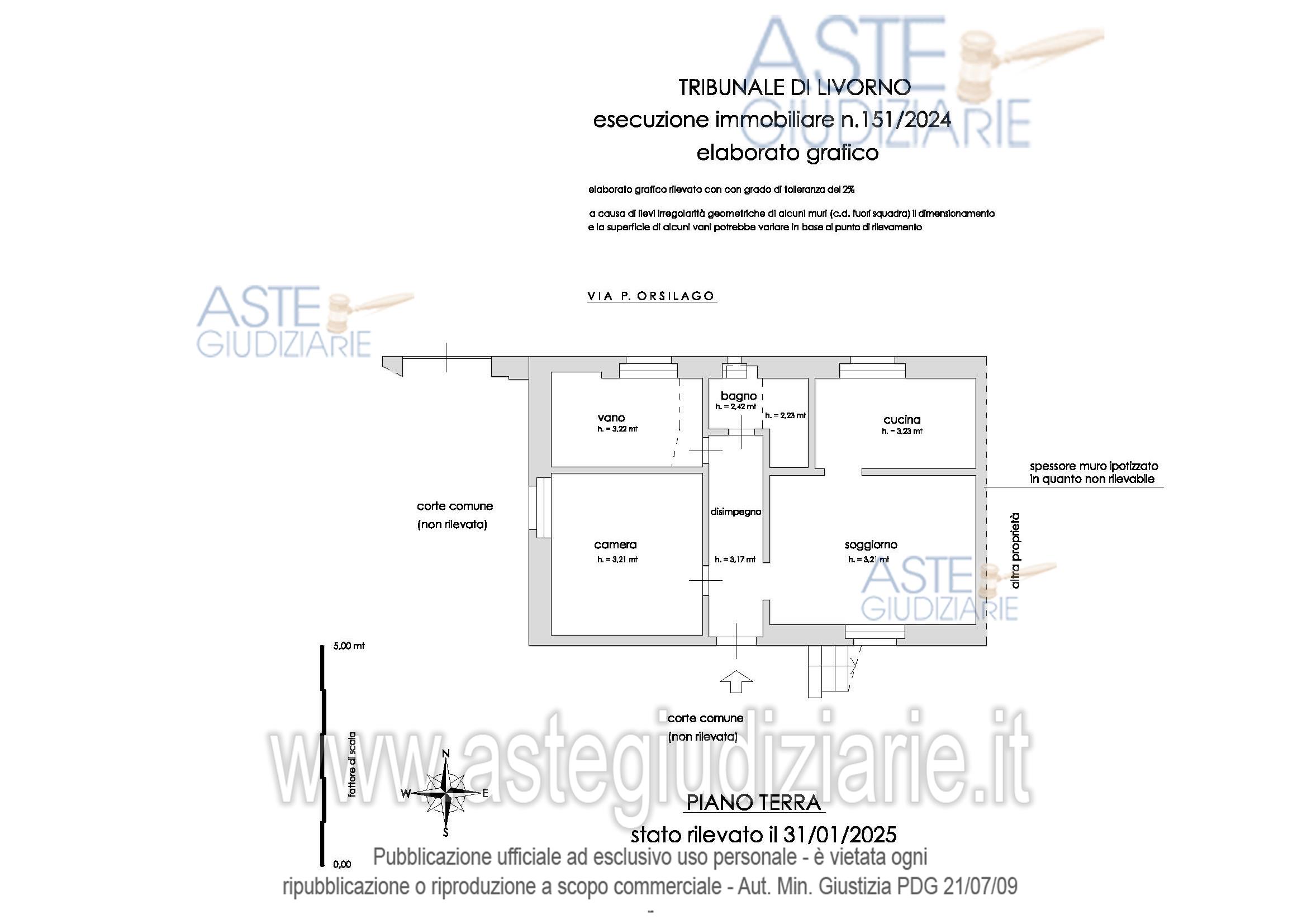 Vendita all'asta Senza incanto, con gara telematica asincrona - LOTTO UNICO: Appartamento per civile abitazione, al piano terra, composto da tre vani utili, cucina, bagno ed ingresso/disimpegno. Prezzo base € 103.950,00 (offerta minima € 77.962,50). Data inizio operazioni di vendita: 22/10/2025 ore 12:00. Giudice Dott. Simona Capurso. Professionista delegato alla vendita Avv. Giovanni Ciro Pacilio - Email "giovanniciro.pacilio@ordineavvocatilivorno.it"; Cell. 3288268114; Tel. 0565222363. Custode Giudiziario Dott. Istituto Vendite Giudiziarie Di Pisa - Email "prenotazionilivorno@astagiudiziaria.com"; Tel. 050554790. Rif. Tribunale di Livorno - Espropriazione immobiliare (cartabia) n. 151/2024