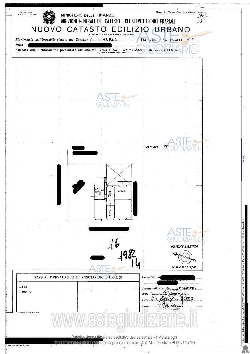 Vendita all'asta Senza incanto, con gara telematica asincrona - LOTTO UNICO: Appartamento posto al quinto piano di un immobile di cinque piani e sottotetto, senza ascensore, costituito da cucina, piccolo disbrigo, due vani, locale idro-sanitario ed un terrazzo. Immobile censito al Catasto Fabbricati del Comune di LIVORNO (E625) al Foglio 17, Particella 1982, Sub. 14 Cat. A/2, Classe 1, Consistenza 3,5 vani, Superficie 68,75 mq , Rendita Euro 379,60. Prezzo base € 52.469,00 (offerta minima € 39.752,00). Data inizio operazioni di vendita: 03/03/2026 ore 10:00. Giudice Dott. Simona Capurso. Professionista delegato alla vendita Dott. Juri Scardigli - Email "juri.scardigli@studiostg.eu"; Tel. 0586883174. Custode Giudiziario Istituto Vendite Giudiziarie Di Pisa - Email "prenotazionilivorno@astagiudiziaria.com"; Tel. 050554790. Rif. Tribunale di Livorno - Espropriazione immobiliare (cartabia) n. 181/2024