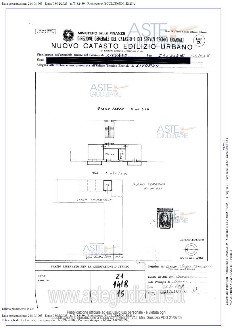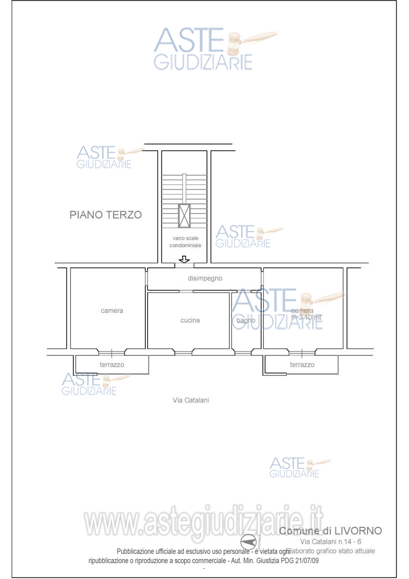 Vendita all'asta Senza incanto, con gara telematica asincrona - LOTTO UNICO: Dal vano scale di uso condominiale prospettante sulla pubblica via, al piano terzo si haingresso all’appartamento, direttamente al disimpegno che serve tutti i vani costituenti. Sullato destro e sinistro si trovano due camere prospettanti sulla facciata ovest con porta finestrae terrazzo, in fronte cucina zona pranzo con angolo cottura e bagno con finestra. Prezzo base € 60.000,00 (offerta minima € 45.000,00). Data inizio operazioni di vendita: 02/12/2025 ore 11:00. Giudice Simona Capurso. Professionista delegato alla vendita Dott. Benedetta Veratti. Custode Giudiziario Istituto Vendite Giudiziarie Di Pisa - Email "prenotazionilivorno@astagiudiziaria.com". Rif. Tribunale di Livorno - Espropriazione immobiliare (cartabia) n. 137/2024