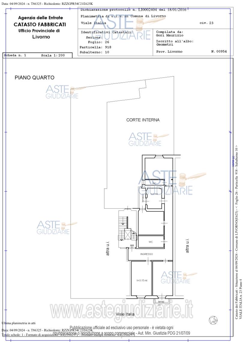 Vendita in attesa dell'emissione del nuovo bando d'asta. LOTTO 1: Appartamento occupante porzione del quarto piano di edificio dotato di ascensore. Ultimo prezzo base € 315.000,00 (offerta minima € 236.250,00). Giudice Dott. Simona Capurso. Professionista delegato alla vendita Avv. Nicola Minervini - Email "info@studiolegaleminervini.it"; Tel. 0586810813. Custode Giudiziario Istituto Vendite Giudiziarie Di Pisa - Email "prenotazionilivorno@astagiudiziaria.com"; Tel. 050554790. Rif. Tribunale di Livorno - Espropriazione immobiliare (cartabia) n. 124/2024