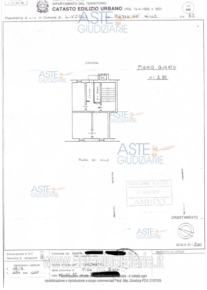 Vendita in attesa dell'emissione del nuovo bando d'asta. LOTTO UNICO: Appartamento ubicato posto al piano 4 di circa 73 mq lordi, composto da cucina, ripostiglio, bagnoe 2 camere ed un piccolo balcone chiuso a veranda. Ultimo prezzo base € 60.000,00 (offerta minima € 45.000,00). Giudice Elisa Pinna. Professionista delegato alla vendita Avv. Piergiorgio Simoni - Email "piergio.simoni@tiscali.it"; Cell. 3338722313; Tel. 0586932312. Custode Giudiziario Istituto Vendite Giudiziarie Di Pisa - Email "prenotazionilivorno@astagiudiziaria.com". Rif. Tribunale di Livorno - Espropriazione immobiliare (cartabia) n. 58/2025