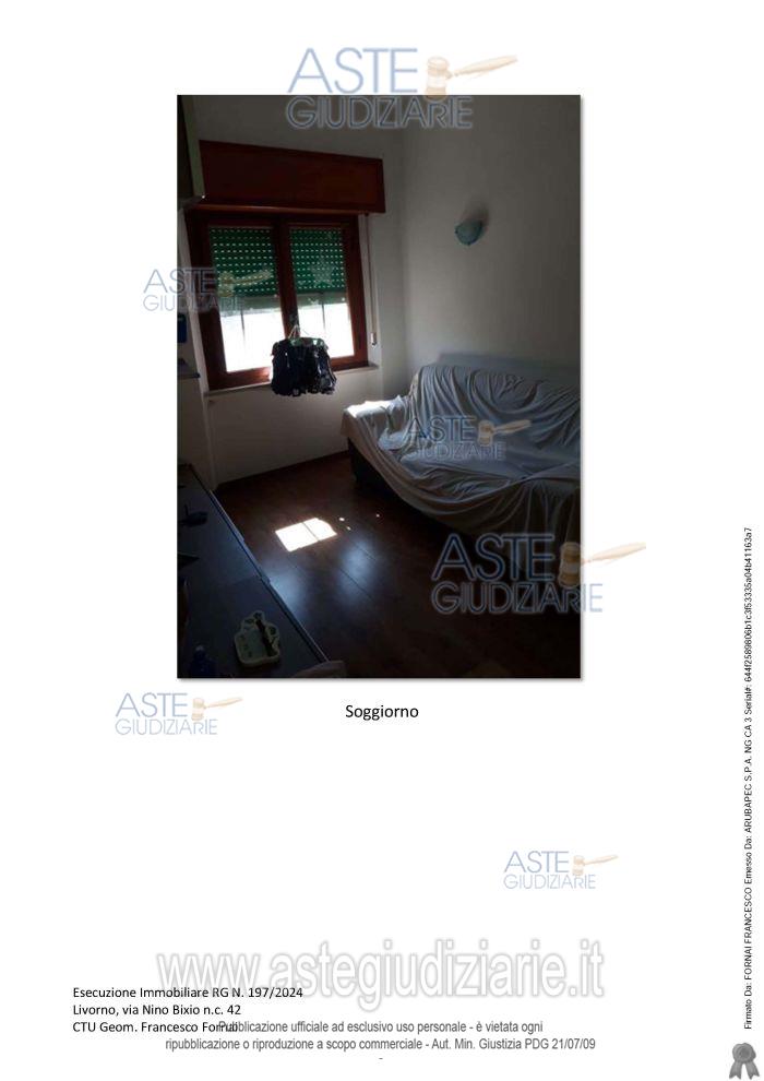 Vendita all'asta Senza incanto, con gara telematica asincrona - LOTTO 1: Appartamento facente parte di un fabbricato di maggiore consistenza sviluppato cinque piani fuori terra, di 3,5 vani e mq. 54,00 di superficie catastale. L'appartamento è composto da ingresso, cucina/pranzo, soggiorno, disimpegno, bagno e camera. Prezzo base € 49.650,96 (offerta minima € 37.238,22). Data inizio operazioni di vendita: 28/05/2026 ore 11:30. Professionista delegato alla vendita Avv. Gianclaudio Pazzaglia. Custode Giudiziario Istituto Vendite Giudiziarie Di Pisa - Email "prenotazionilivorno@astagiudiziaria.com". Rif. Tribunale di Livorno - Espropriazione immobiliare (cartabia) n. 197/2024