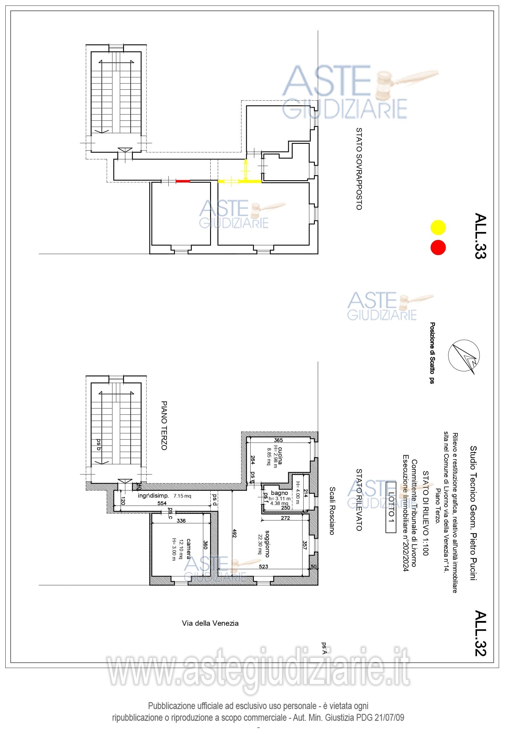 Vendita all'asta Senza incanto, con gara telematica asincrona - LOTTO 1: Abitazione in condominio, sita in Livorno via della Venezia n°14, al piano terzo, il secondo partendo da sinistra montando le scale, composto di ingresso\disimpegno, camera, soggiorno e cucina, censito nel comune di Livorno al foglio 93 part.140 sub 606. Sono presenti leggeri abusi edilizi (e relativa difformità catastale) parzialmente sanabili. Prezzo base € 104.600,00 (offerta minima € 78.450,00). Data inizio operazioni di vendita: 25/03/2026 ore 15:00. Professionista delegato alla vendita Avv. Massimo Cenerini. Custode Giudiziario Istituto Vendite Giudiziarie Di Pisa - Email "prenotazionilivorno@astagiudiziaria.com". Rif. Tribunale di Livorno - Espropriazione immobiliare (cartabia) n. 202/2024