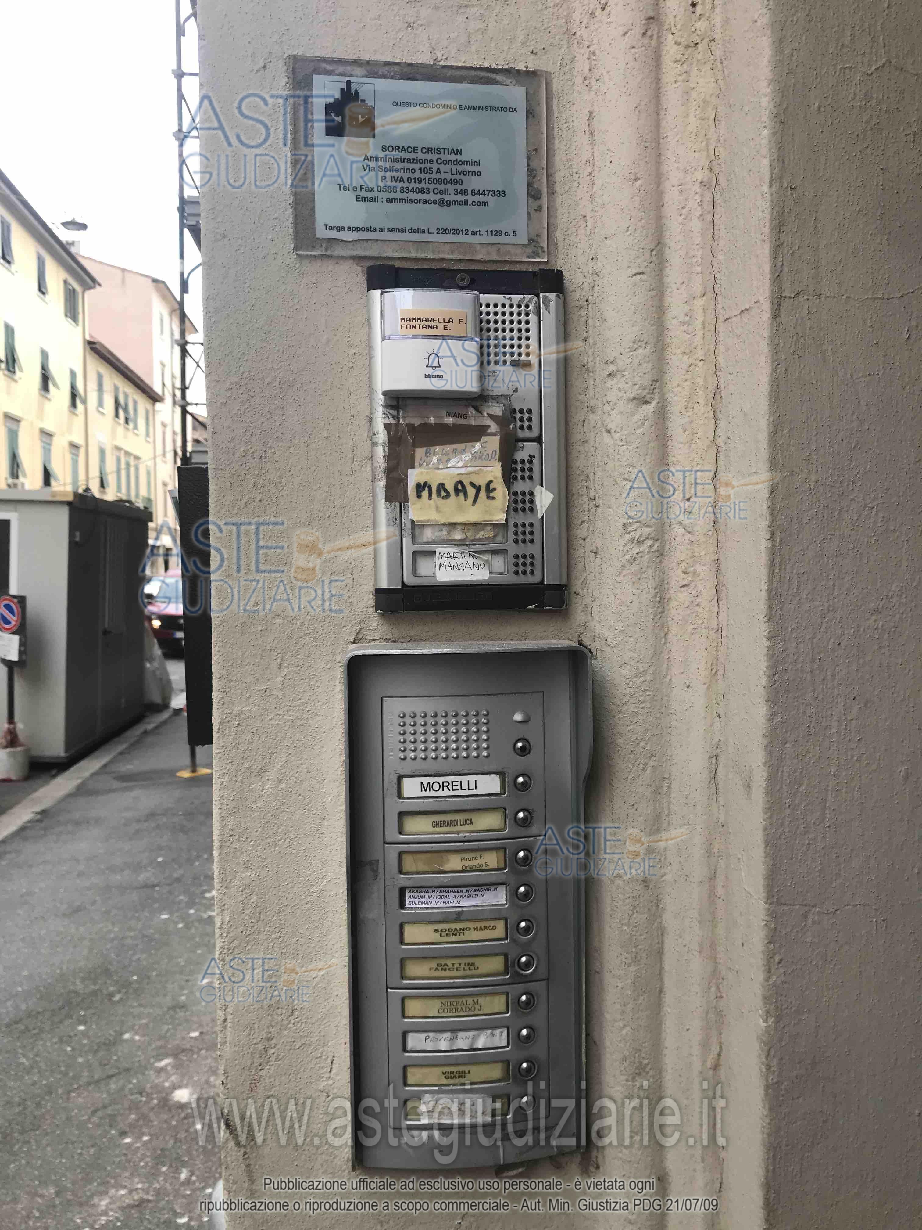 Vendita all'asta Senza incanto, con gara telematica asincrona - LOTTO UNICO: Appartamento al piano primo. Prezzo base € 102.945,63 (offerta minima € 77.209,23). Data inizio operazioni di vendita: 09/04/2026 ore 12:00. Giudice Simona Capurso. Professionista delegato alla vendita Dott. Guglielmo Bianchi. Custode Giudiziario Istituto Vendite Giudiziarie Di Pisa - Email "prenotazionilivorno@astagiudiziaria.com". Rif. Tribunale di Livorno - Espropriazione immobiliare (cartabia) n. 66/2025