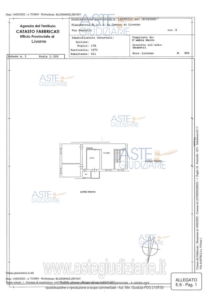 Vendita all'asta Senza incanto, con gara telematica asincrona - LOTTO UNICO: Appartamento al piano primo fuori terra con accesso attraverso atrio condominiale di altro fabbricato identificato al civico nr 7 di Via Santelli. L’appartamento è formato da ingresso, soggiorno-pranzo, cucina abitabile con balcone-terrazza, 2 camere da letto, bagno e balcone. Prezzo base € 83.250,00 (offerta minima € 62.437,50). Data inizio operazioni di vendita: 05/05/2026 ore 10:00. Professionista delegato alla vendita Dott. Maurizio Caschili. Custode Giudiziario Dott. Maurizio Caschili - Email "m.caschili@studiocaschili.it". Rif. Tribunale di Livorno - Esecuzione immobiliare post legge 80 n. 206/2019