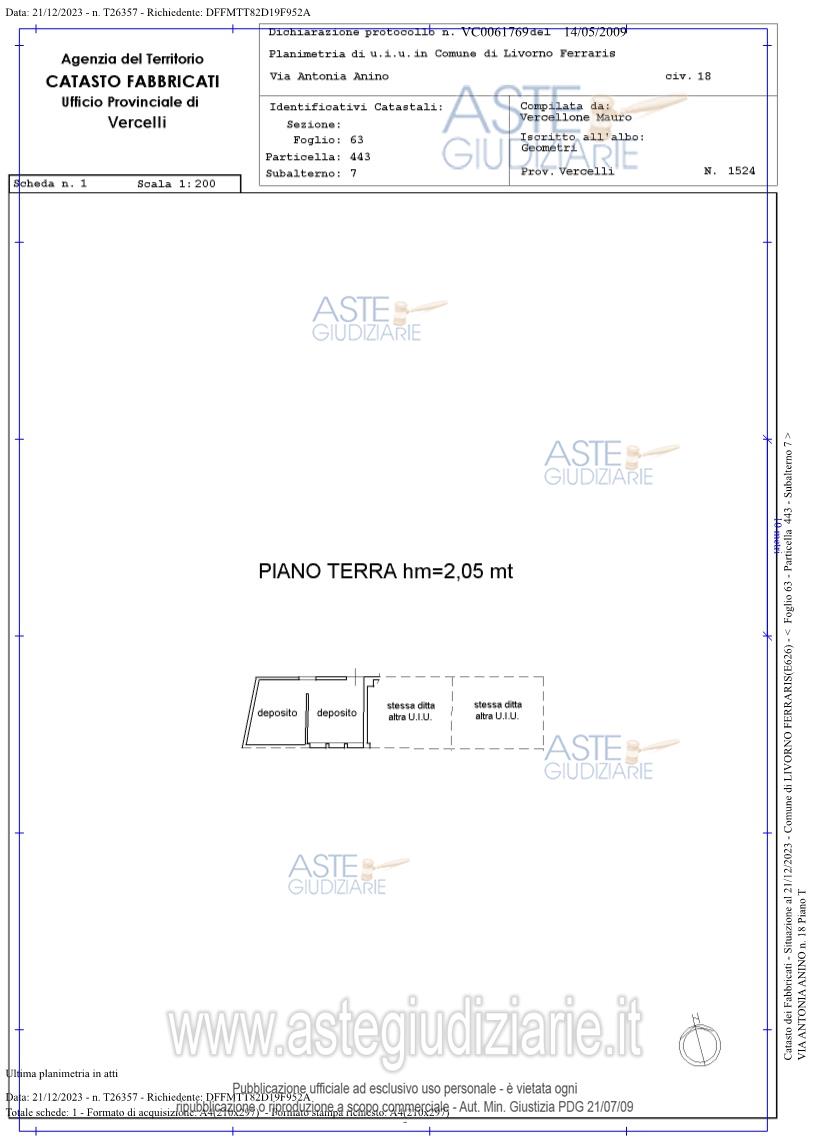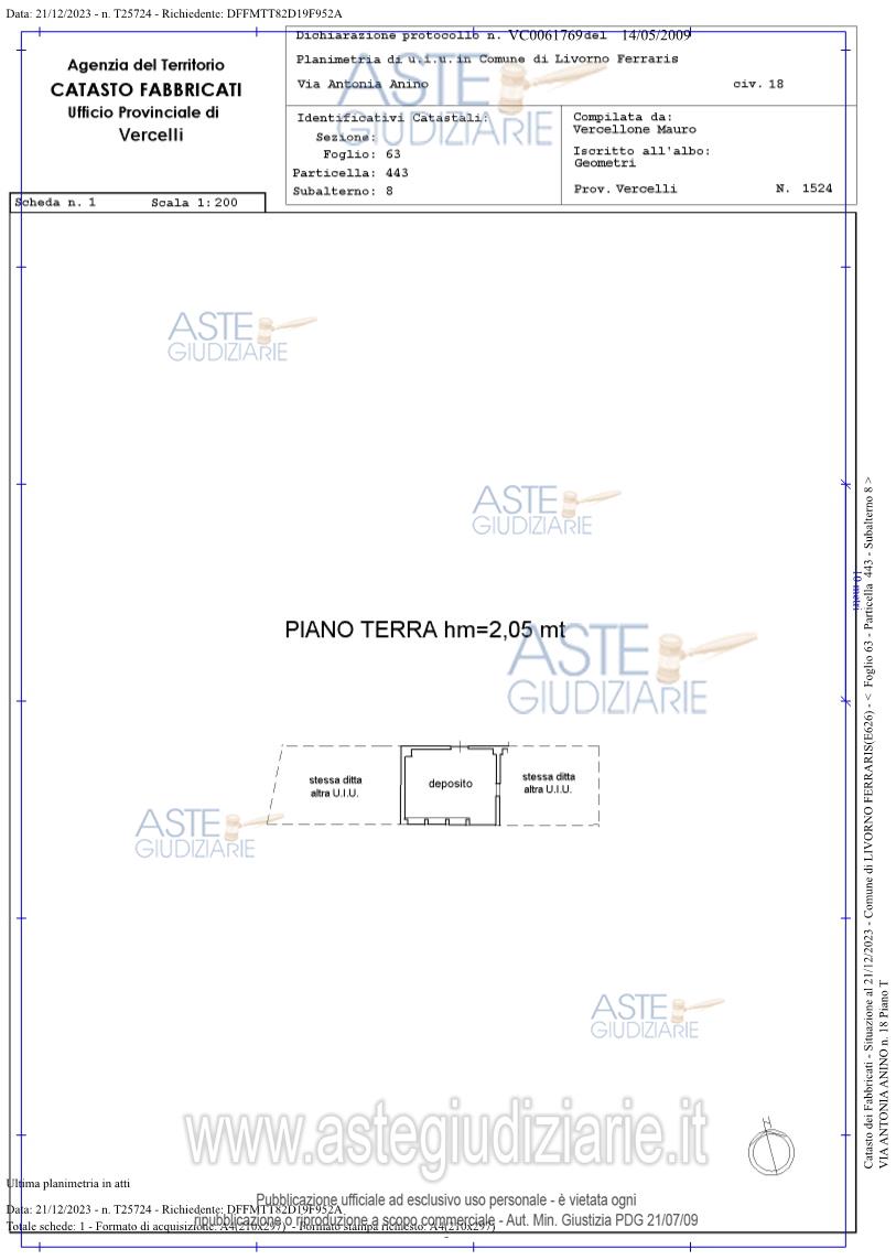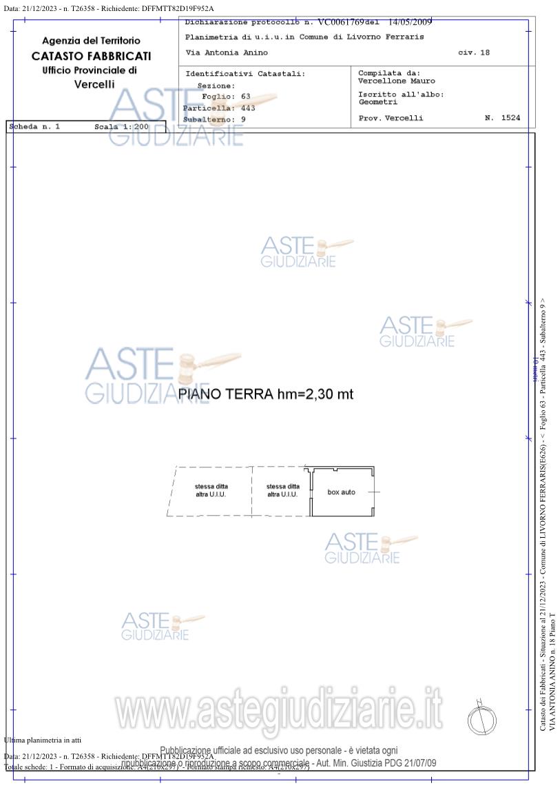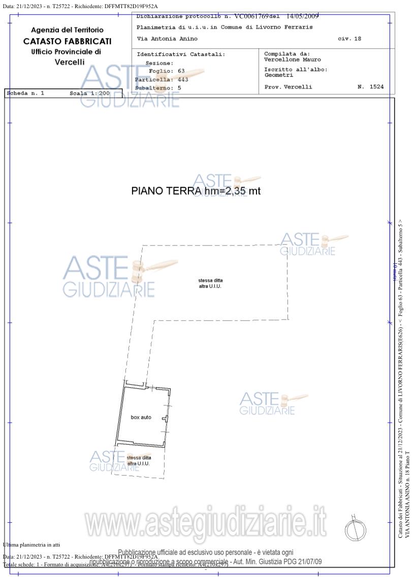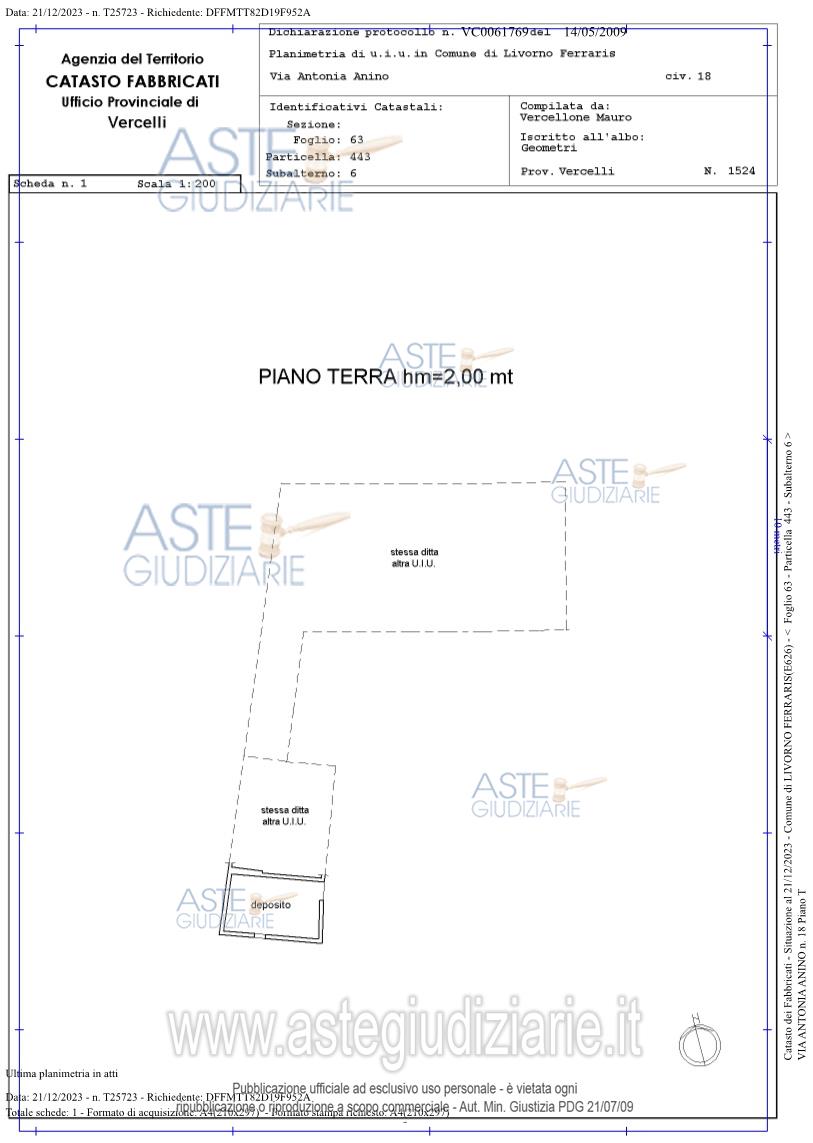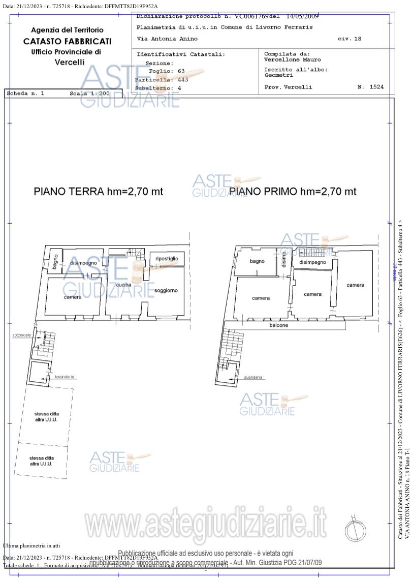 Vendita all'asta Senza incanto, con gara telematica asincrona - LOTTO UNICO: Fabbricato di civile abitazione di tipo indipendente con annessa corte, edificato a due piani fuori terra. Il piano terreno è composto da cucina,soggiorno,camera,bagno e disimpegno; al primo piano due camere,ripostiglio, bagno e disimpegno oltre a balconata prospiciente la corte.Autorimessa doppia, autorimessa singola e tre locali deposito posti nel cortile pertinenziale del fabbricato residenziale.Cortile comune. Prezzo base € 40.964,00 (offerta minima € 30.723,00). Data inizio operazioni di vendita: 29/04/2026 ore 09:30. Professionista delegato alla vendita Avv. Oscar Altavilla - Email "st.legalealtavilla@libero.it"; Tel. 0142781212. Custode Giudiziario Avv. Oscar Altavilla - Email "st.legalealtavilla@libero.it"; Tel. 0142781212. Rif. Tribunale di Vercelli - Esecuzione immobiliare post legge 80 n. 152/2023