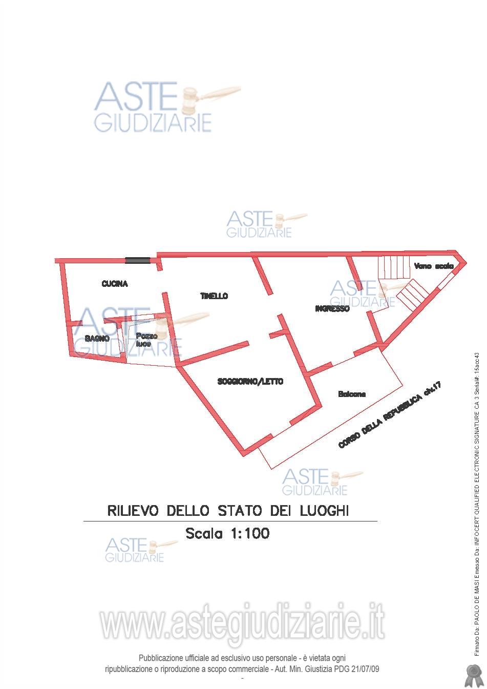 Vendita all'asta Senza incanto, con gara telematica asincrona - LOTTO UNICO: Piena proprietà per la quota di 1000/1000 di Civile abitazione in Corso della Repubblica civ.17, Piano Primo + Lastrico solare. Prezzo base € 25.650,00 (offerta minima € 19.237,50). Data inizio operazioni di vendita: 27/01/2026 ore 15:30. Giudice Annafrancesca Capone. Professionista delegato alla vendita Avv. Antonio Chirico - Email "avv.antoniochirico@yahoo.it"; Cell. 3492363805. Custode Giudiziario Avv. Antonio Chirico - Email "avv.antoniochirico@yahoo.it"; Cell. 3492363805. Rif. Tribunale di Lecce - Esecuzione immobiliare post legge 80 n. 1020/2013
