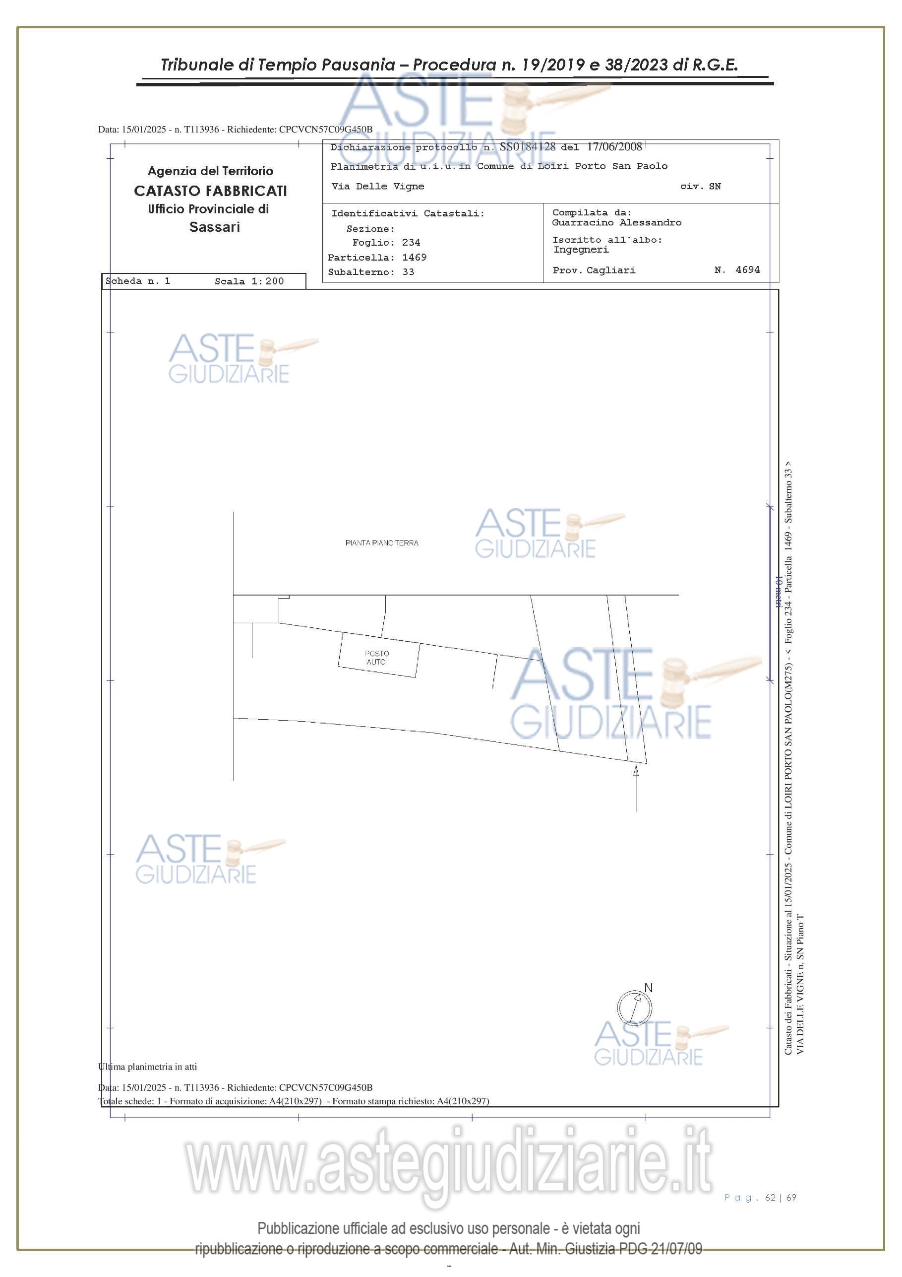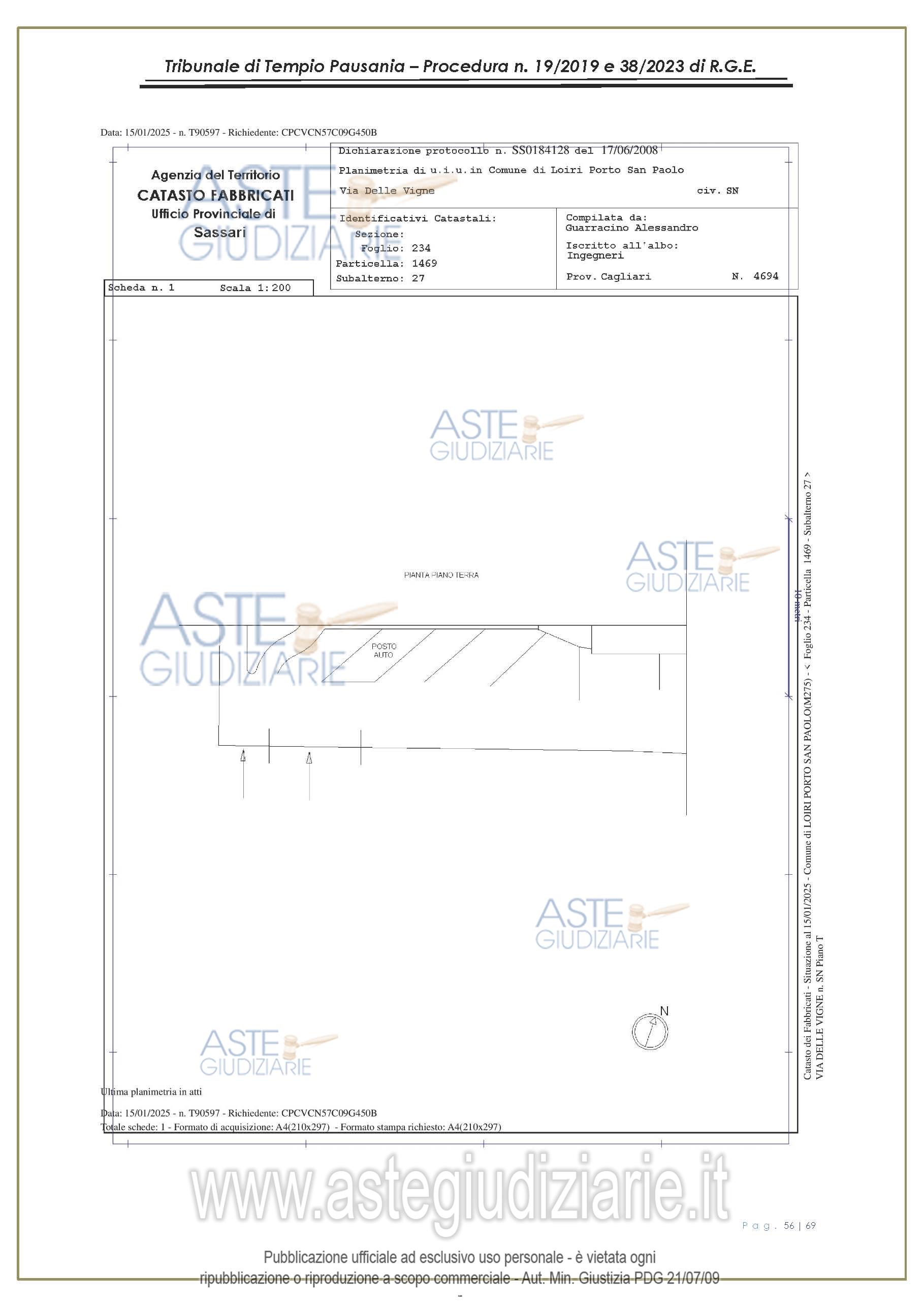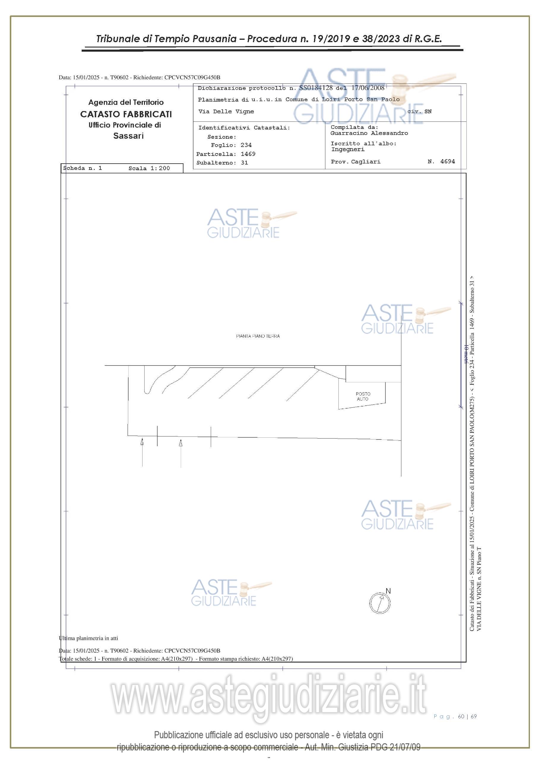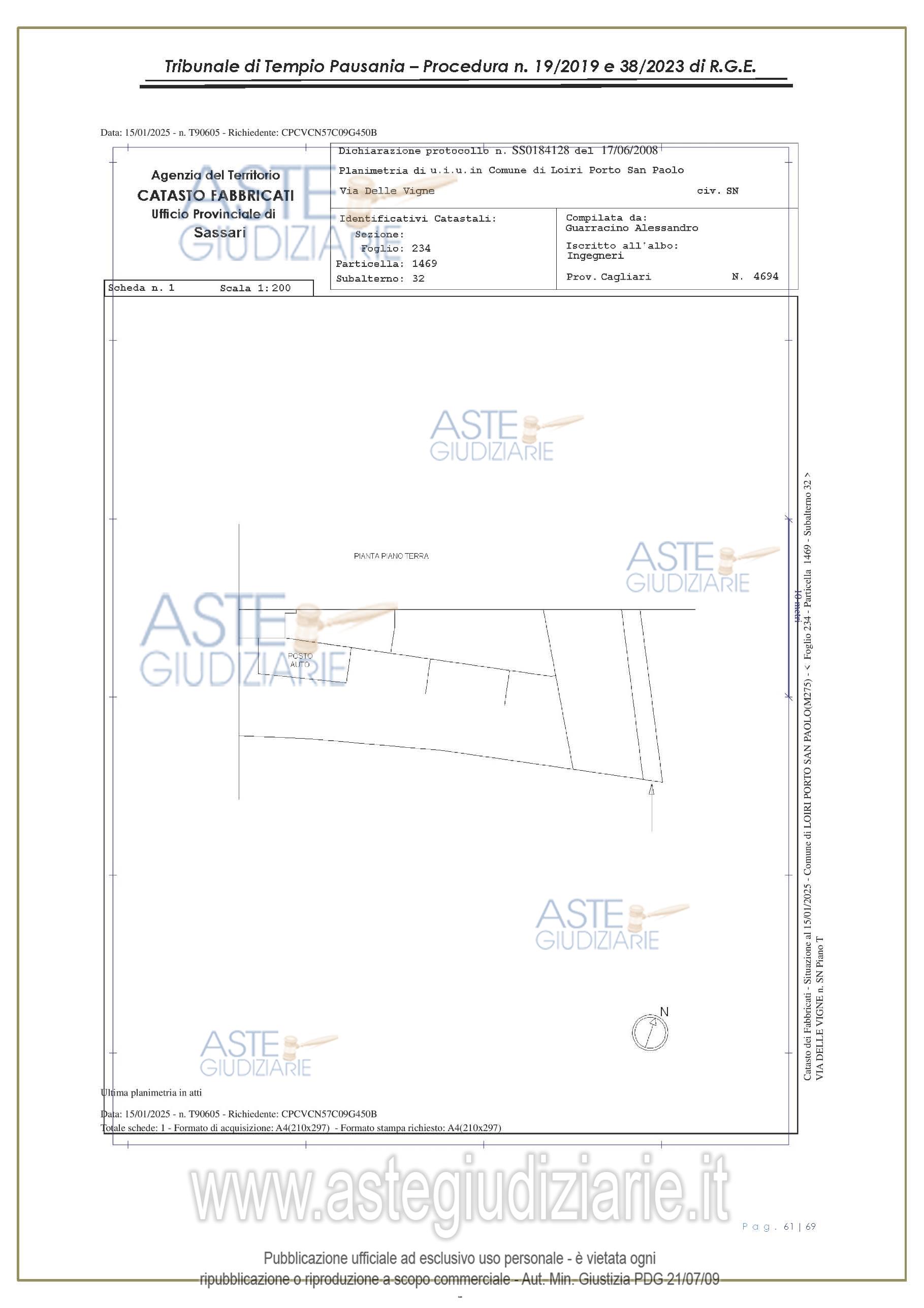 Vendita all'asta Senza incanto, con gara telematica asincrona - LOTTO UNICO: appartamento, in Via delle Vigne snc, Comune di Loiri Porto San Paolo (SS), nel complesso denominato “Residenza LaPiscina, piano primo, composto da ingressopranzo-cucina confinante con disimpegno, due camere da letto ed al bagno;al N.C.E.U. al foglio 234, mappale 1469, sub 35, Cat. A/2, superficie catastale mq 64, escluse aree scopertemq. 59 e altezza di mt 2.70, nonché posto auto coperto composto da un singolo locale. Prezzo base € 150.048,00 (offerta minima € 120.038,00). Data inizio operazioni di vendita: 27/01/2026 ore 16:00. Giudice Antonia Palombella. Professionista delegato alla vendita Avv. Sebastiano Pes - Email "sebapes@tiscali.it"; Cell. 3473827358; Tel. 0789204003. Custode Giudiziario Ivg Tempio Pausania - Email "visite.ivgtempio@gmail.com"; Tel. 079630505. Rif. Tribunale di Tempio Pausania - Esecuzione immobiliare post legge 80 n. 19/2019