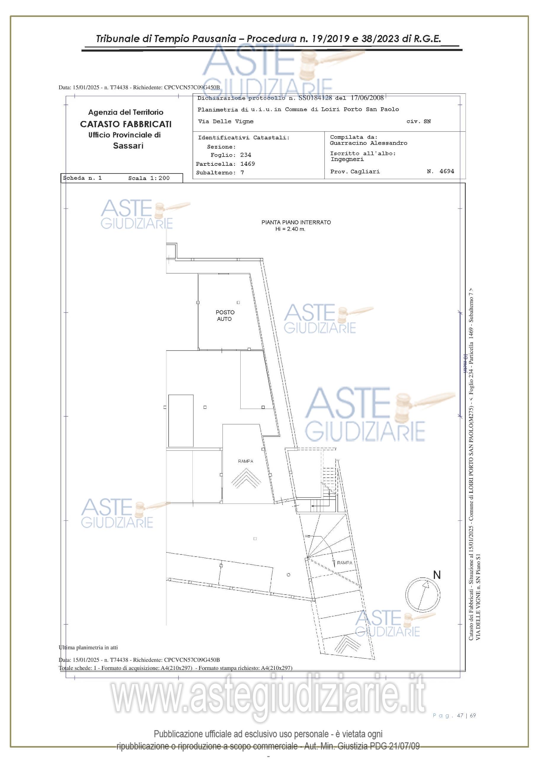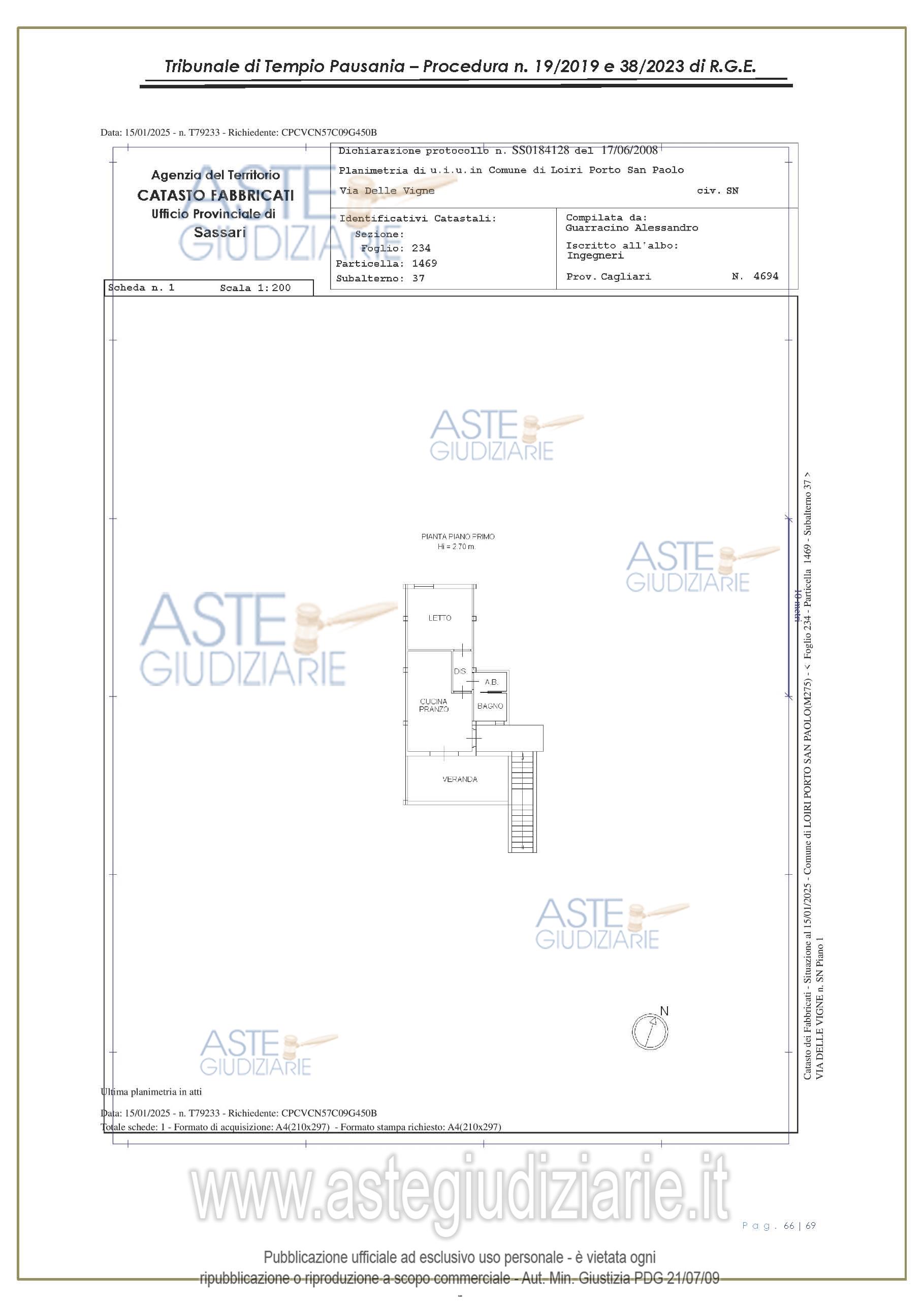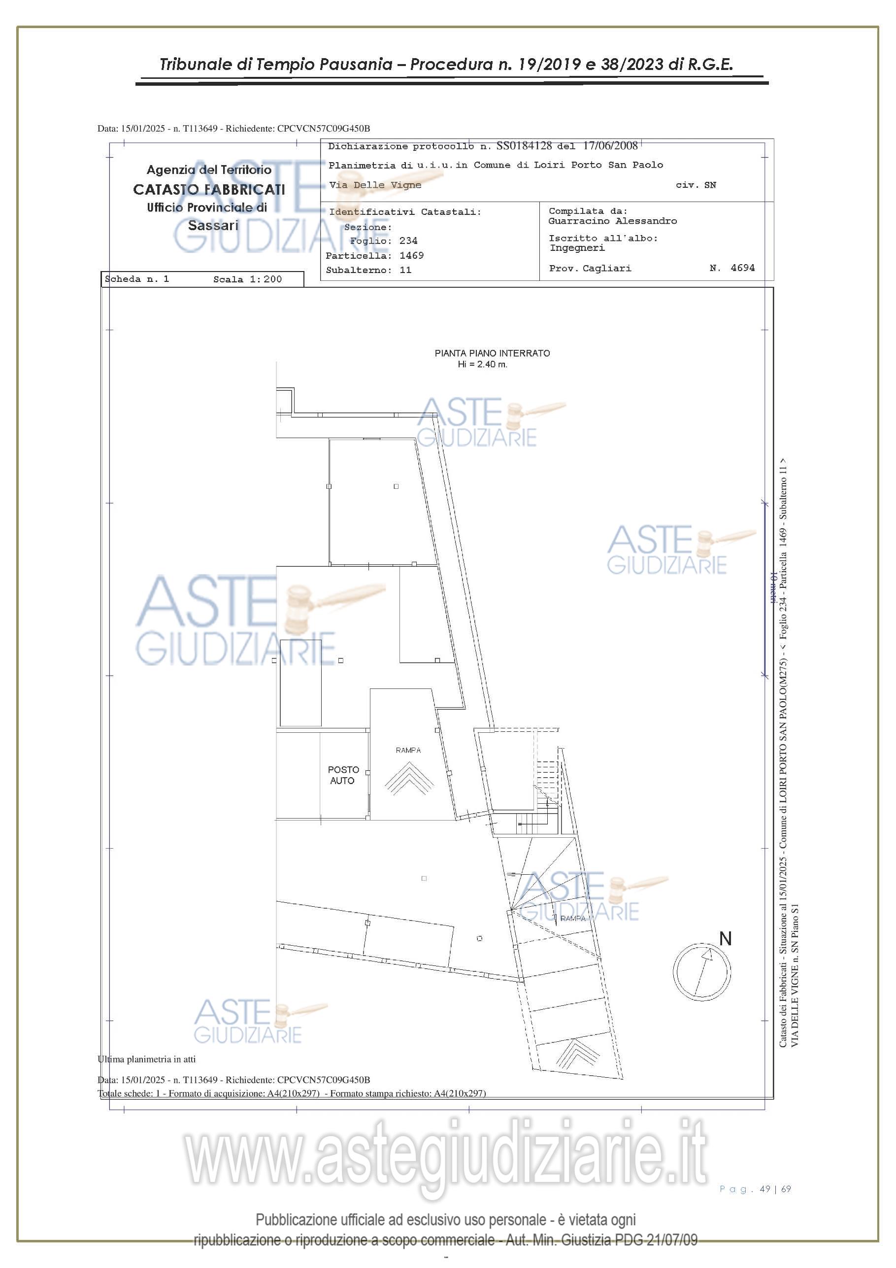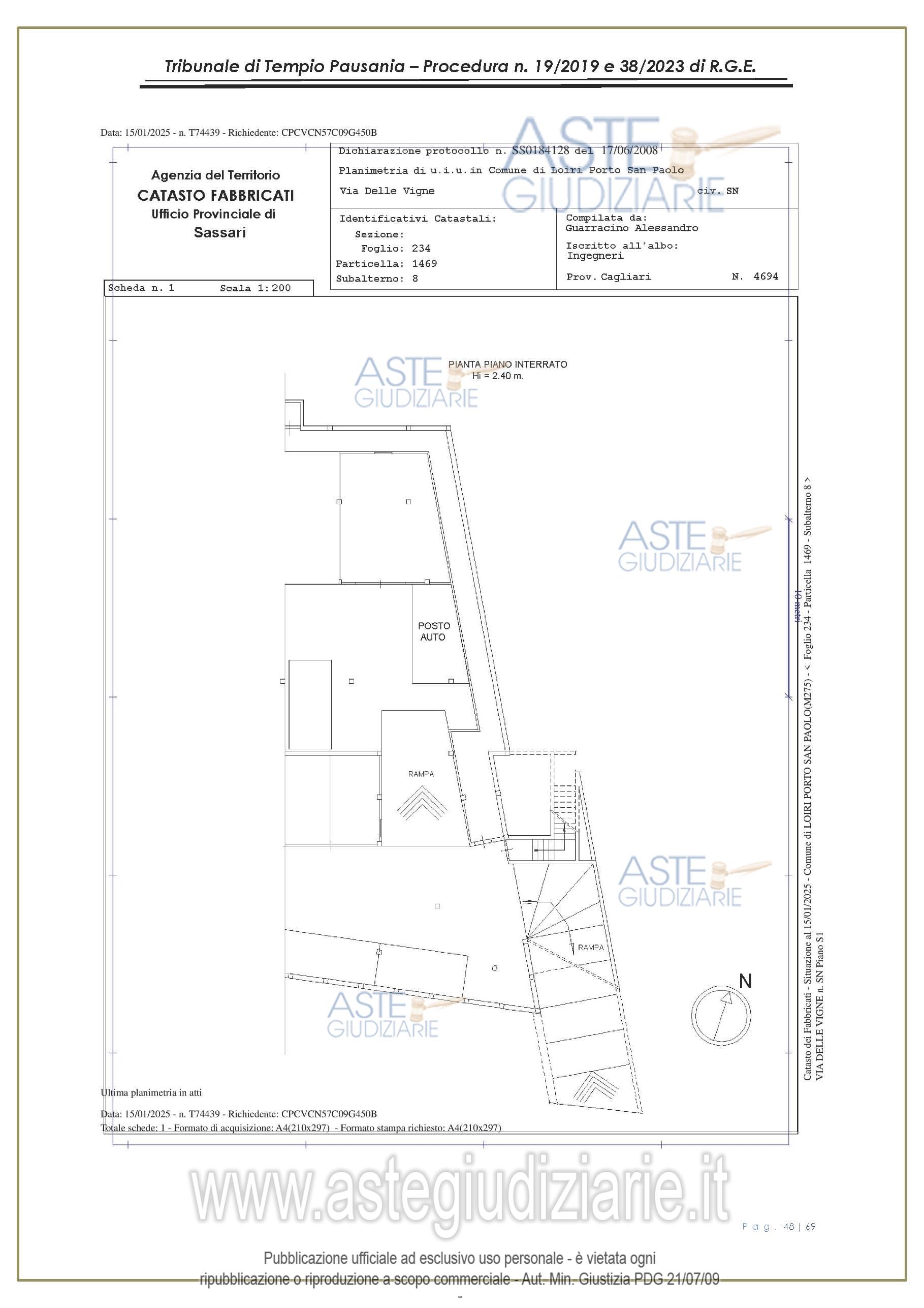 Vendita all'asta Senza incanto, con gara telematica asincrona - LOTTO UNICO: appartamento, in Via delle Vigne snc, Comune di Loiri Porto San Paolo (SS), nel complesso denominato “Residenza LaPiscina, piano primo, composto da ingressopranzo-cucina confinante con disimpegno, due camere da letto ed al bagno;al N.C.E.U. al foglio 234, mappale 1469, sub 35, Cat. A/2, superficie catastale mq 64, escluse aree scopertemq. 59 e altezza di mt 2.70, nonché posto auto coperto composto da un singolo locale. Prezzo base € 150.048,00 (offerta minima € 120.038,00). Data inizio operazioni di vendita: 27/01/2026 ore 16:00. Giudice Antonia Palombella. Professionista delegato alla vendita Avv. Sebastiano Pes - Email "sebapes@tiscali.it"; Cell. 3473827358; Tel. 0789204003. Custode Giudiziario Ivg Tempio Pausania - Email "visite.ivgtempio@gmail.com"; Tel. 079630505. Rif. Tribunale di Tempio Pausania - Esecuzione immobiliare post legge 80 n. 19/2019