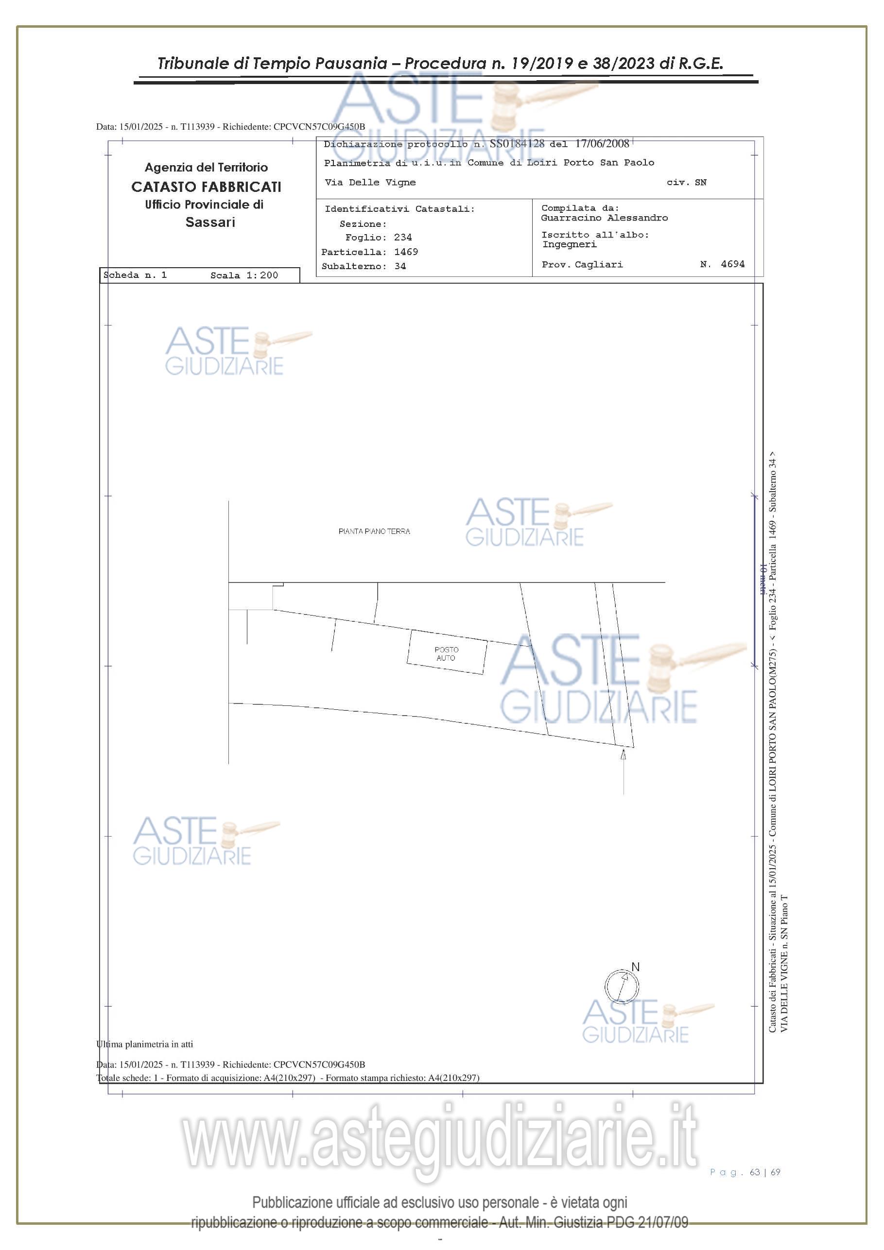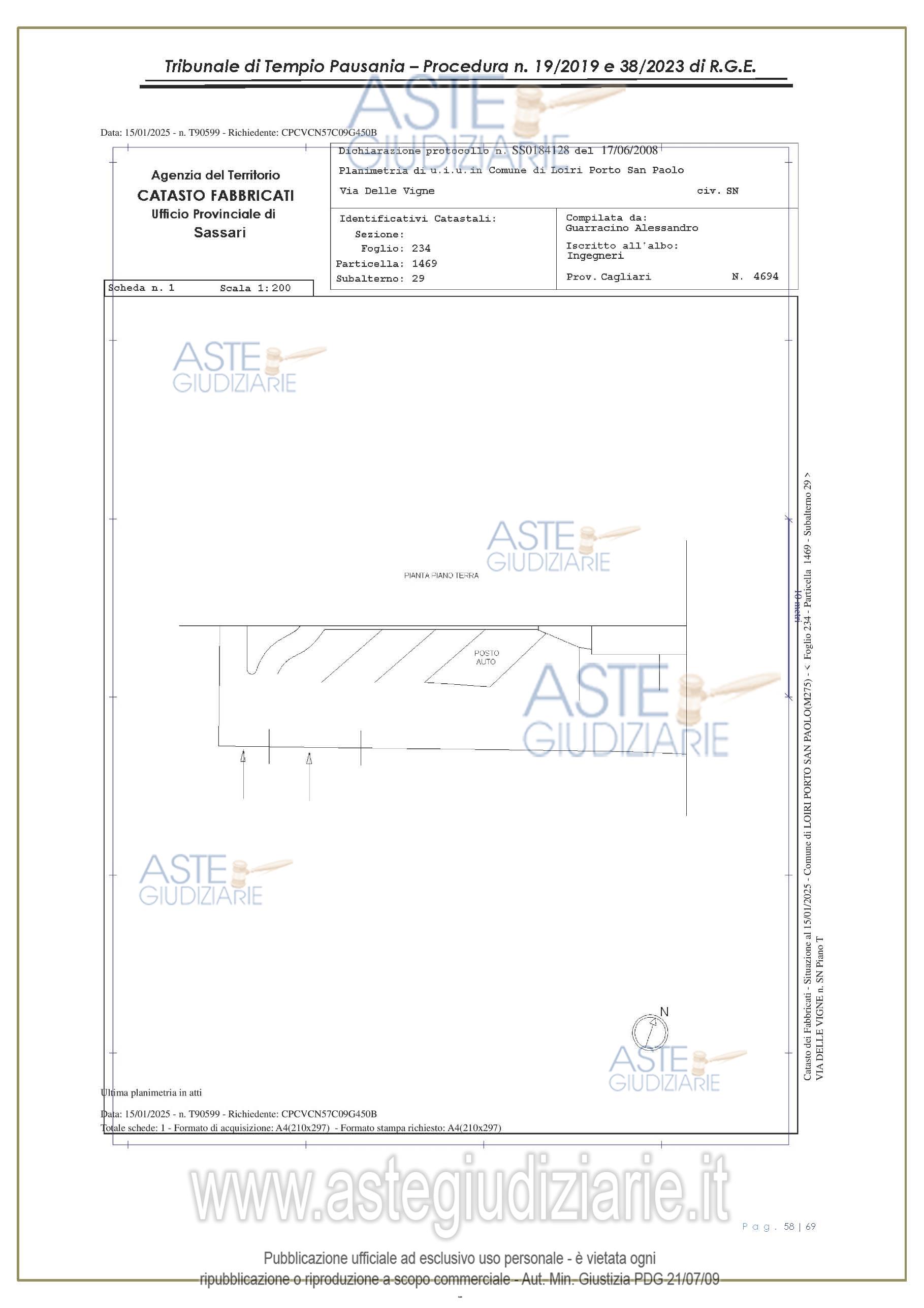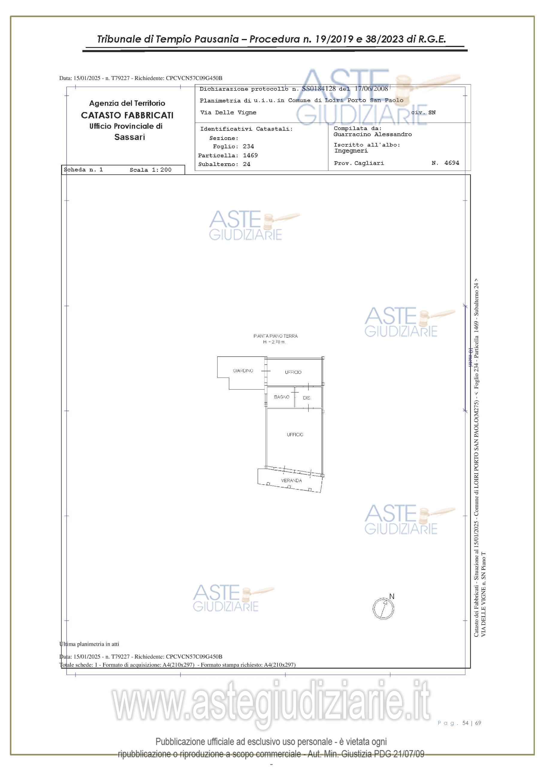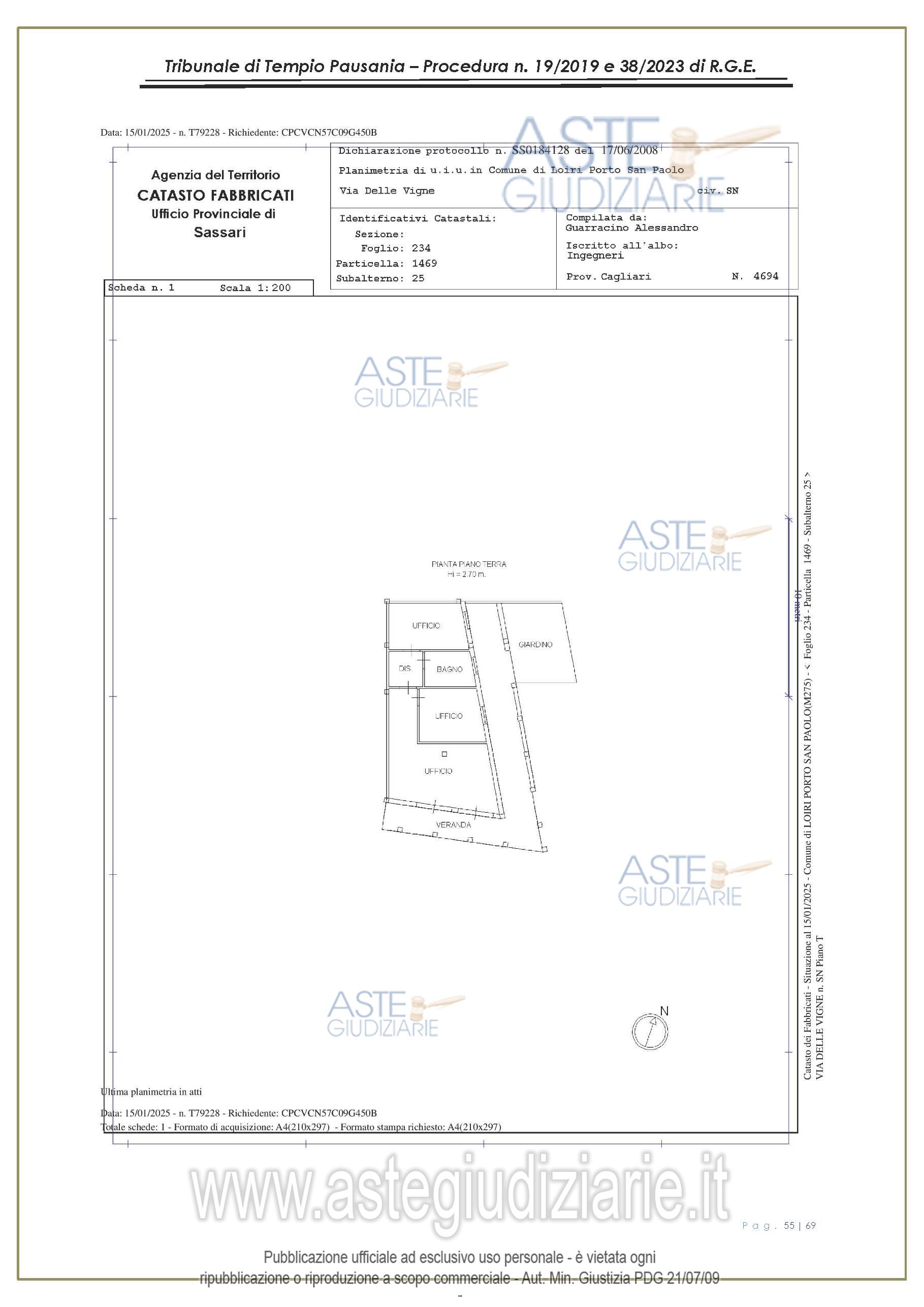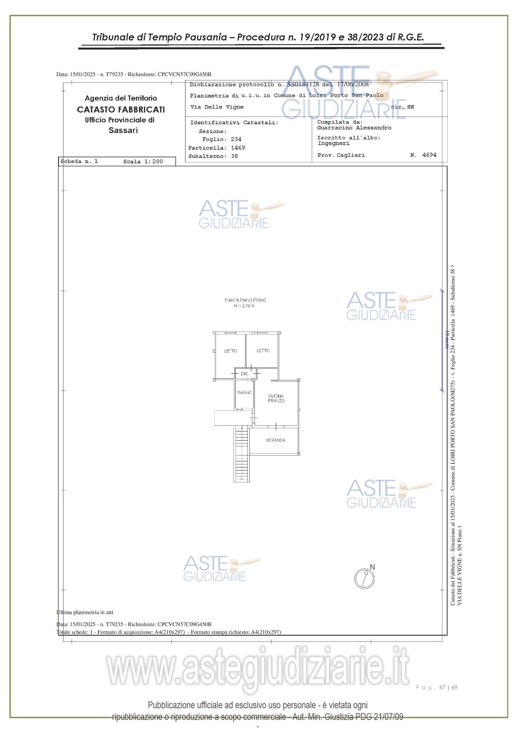 Vendita all'asta Senza incanto, con gara telematica asincrona - LOTTO UNICO: appartamento, in Via delle Vigne snc, Comune di Loiri Porto San Paolo (SS), nel complesso denominato “Residenza LaPiscina, piano primo, composto da ingressopranzo-cucina confinante con disimpegno, due camere da letto ed al bagno;al N.C.E.U. al foglio 234, mappale 1469, sub 35, Cat. A/2, superficie catastale mq 64, escluse aree scopertemq. 59 e altezza di mt 2.70, nonché posto auto coperto composto da un singolo locale. Prezzo base € 150.048,00 (offerta minima € 120.038,00). Data inizio operazioni di vendita: 27/01/2026 ore 16:00. Giudice Antonia Palombella. Professionista delegato alla vendita Avv. Sebastiano Pes - Email "sebapes@tiscali.it"; Cell. 3473827358; Tel. 0789204003. Custode Giudiziario Ivg Tempio Pausania - Email "visite.ivgtempio@gmail.com"; Tel. 079630505. Rif. Tribunale di Tempio Pausania - Esecuzione immobiliare post legge 80 n. 19/2019
