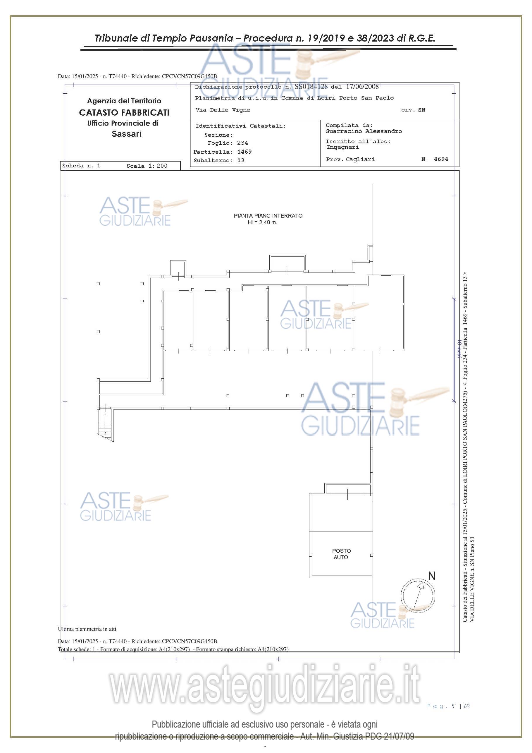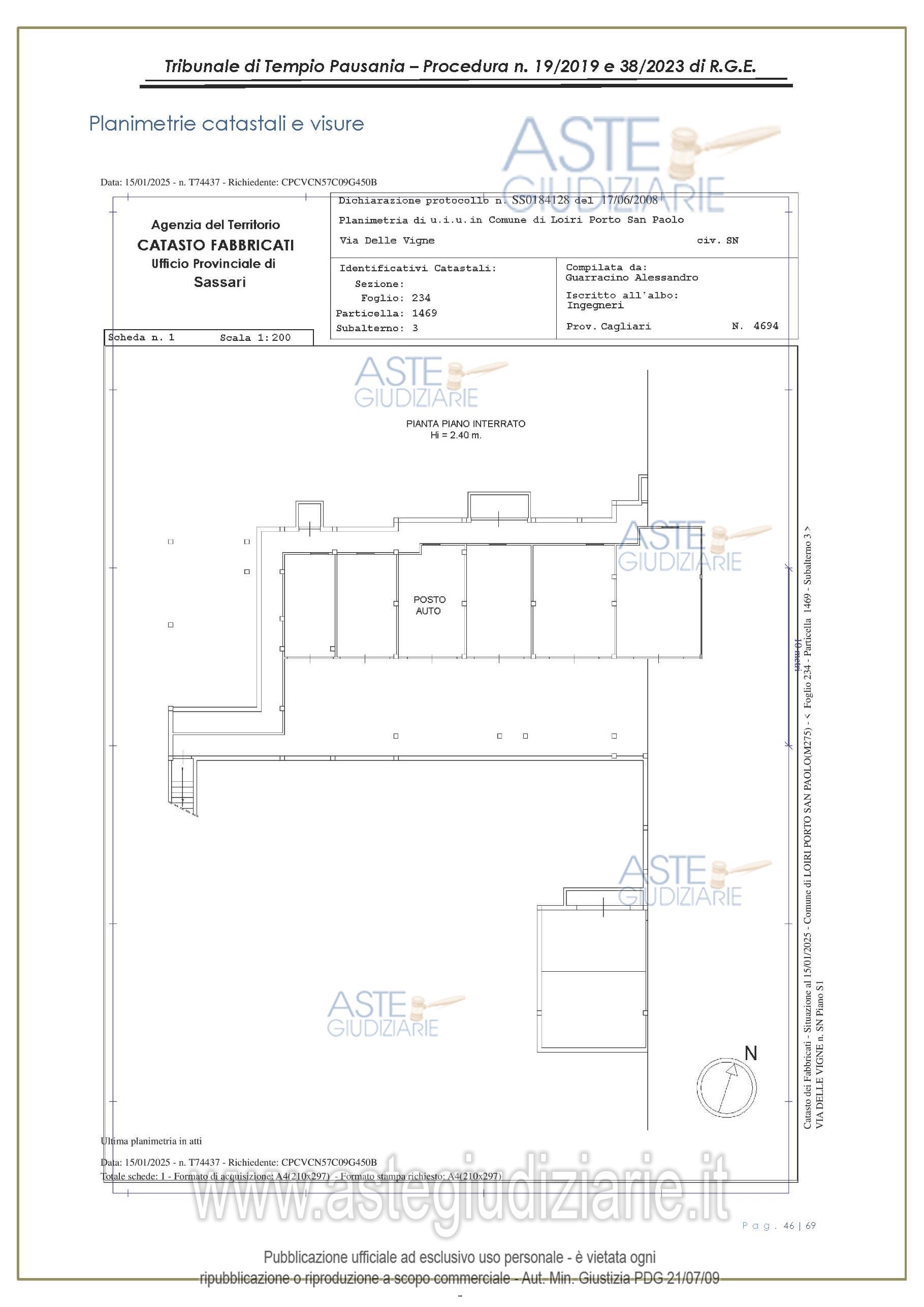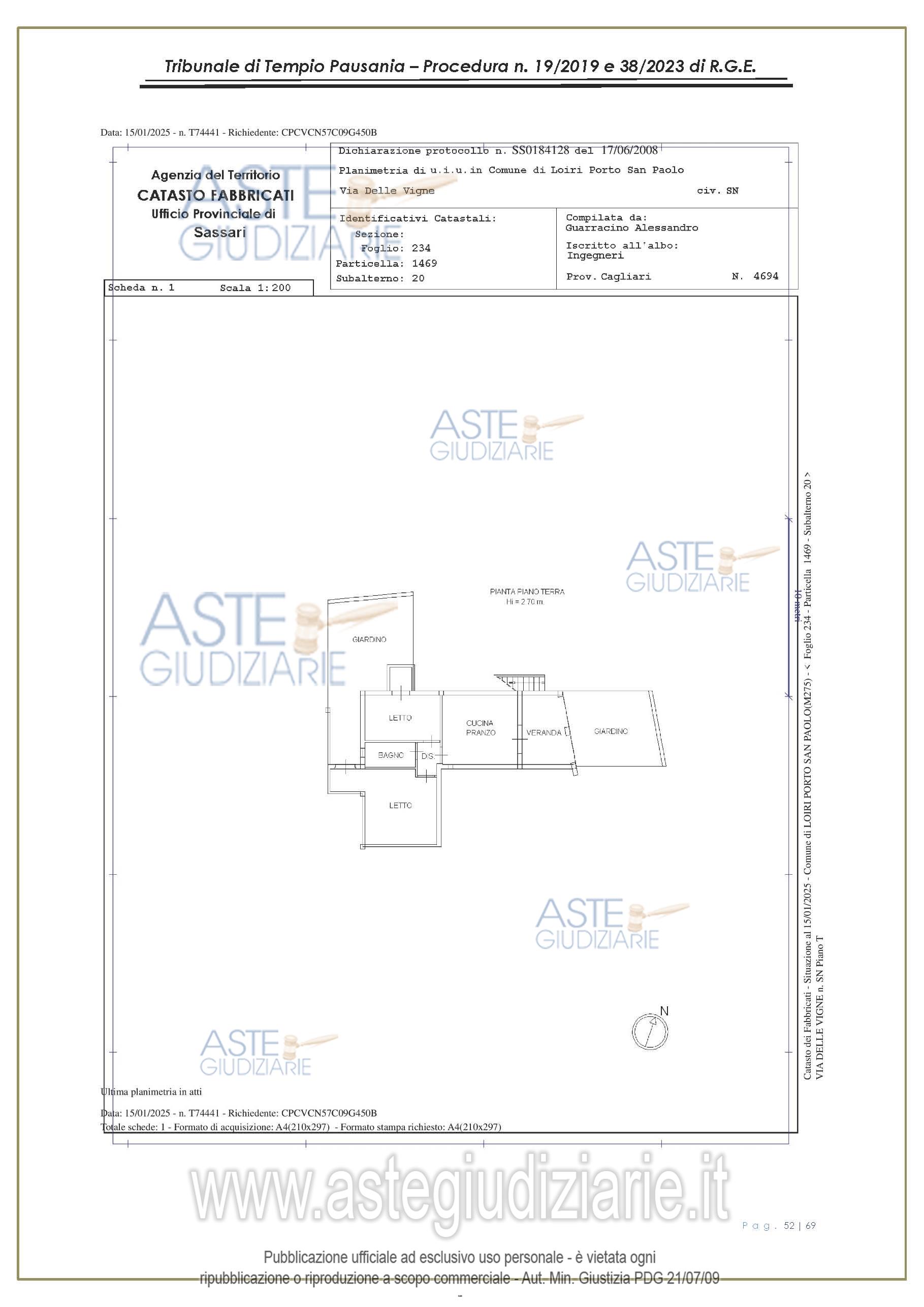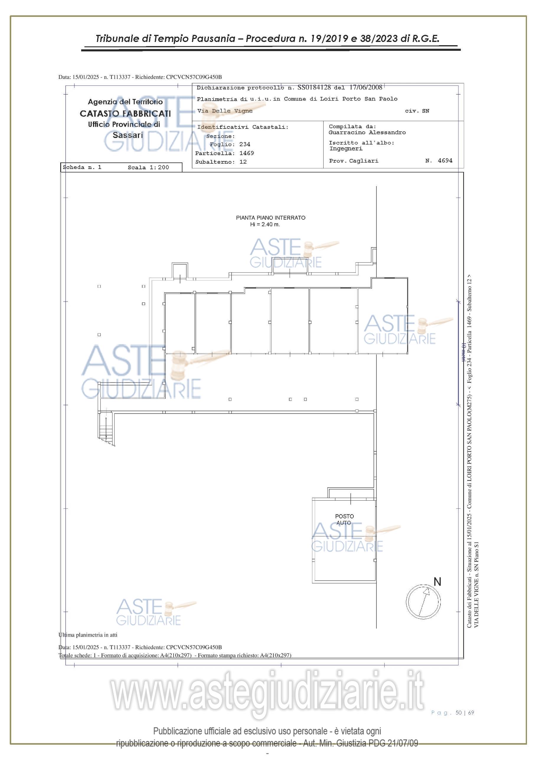 Vendita all'asta Senza incanto, con gara telematica asincrona - LOTTO UNICO: appartamento, in Via delle Vigne snc, Comune di Loiri Porto San Paolo (SS), nel complesso denominato “Residenza LaPiscina, piano primo, composto da ingressopranzo-cucina confinante con disimpegno, due camere da letto ed al bagno;al N.C.E.U. al foglio 234, mappale 1469, sub 35, Cat. A/2, superficie catastale mq 64, escluse aree scopertemq. 59 e altezza di mt 2.70, nonché posto auto coperto composto da un singolo locale. Prezzo base € 150.048,00 (offerta minima € 120.038,00). Data inizio operazioni di vendita: 27/01/2026 ore 16:00. Giudice Antonia Palombella. Professionista delegato alla vendita Avv. Sebastiano Pes - Email "sebapes@tiscali.it"; Cell. 3473827358; Tel. 0789204003. Custode Giudiziario Ivg Tempio Pausania - Email "visite.ivgtempio@gmail.com"; Tel. 079630505. Rif. Tribunale di Tempio Pausania - Esecuzione immobiliare post legge 80 n. 19/2019