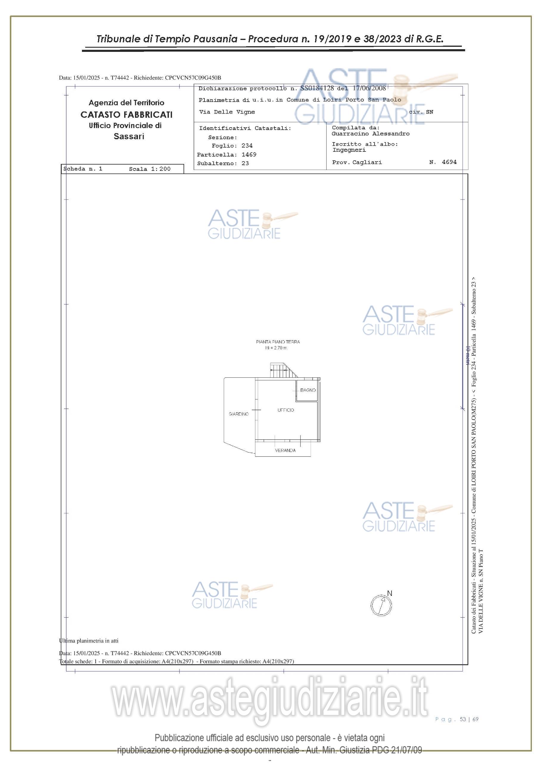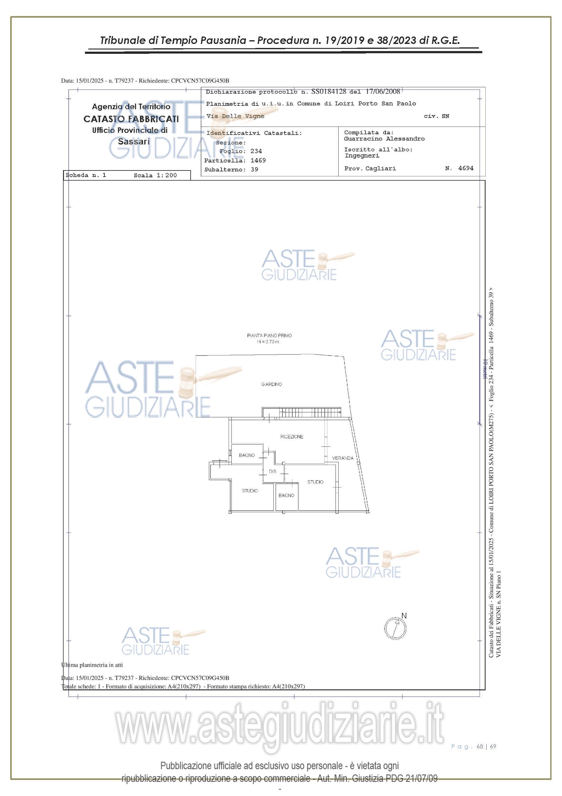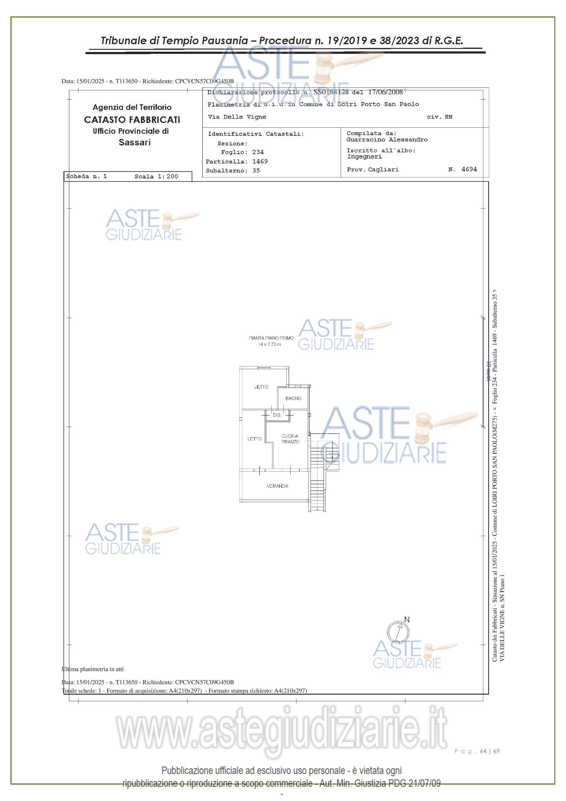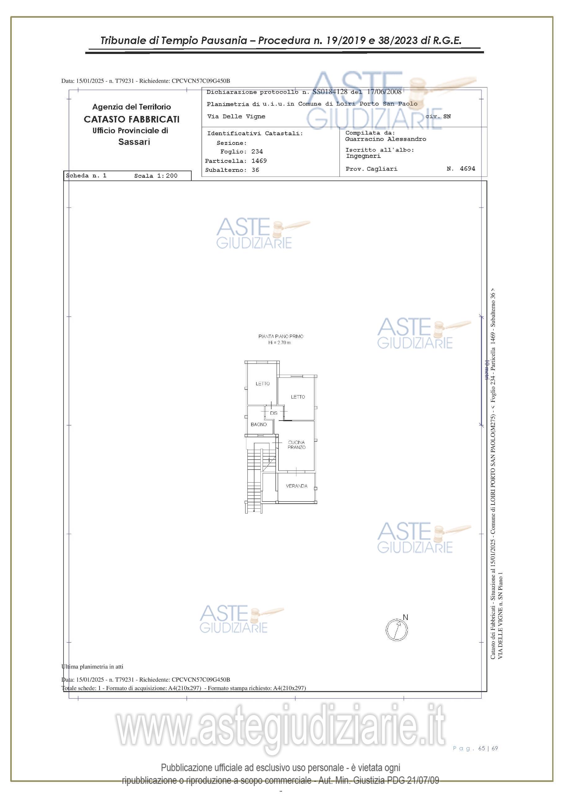 Vendita all'asta Senza incanto, con gara telematica asincrona - LOTTO UNICO: appartamento, in Via delle Vigne snc, Comune di Loiri Porto San Paolo (SS), nel complesso denominato “Residenza LaPiscina, piano primo, composto da ingressopranzo-cucina confinante con disimpegno, due camere da letto ed al bagno;al N.C.E.U. al foglio 234, mappale 1469, sub 35, Cat. A/2, superficie catastale mq 64, escluse aree scopertemq. 59 e altezza di mt 2.70, nonché posto auto coperto composto da un singolo locale. Prezzo base € 150.048,00 (offerta minima € 120.038,00). Data inizio operazioni di vendita: 27/01/2026 ore 16:00. Giudice Antonia Palombella. Professionista delegato alla vendita Avv. Sebastiano Pes - Email "sebapes@tiscali.it"; Cell. 3473827358; Tel. 0789204003. Custode Giudiziario Ivg Tempio Pausania - Email "visite.ivgtempio@gmail.com"; Tel. 079630505. Rif. Tribunale di Tempio Pausania - Esecuzione immobiliare post legge 80 n. 19/2019