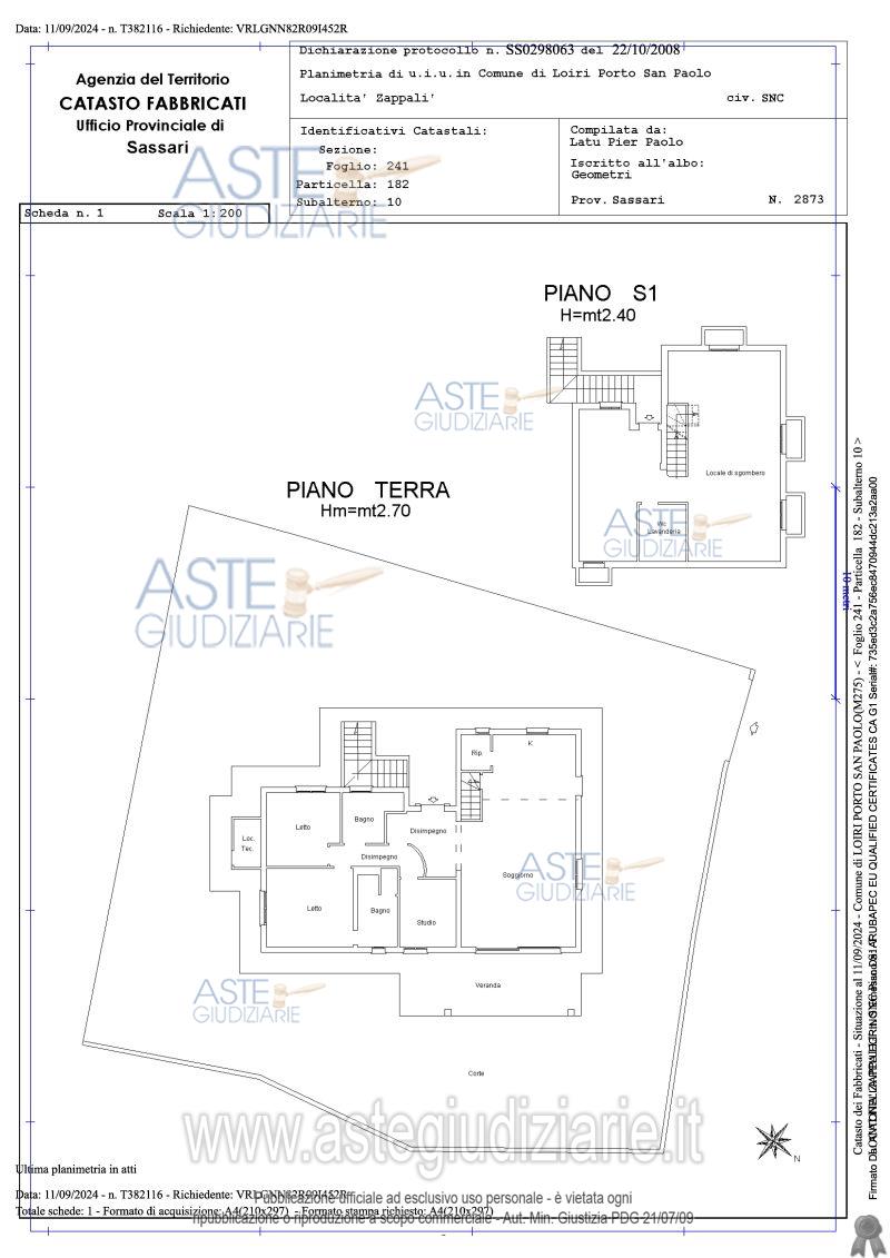 Vendita all'asta Senza incanto, con gara telematica asincrona - LOTTO UNICO: Immobile Residenziale (Abitazione) COMPOSTA DA: PIANO TERRA n. 1 Soggiorno Pranzo Cucina, n. 2 Camere da Letto, n. 1 Studio, n. 2 Bagno, n. 1 Disimpegno, n. 1 Ripostiglio n. 1 Locale Tecnico, n. 1 Veranda, n. 1 Cortile; PIANO INTERRATO composto da - n. 3 Locali di Sgombero , n. 1 Bagno -, n. 1 Ripostiglio – superficie commerciale complessiva 264,60 mq; E PIANO INTERRATO: Locale di sgombero composto da n. 1 locale di sgombero, n. 1 bagno, n. 1 cortile Superficie commerciale complessiva Mq 46,72. Prezzo base € 368.000,00 (offerta minima € 276.000,00). Data inizio operazioni di vendita: 19/02/2026 ore 16:00. Giudice Dott. Antonia Palombella. Professionista delegato alla vendita Avv. Gianfranco Grussu. Custode Giudiziario Fresi Lino - Email "ivg.tempio@tiscali.it". Rif. Tribunale di Tempio Pausania - Esecuzione immobiliare post legge 80 n. 30/2022