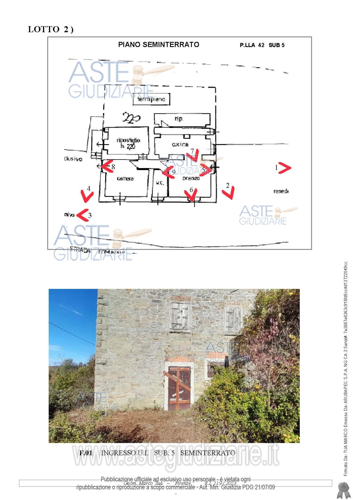 Vendita all'asta Senza incanto, con gara telematica sincrona - LOTTO 2: Piena proprietà di appartamento, situato al piano seminterrato, di mq 128 circa (sup.lorda), si presenta al grezzo con lavorazioni da completare. Mancano impianti elettrici, riscaldamento, scarichi, sanitari. L'accesso esclusivo da resede su Via Bucigna. L’appartamento è composto da vano cucina, sala pranzo, disimpegno, camera, bagno e ripostigli, un locale di sbratto e resede esclusivo invaso da vegetazione. Prezzo base € 38.280,00 (offerta minima € 28.710,00). Data vendita 18/06/2026 ore 16:00. Giudice Agata Stanga. Professionista delegato alla vendita Dott. Paolo Cianetti - Email "paolo@studiocianetti.it". Custode Giudiziario Istituto Vendite Giudiziarie Di Firenze - Email "prenota.fi@isveg.it"; Tel. 0552340830. Rif. Tribunale di Firenze - Espropriazione immobiliare (cartabia) n. 119/2023