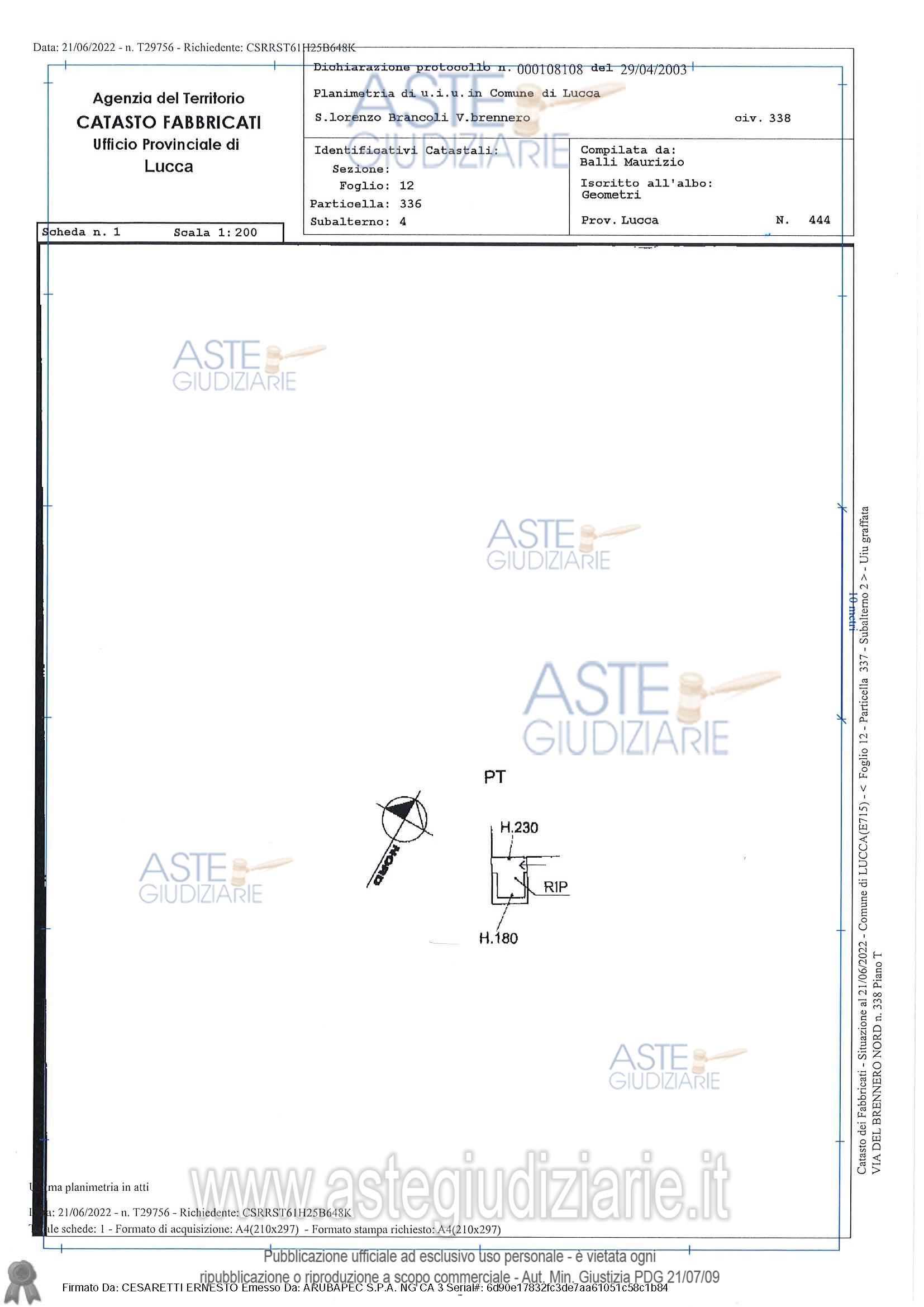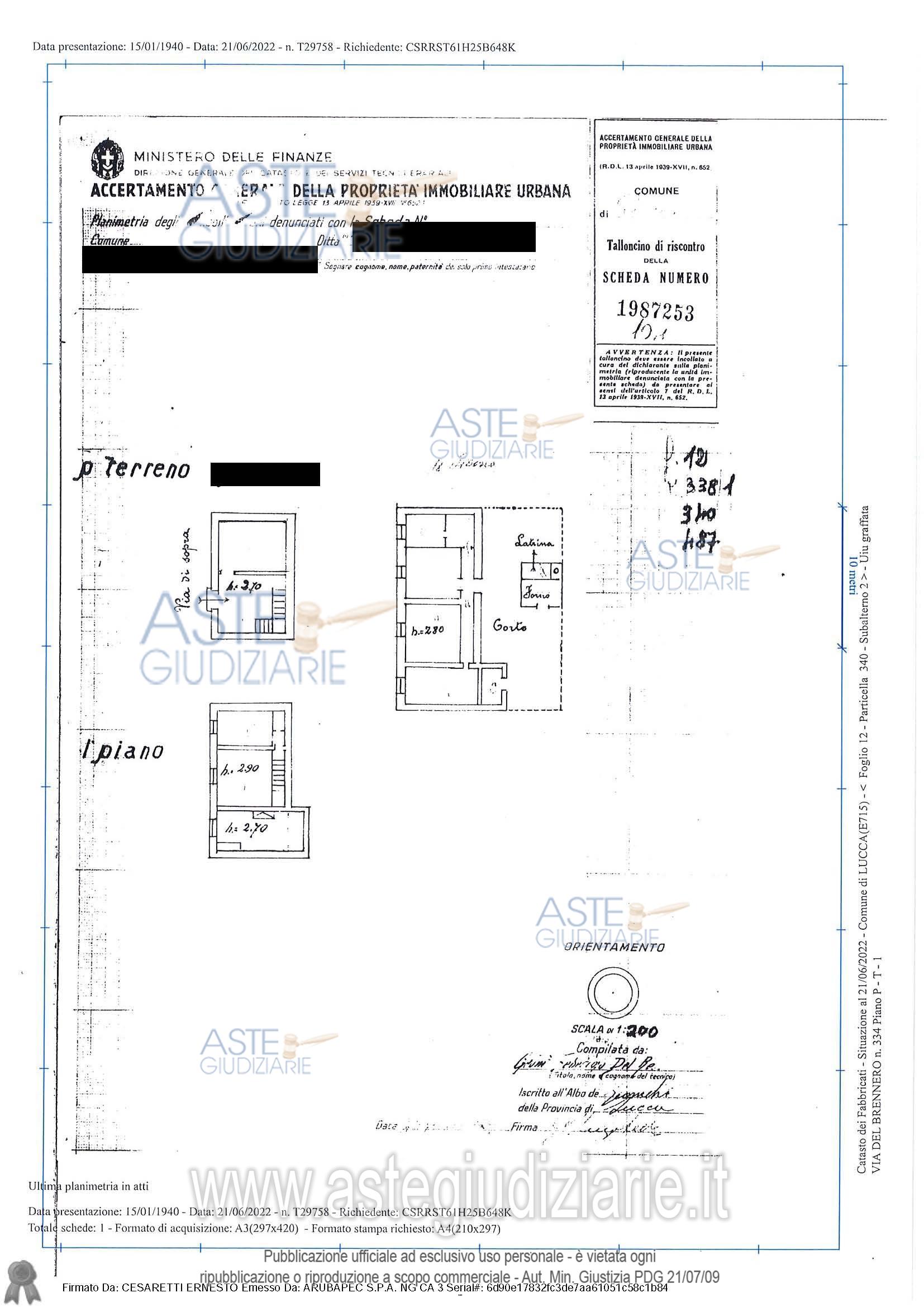 Vendita all'asta Senza incanto, con gara telematica sincrona mista - LOTTO UNICO: Villetta a schiera centrale della superficie commerciale di 181,14 mq, elevata a tre piani fuori terra compreso il piano terra ed il piano secondo sottotetto. Prezzo base € 46.797,00 (offerta minima € 35.100,00). Data vendita 12/11/2025 ore 11:00. Professionista delegato alla vendita Avv. Alessandro Selmi - Email "a.selmi@tuccieassociati.it"; Cell. 3479486297; Tel. 0583496190. Custode Giudiziario Ivg Lucca Sofir Srl - Email "custodieivg@gmail.com"; Tel. 0583418555. Rif. Tribunale di Lucca - Esecuzione immobiliare post legge 80 n. 189/2020