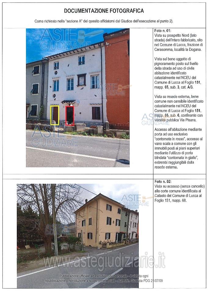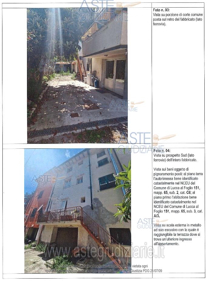 Vendita all'asta Senza incanto, con gara telematica sincrona mista - LOTTO UNICO: Piena proprietà su unità immobiliare uso civile abitazione, posta a piano primo di più ampio fabbricato. L'appartamento sviluppa una superficie lorda di circa 55 mq, oltre ad una terrazza posta sul lato Sud di circa 3,40 mq. L'appartamento è composto dai seguenti locali: ingresso, cucina-soggiorno, camera, bagno e terrazza. L'unità immobiliare è corredata dalla esclusiva proprietà su locale ad uso autorimessa posto a piano terreno accessibile dalla corte, di circa 55 mq. Prezzo base € 35.700,00 (offerta minima € 26.775,00). Data vendita 05/12/2025 ore 09:00. Giudice Giacomo Lucente. Professionista delegato alla vendita Avv. Gianmarco Serafini - Email "gianmarco.serafini95@gmail.com"; Cell. 3297968880. Custode Giudiziario Ivg Lucca Luvisotti - Email "custodieivg@gmail.com"; Tel. 0583418555. Rif. Tribunale di Lucca - Espropriazione immobiliare (cartabia) n. 42/2024