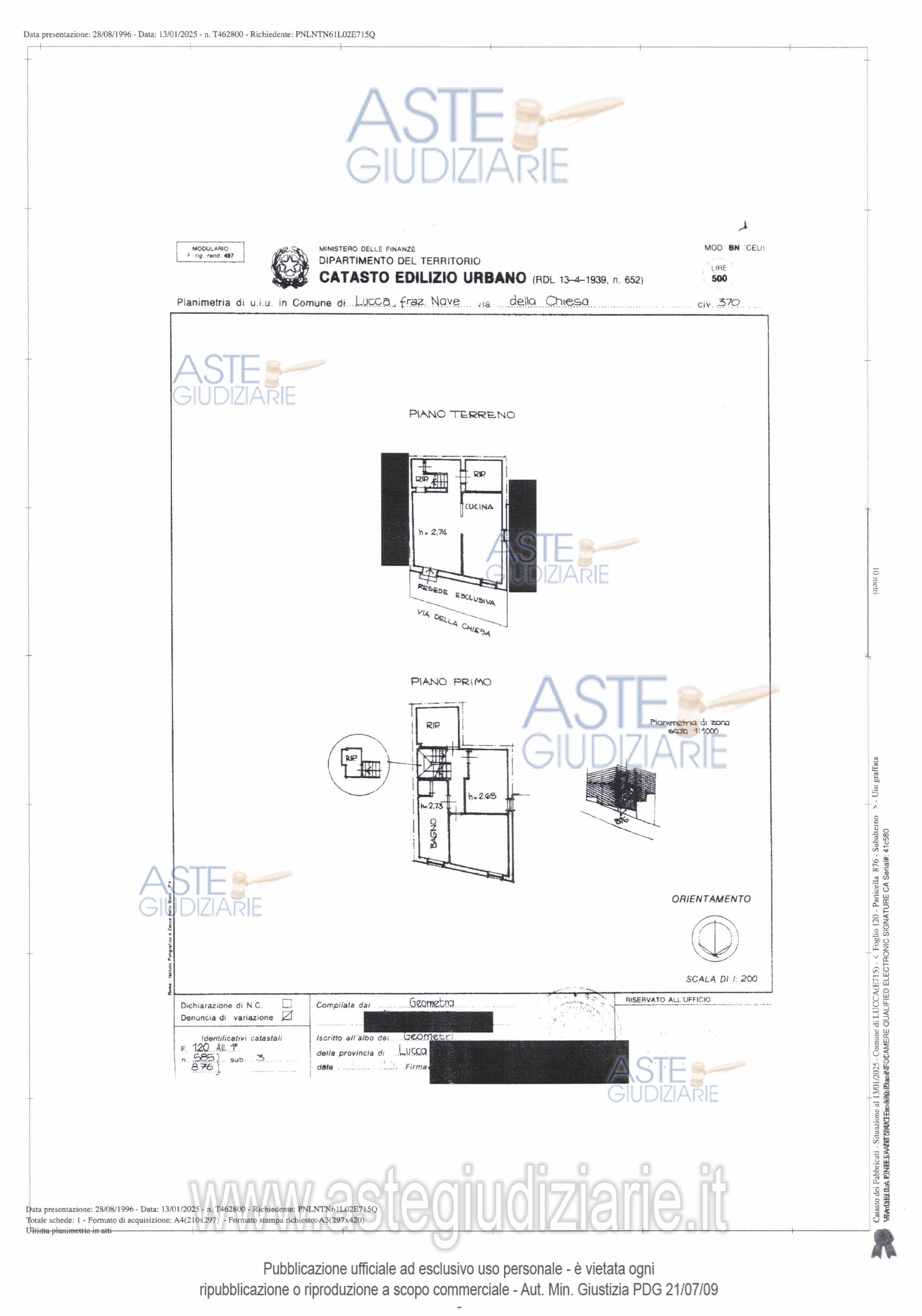 Vendita all'asta Senza incanto, con gara telematica sincrona mista - LOTTO UNICO: Bene N° 1 Appartamento ubicato a Lucca (LU) - Frazione di Nave, via della Chiesa XI n°370 Comune di Lucca. I diritti dell'intero della piena proprietà su un appartamento indipendente posto ai piani terreno e primo di un fabbricato di piani quattro, compreso il terrestre, posto a schiera con altri. Bene N° 2 Terreno ubicato a Lucca (LU) – Frazione Nave - via della Chiesa di Nave, Terreno ad uso orto. Viene posto in vendita per il diritto di Proprietà (1/1). Prezzo base € 100.912,50 (offerta minima € 75.684,38). Data vendita 17/02/2026 ore 11:00. Professionista delegato alla vendita Dott. Marco Buongiorno - Email "marco@studiobuongiorno.eu"; Cell. 3337718617. Custode Giudiziario Ivg Lucca Sofir Srl - Email "custodieivg@gmail.com"; Tel. 0583418555. Rif. Tribunale di Lucca - Espropriazione immobiliare (cartabia) n. 180/2024