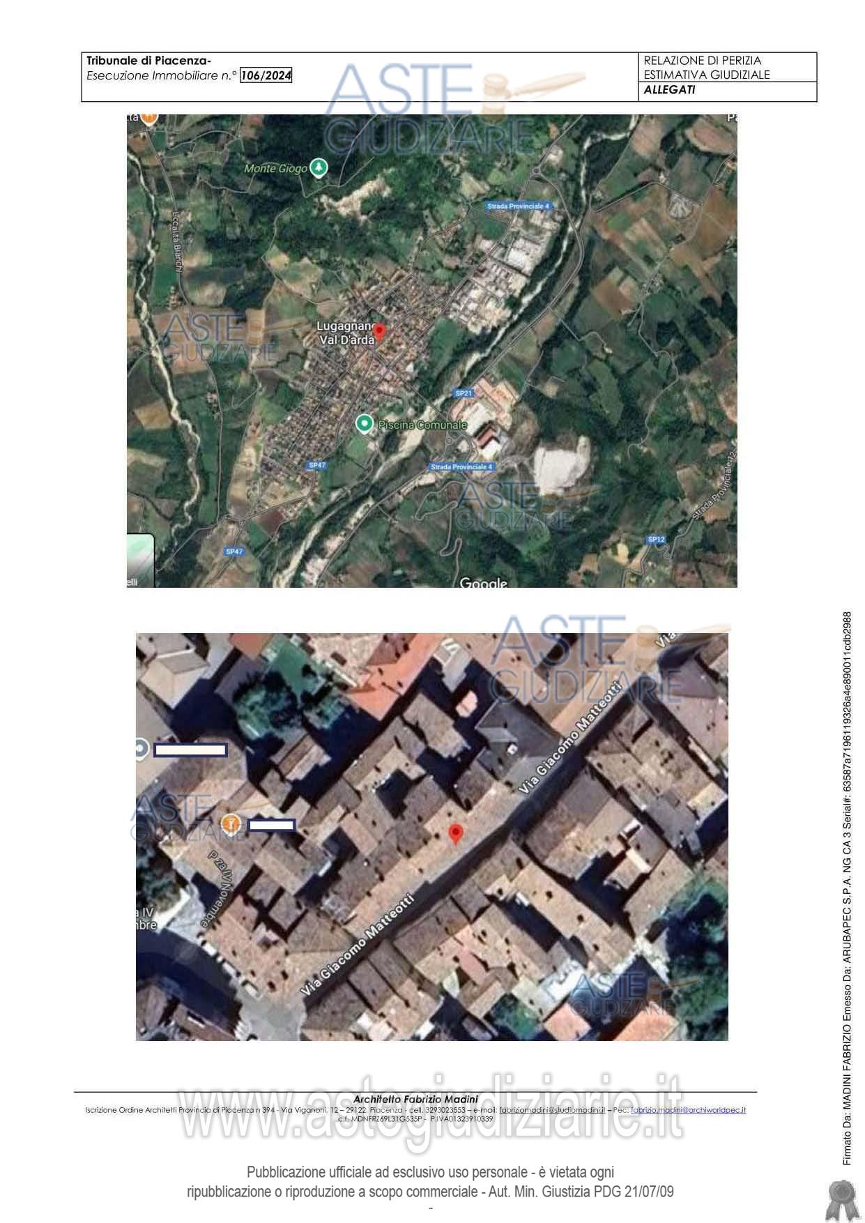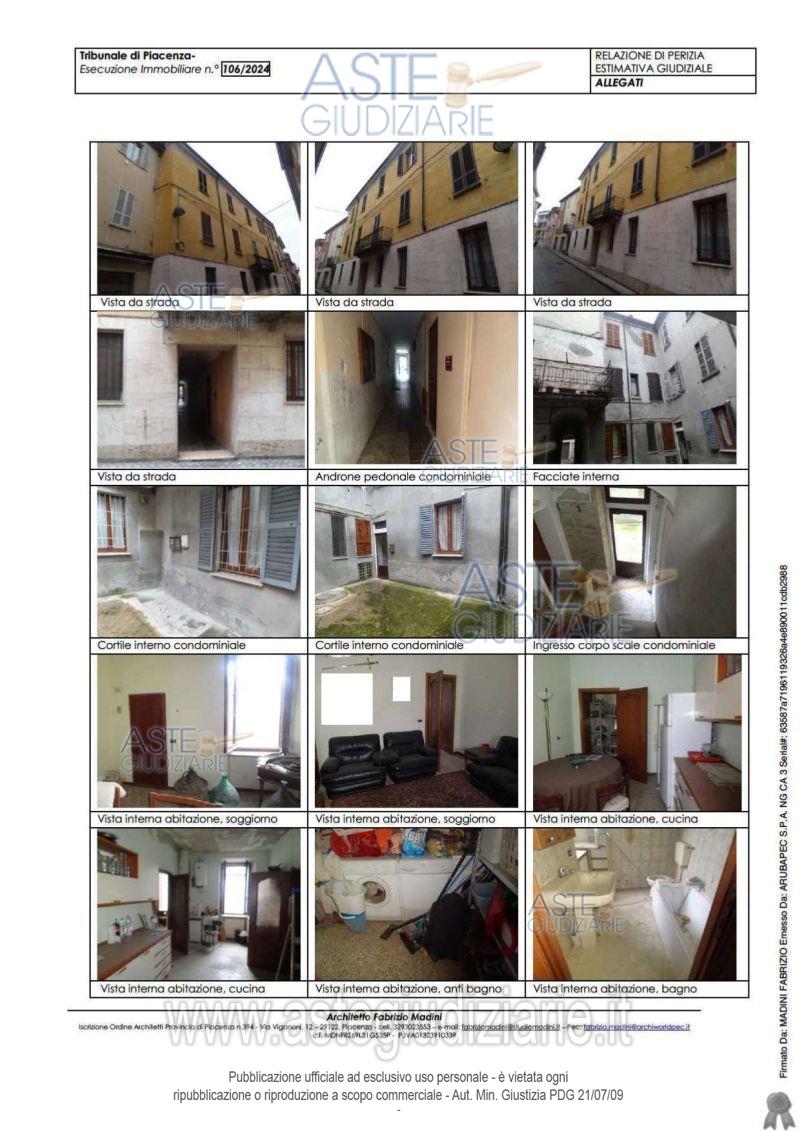 Vendita all'asta Senza incanto, con gara telematica asincrona - LOTTO UNICO: Appartamento di tipo economico di mq 126 catastali posto al secondo ed ultimo piano, composto da soggiorno, cucina, due camere, antibagno, bagno e cantina al primo piano interrato. Prezzo base € 37.800,00 (offerta minima € 28.350,00). Data inizio operazioni di vendita: 19/05/2026 ore 09:15. Giudice Marta Lombardi. Professionista delegato alla vendita Dott. Paolo Barbieri - Email "piacenza@custodigiudiziari.it". Custode Giudiziario Dott. Istituto Vendite Giudiziarie Di Parma E Piacenza - Email "immobiliparma@ivgparma.it"; Tel. 0521273762. Rif. Tribunale di Piacenza - Espropriazione immobiliare (cartabia) n. 106/2024