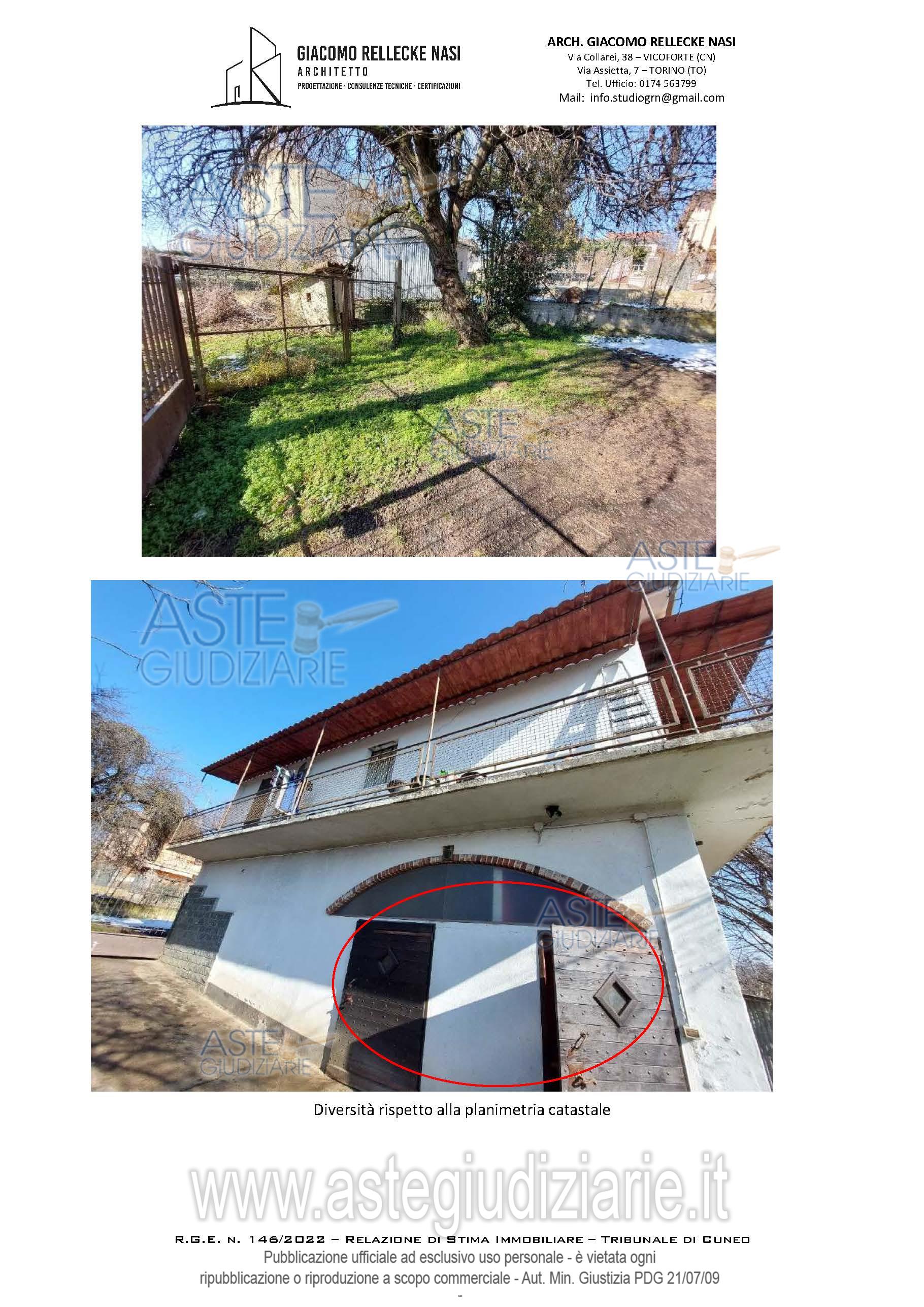 Vendita all'asta Senza incanto, con gara telematica asincrona - LOTTO UNICO: Fabbricato ad uso civile abitazione libero su 4 lati con terreno pertinenziale al fabbricato. Fabbricato dichiarato ante '67 si eleva su due piani fuori terra con recinzione e cancello che delimita parte della particella in quanto una piccola parte è lasciata libera per accesso al cancello del confinante e per poter accedere all'immobile oggetto di perizia si attraversa il cortile di proprietà terzi gravate da servitù di passaggio. Completo di terreno confinante tenuto come prato. Prezzo base € 40.810,00 (offerta minima € 30.607,50). Data inizio operazioni di vendita: 12/01/2026 ore 09:00. Giudice Dott. Roberta Bonaudi. Professionista delegato alla vendita Dott. Cristina Cerutti - Email "studiocristinacerutti@gmail.com"; Tel. 01711935323. Custode Giudiziario Ifir Piemonte Ivg Srl - Email "richiestevisite.cuneo@ivgpiemonte.it"; Tel. 01711873923. Rif. Tribunale di Cuneo - Esecuzione immobiliare post legge 80 n. 146/2022