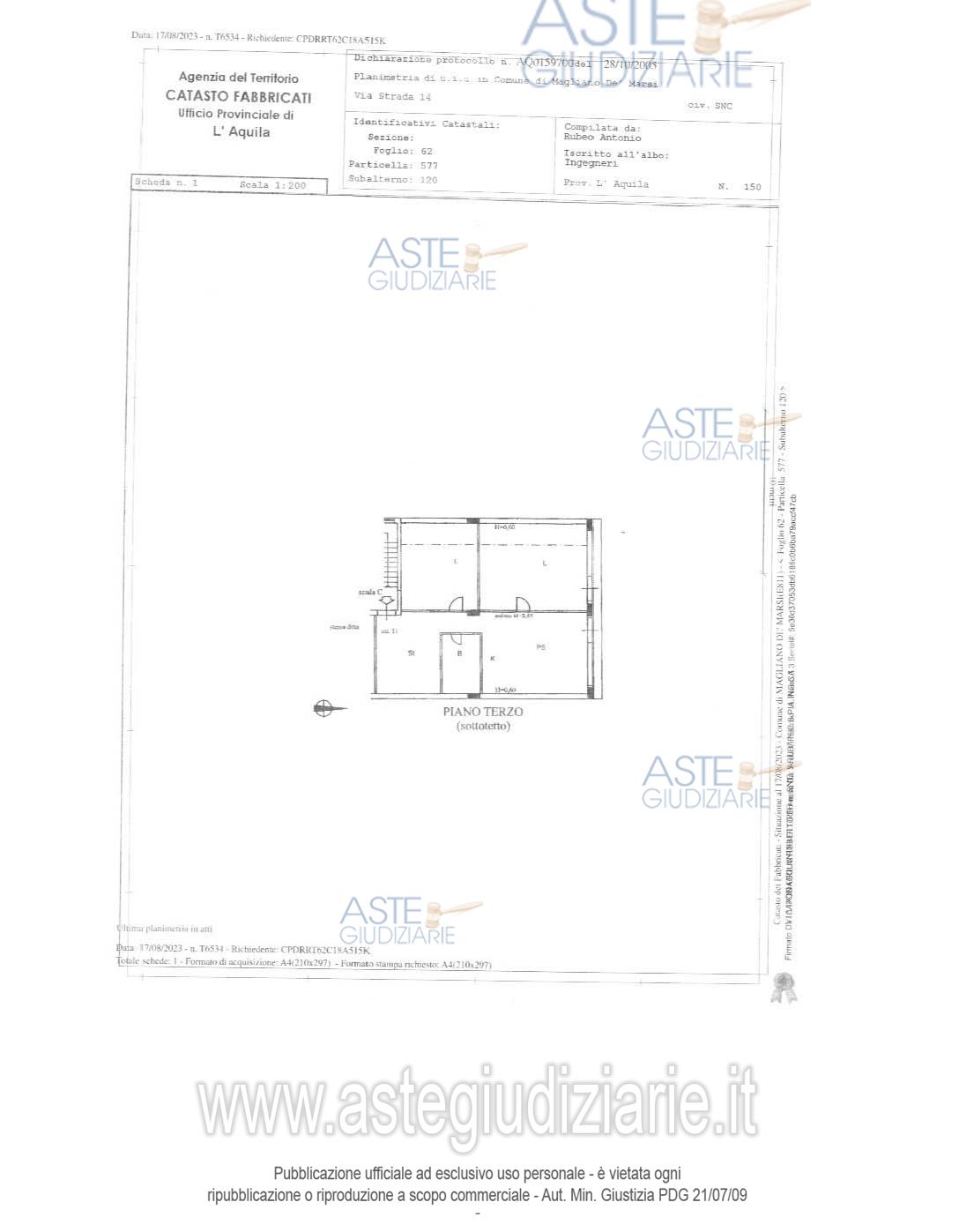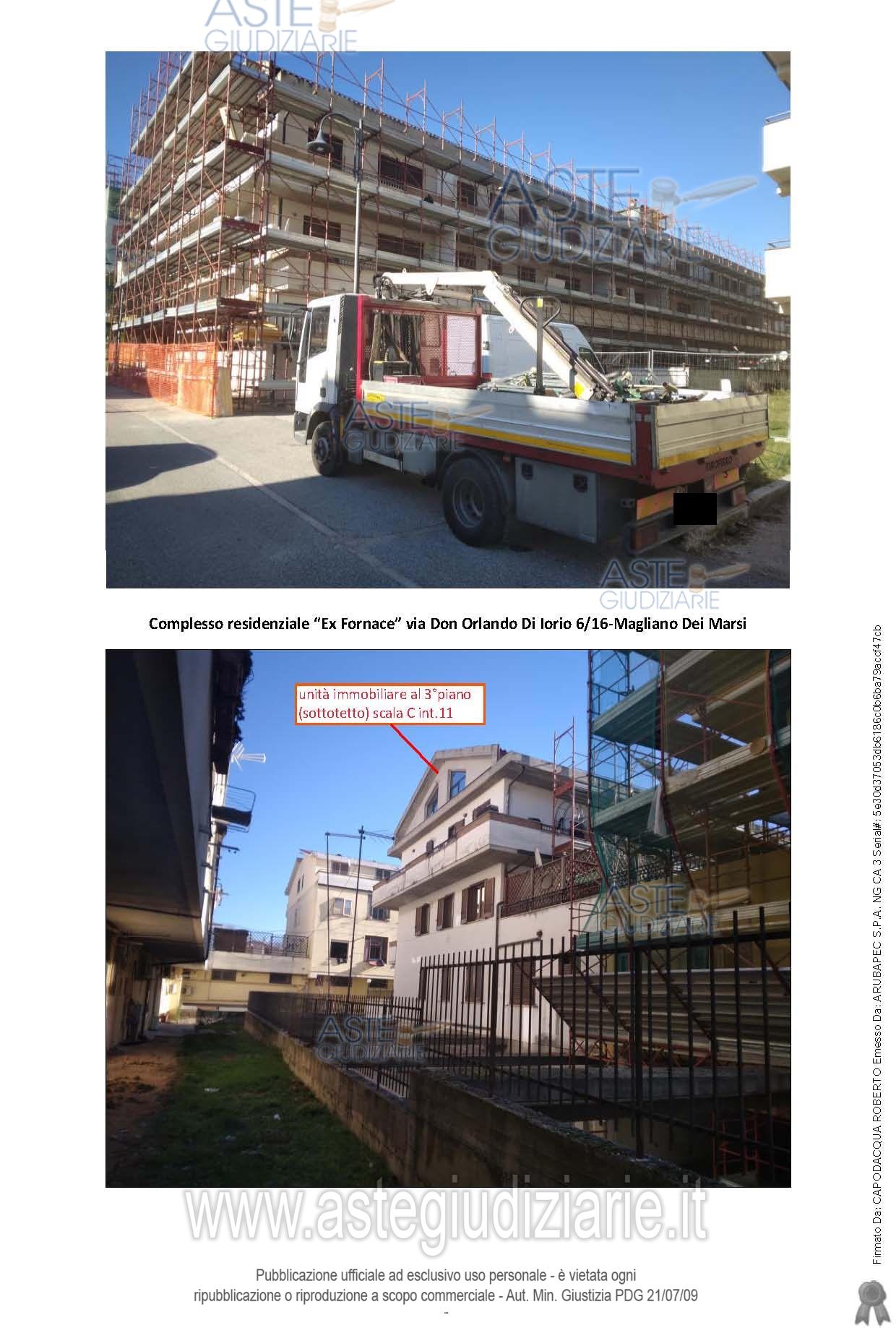 Vendita all'asta Senza incanto, con gara telematica asincrona - LOTTO UNICO: L'immobile viene posto in vendita per il diritto di Proprietà (1/1) ed è sito in • Magliano dei Marsi (AQ) - Via Don Orlando Di brio n. 14, scala C, interno 11, piano 3 (sottotetto), mq 137 n.4 vani del fabbricato di civile abitazione a tre piani piu' interrato (box garage), identificato all’Agenzia del Territorio di L’Aquila al catasto Fabbricati del Comune di Magliano dei Marsi : Fg. 62, Part. 577, Sub. 120, Categoria A2, rendita € 209,17. Prezzo base € 19.000,00 (offerta minima € 14.250,00). Data inizio operazioni di vendita: 03/12/2025 ore 12:00. Professionista delegato alla vendita Avv. Clara Cardamone - Email "avv.clara@libero.it"; Tel. 3293215607. Custode Giudiziario Avv. Clara Cardamone - Email "avv.clara@libero.it"; Tel. 3293215607. Rif. Tribunale di Avezzano - Esecuzione immobiliare post legge 80 n. 5/2023