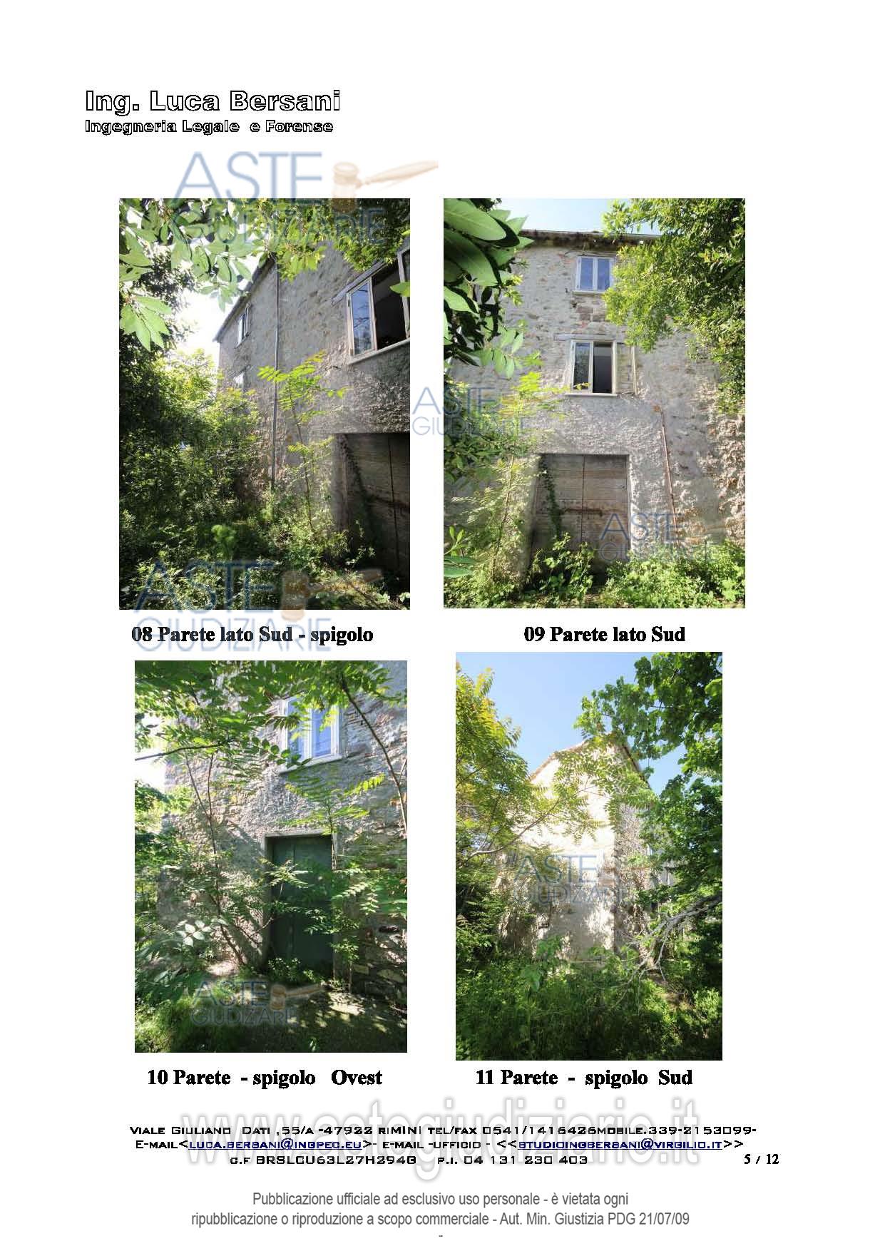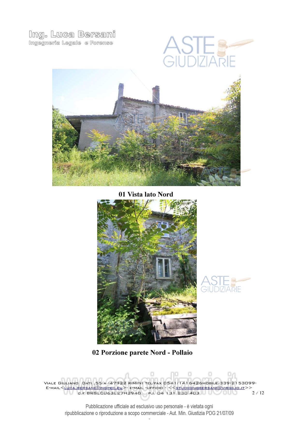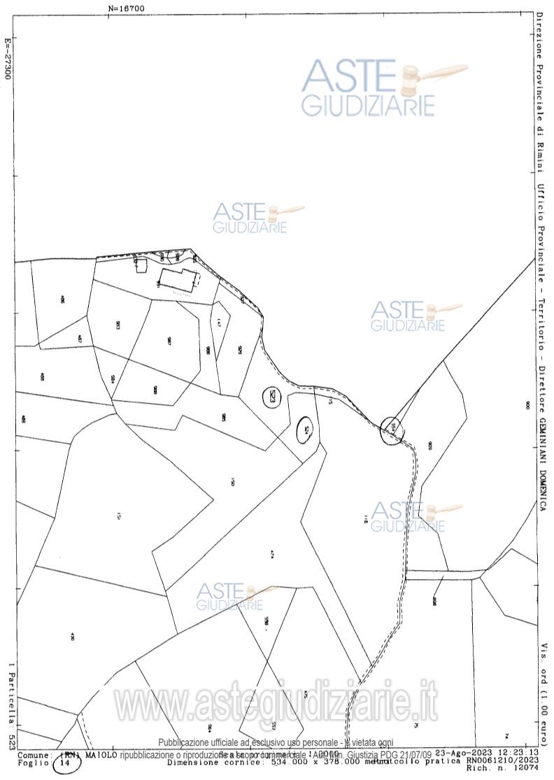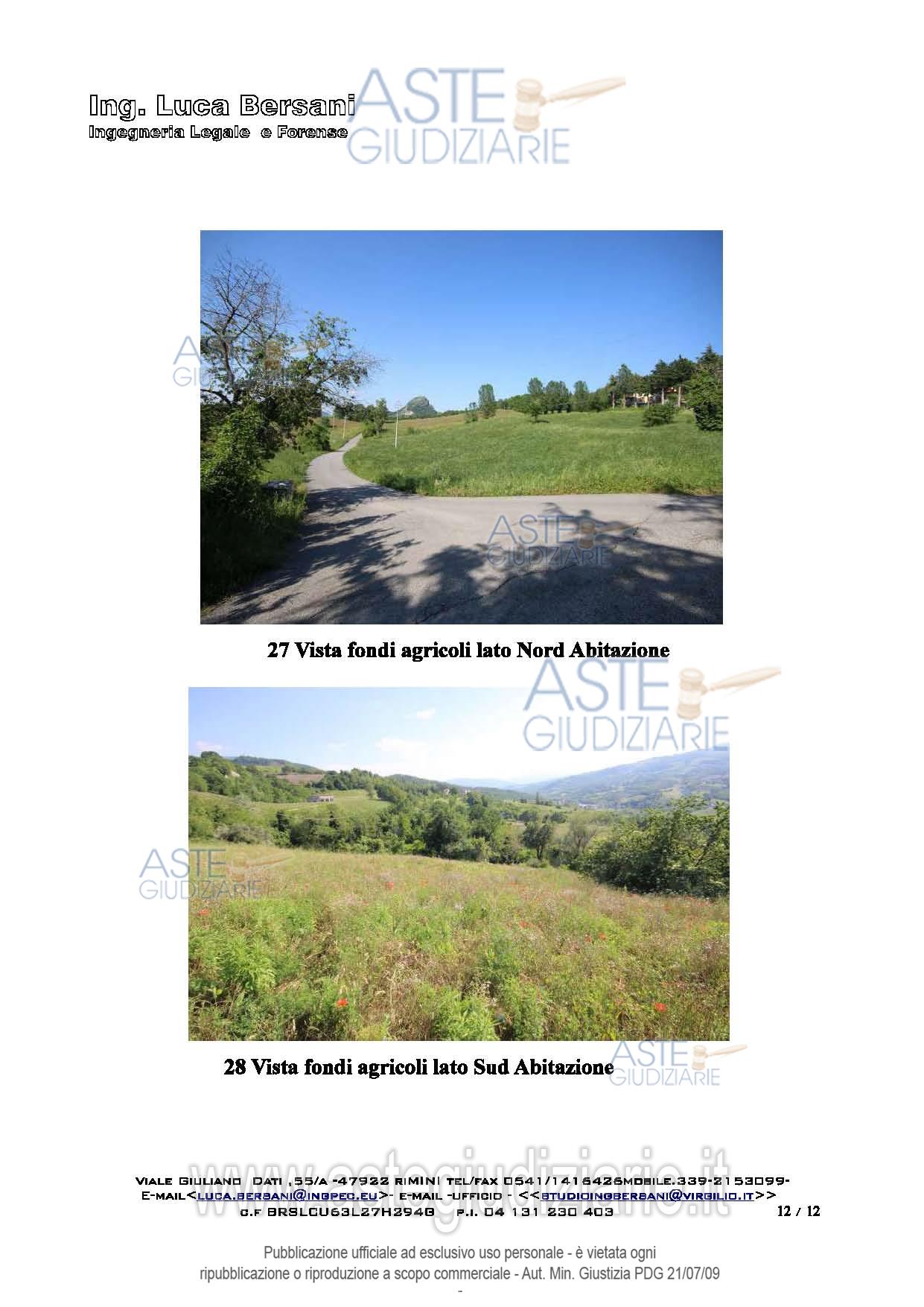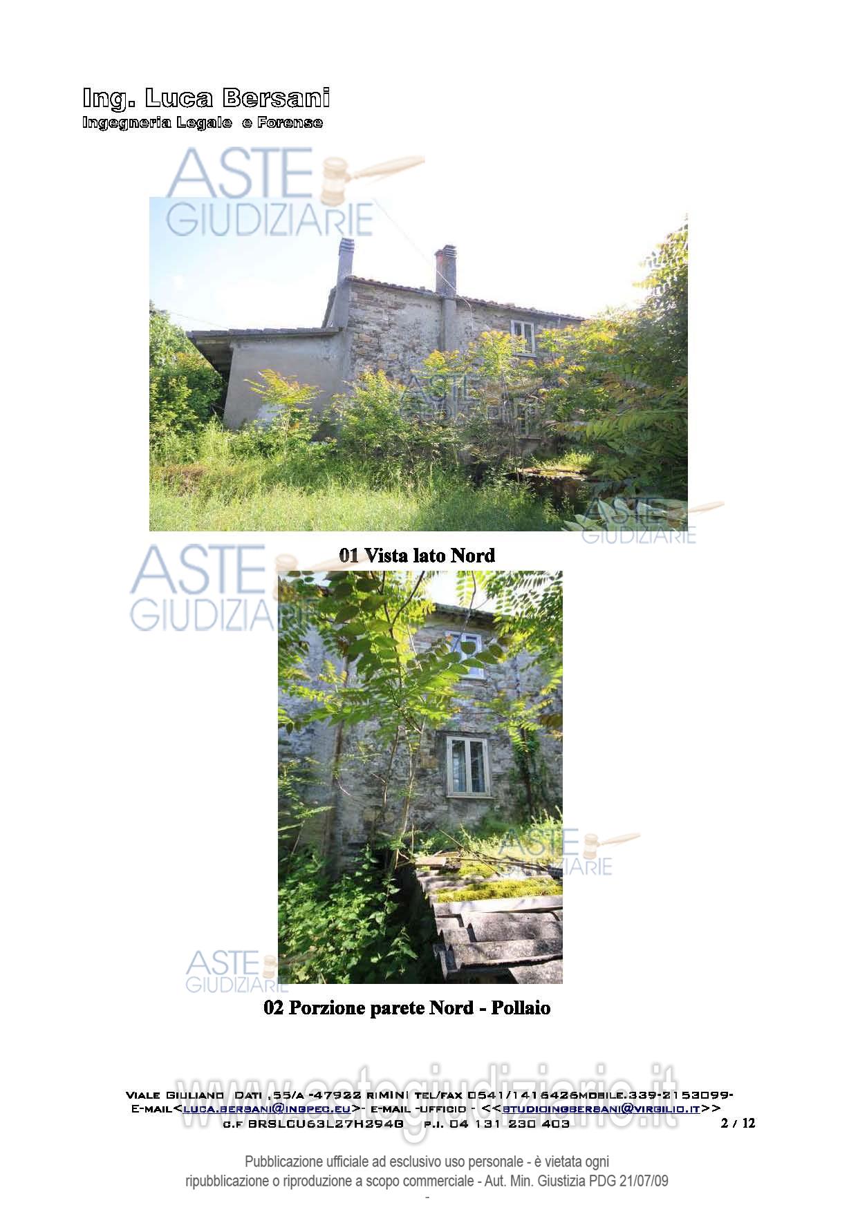 Vendita all'asta Senza incanto - LOTTO UNICO: La piena proprietà di un compendio immobiliare sito in Comune di Maiolo località Cà Bertozzo n. 242 costituito da una abitazione al piano terra e primo con autorimessa e vari ripostigli e manufatti per una superficie equivalente di circa mq. 254,32 e da terreni a destinazione agricola per una superficie catastale di mq 3364,. Prezzo base € 54.000,00 (offerta minima € 54.000,00). Data vendita 14/05/2026 ore 14:30. Giudice Elisa Dai Checchi. Professionista delegato alla vendita Not. Pietro Bernardi Fabbrani - Email "info@delegatirimini.it"; Cell. 3351284387; Tel. 054154486. Rif. Tribunale di Rimini - Contenzioso civile n. 2726/2021