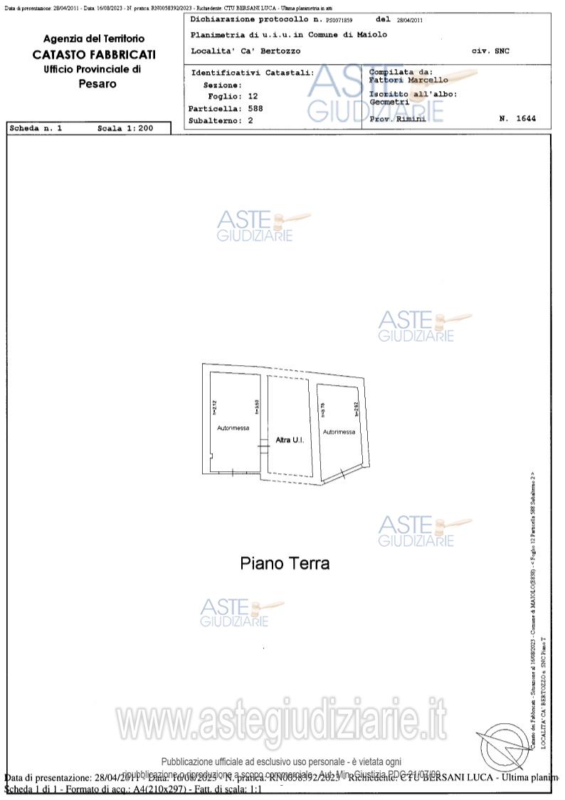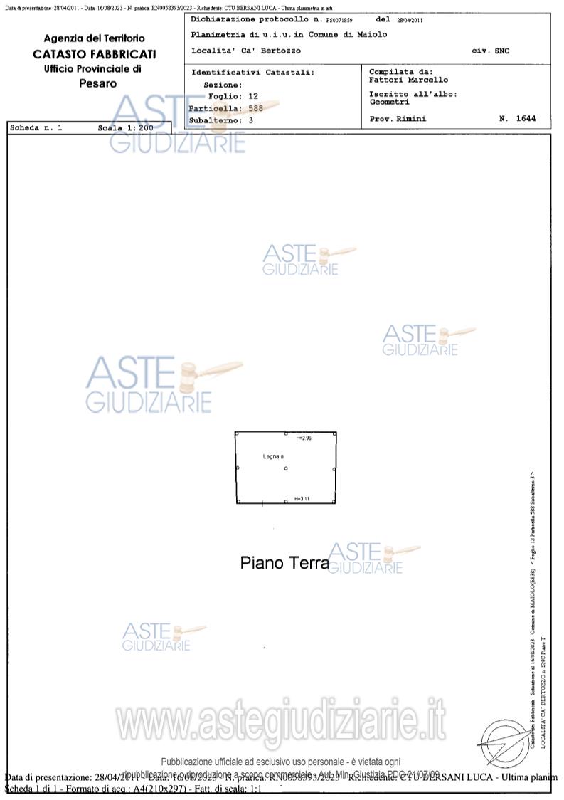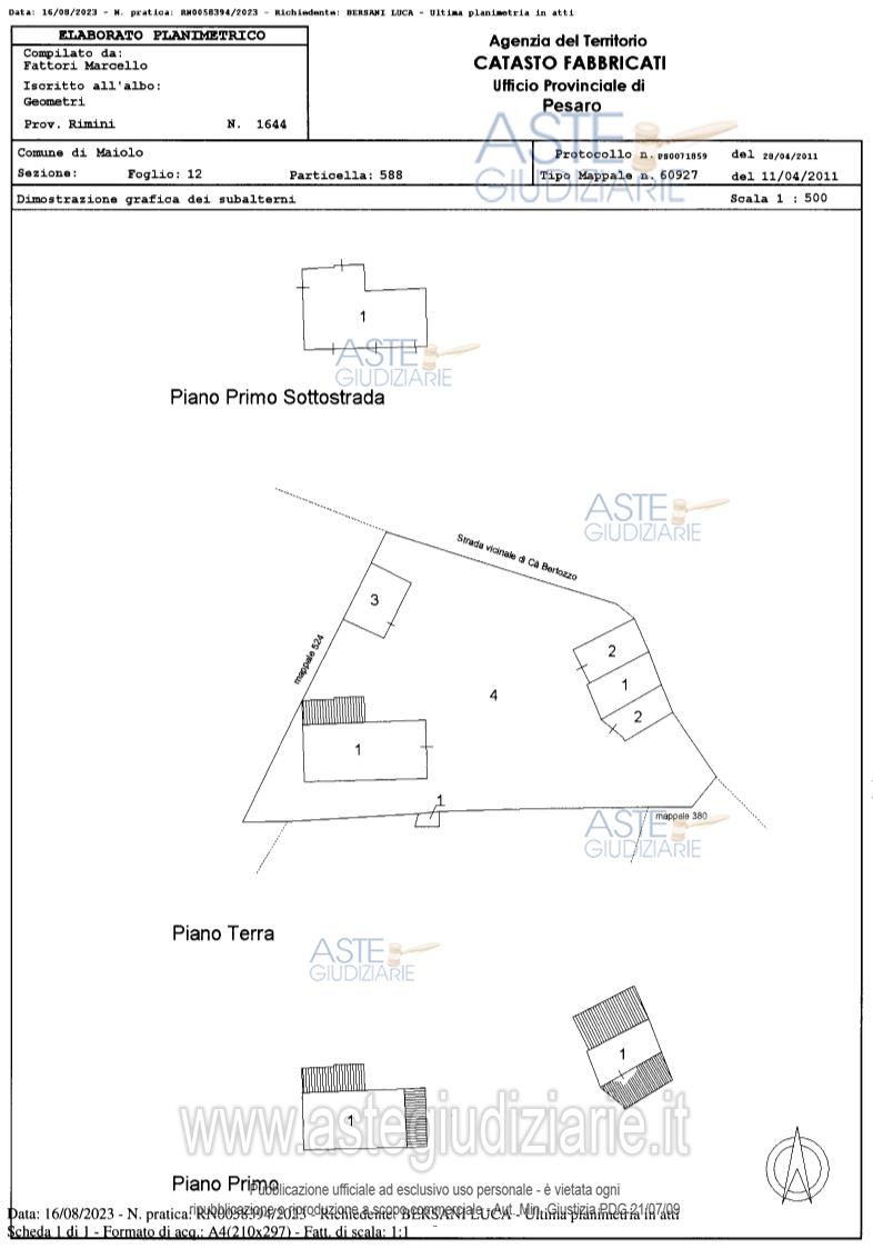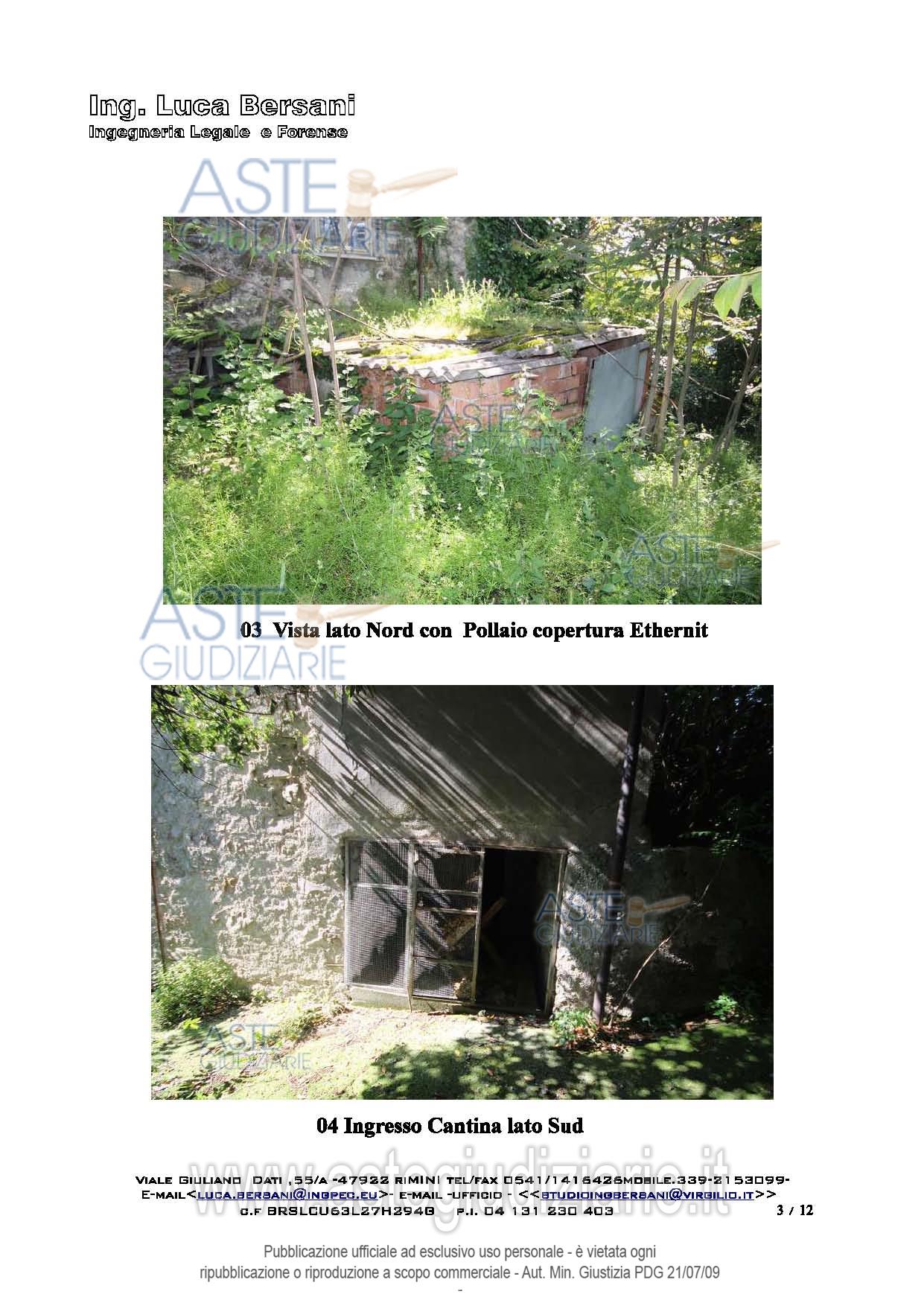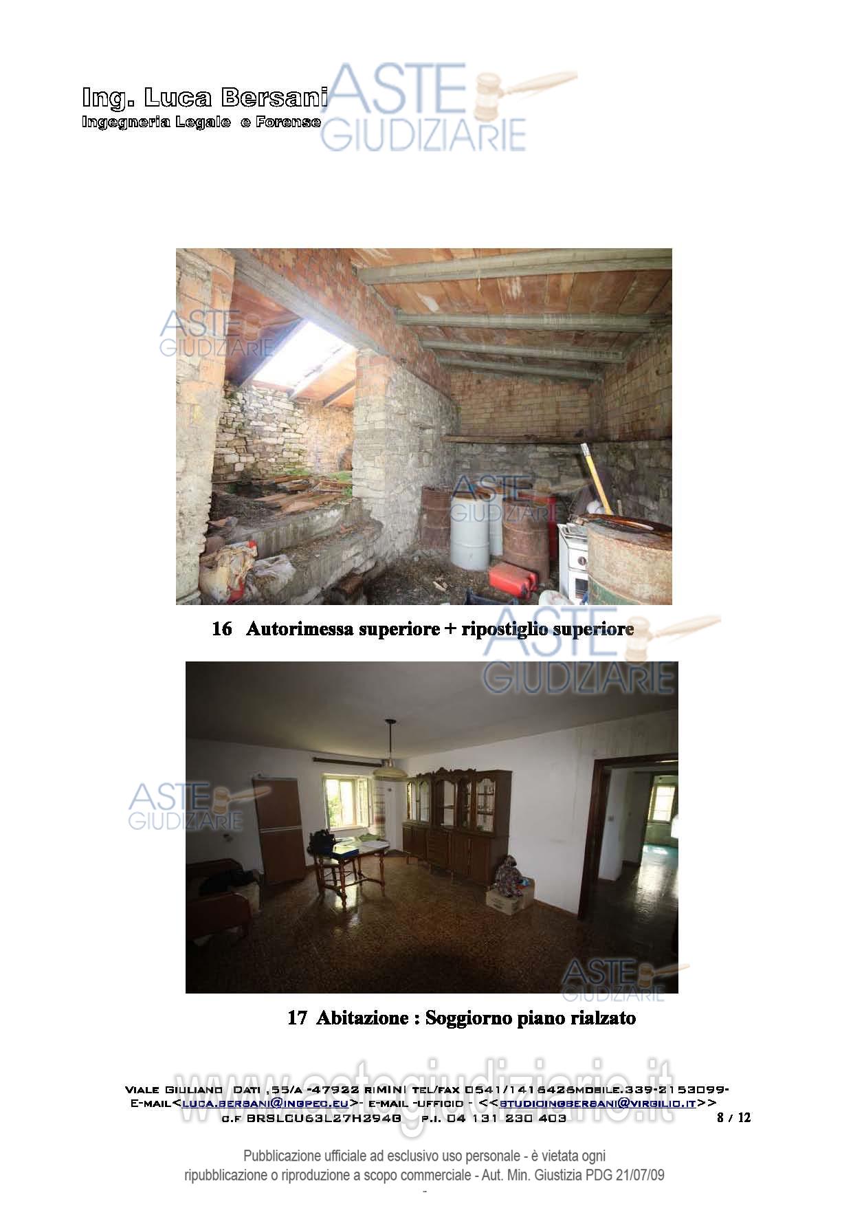 Vendita all'asta Senza incanto - LOTTO UNICO: La piena proprietà di un compendio immobiliare sito in Comune di Maiolo località Cà Bertozzo n. 242 costituito da una abitazione al piano terra e primo con autorimessa e vari ripostigli e manufatti per una superficie equivalente di circa mq. 254,32 e da terreni a destinazione agricola per una superficie catastale di mq 3364,. Prezzo base € 54.000,00 (offerta minima € 54.000,00). Data vendita 14/05/2026 ore 14:30. Giudice Elisa Dai Checchi. Professionista delegato alla vendita Not. Pietro Bernardi Fabbrani - Email "info@delegatirimini.it"; Cell. 3351284387; Tel. 054154486. Rif. Tribunale di Rimini - Contenzioso civile n. 2726/2021
