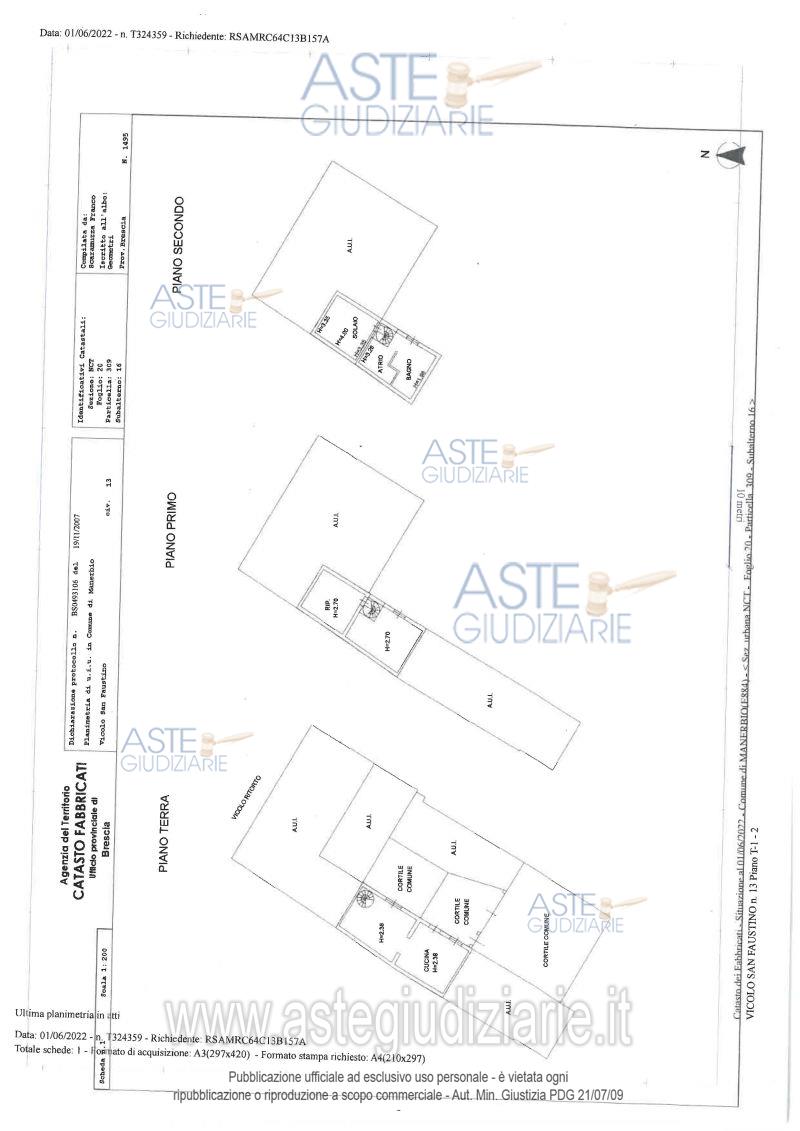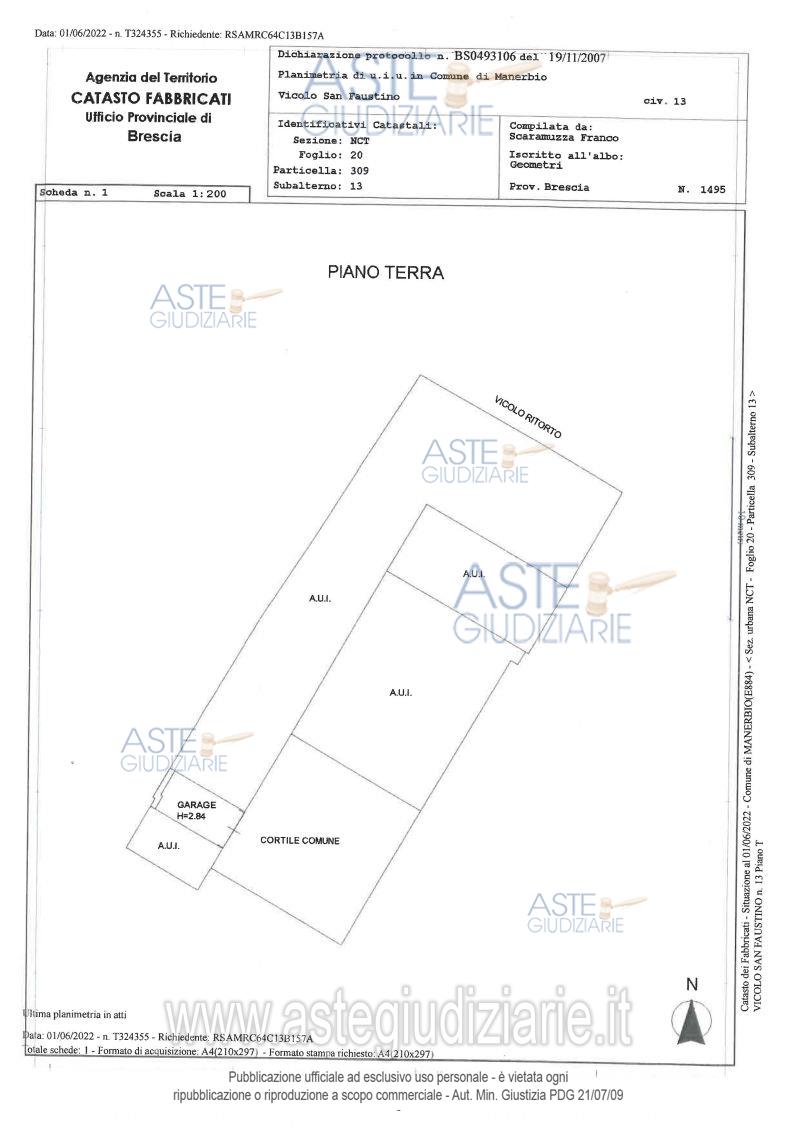 Vendita all'asta Senza incanto, con gara telematica asincrona - LOTTO UNICO: Piena proprietà di unità abitativa ad uso residenziale, composta da un appartamento situato al Piano Terra – Primo e Secondo/sottotetto, all’interno di un cortile comune, due garages al piano Terra, due locali adibiti a ripostiglio al piano Primo e una cantina di pertinenza al piano Interrato. Libero. Prezzo base € 71.478,28 (offerta minima € 53.608,71). Data inizio operazioni di vendita: 23/04/2026 ore 12:00. Professionista delegato alla vendita Dott. Giulia Cattaneo - Email "giulia.cattaneo@studiopassantino.it"; Tel. 03049011. Custode Giudiziario Dott. Giulia Cattaneo - Email "giulia.cattaneo@studiopassantino.it"; Tel. 03049011. Rif. Tribunale di Brescia - Esecuzione immobiliare post legge 80 n. 81/2022