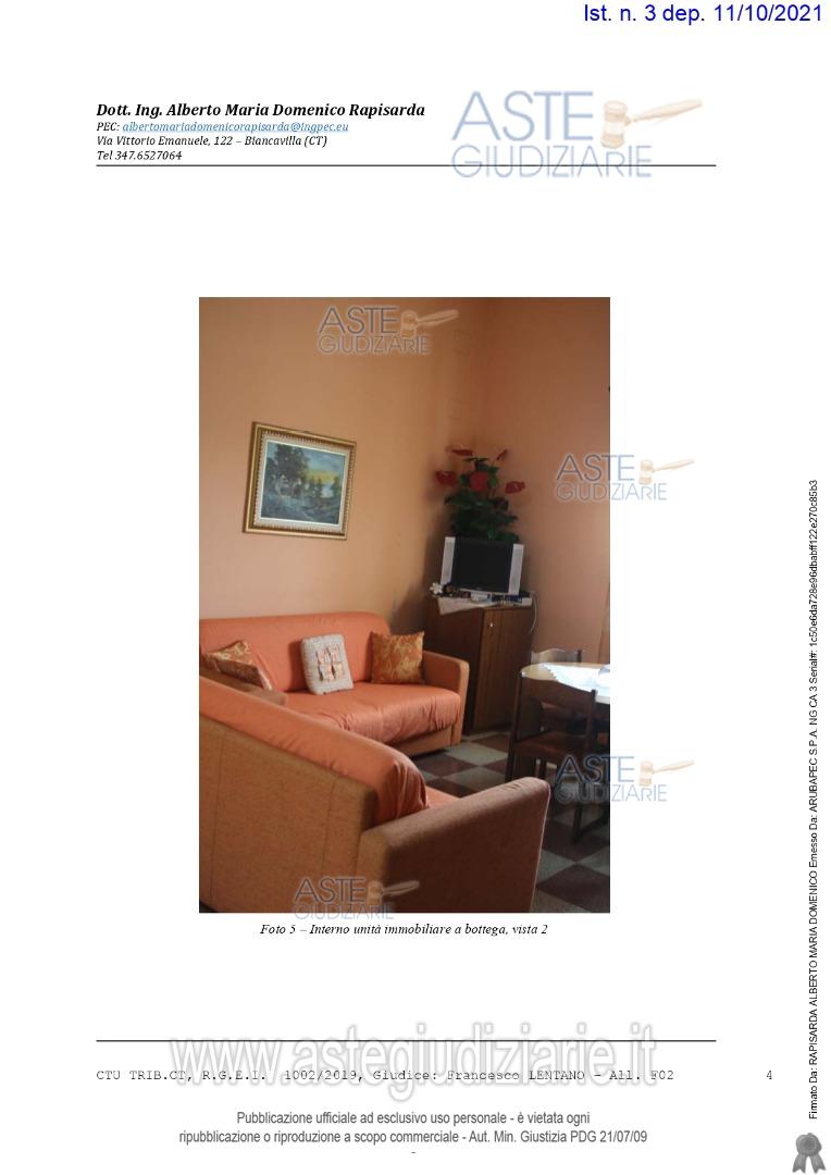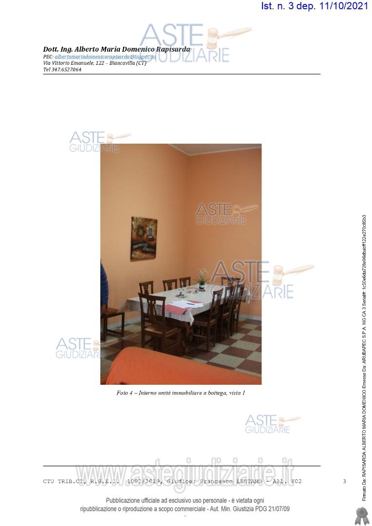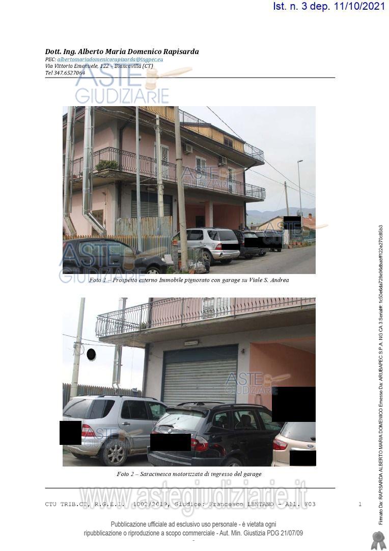 Vendita all'asta Senza incanto, con gara telematica sincrona mista - LOTTO 1: Lotto costituito da appartamento di vani 5, una bottega e un garage. Tutto meglio descritto nella perizia di stima in atti. Prezzo base € 23.498,44 (offerta minima € 17.624,00). Data vendita 22/12/2025 ore 09:00. Giudice Maria Acagnino. Professionista delegato alla vendita Avv. Andrea Saia - Email "avv.andreasaia@gmail.com"; Cell. 3465321666. Custode Giudiziario Andrea Saia. Rif. Tribunale di Catania - Esecuzione immobiliare post legge 80 n. 1002/2019