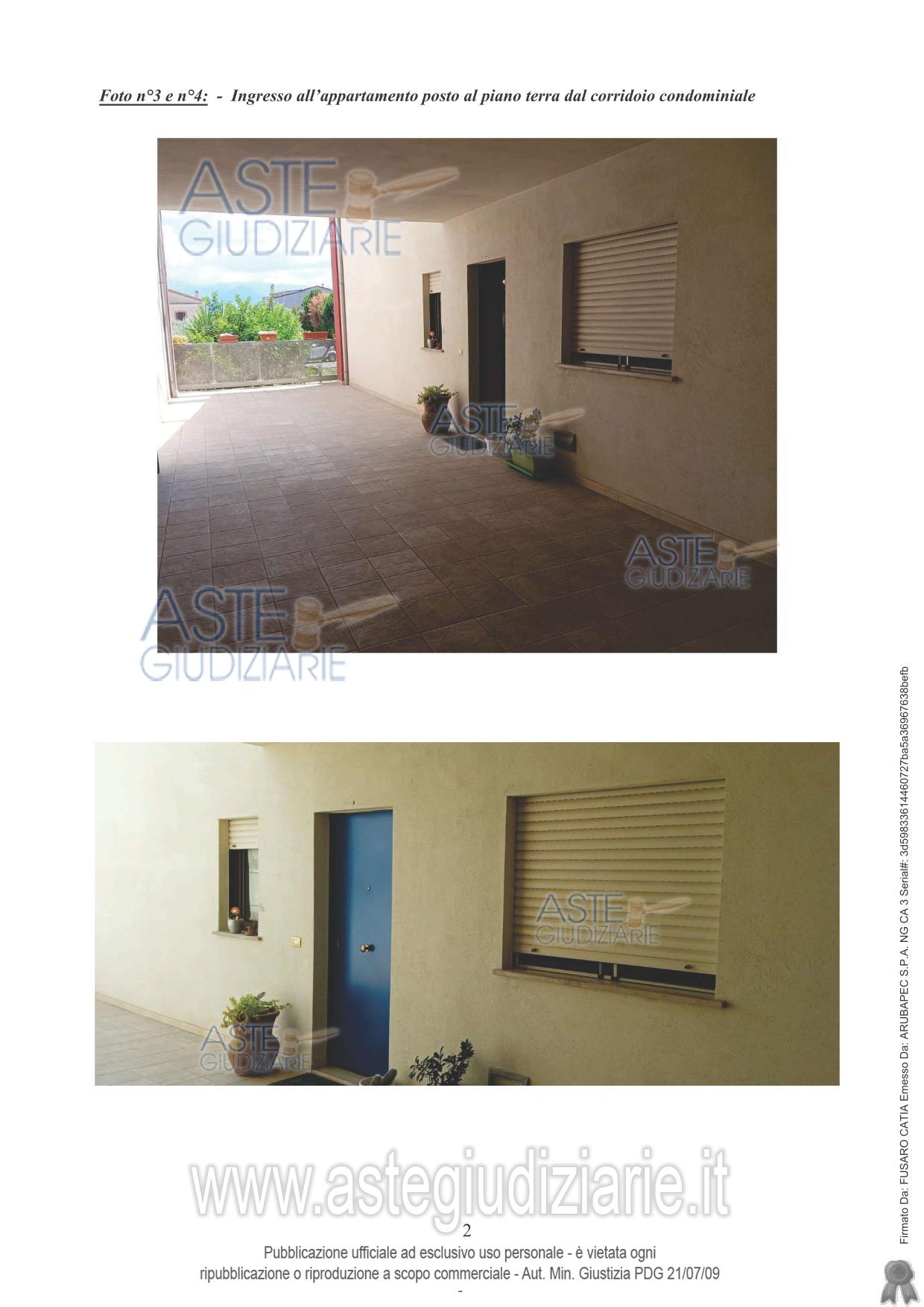 Vendita all'asta Senza incanto, con gara telematica sincrona - LOTTO UNICO: Appartamento al P.T. composto da soggiorno/sala pranzo, corridoio, 2 camere, bagno, vano scala di accesso al P.Seminterrato e balcone; Garage pertinenziale, censito in catasto come magazzino, accessibile dall’app.to al P.T. mediante scala, ma dotato anche di accesso al P.Seminterrato. Piccolo ripostiglio ricavato nello spazio sottoscala. Abusi edilizi con possibilità di sanatoria. Superficie calpestabile dell’app.to mq 76,70 (oltre mq 4,40 di balcone); garage mq 40,20. Libero. Prezzo base € 71.710,00 (offerta minima € 53.782,50). Data vendita 21/07/2026 ore 11:00. Giudice Dott. Assunta Gioia.