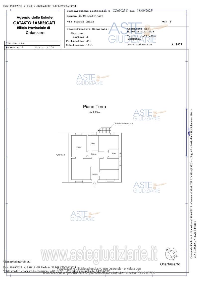 Vendita all'asta Senza incanto, con gara telematica asincrona - LOTTO UNICO: Piena proprietà per la quota di 1000/1000 di appartamento per civile abitazione sito inMarcellinara (CZ) alla Via Europa Unita n. 9, posto al piano terra, distinto al Catasto Fabbricati didetto Comune al foglio 3, p.lla 458, sub. 1101, cat. A/3, superficie catastale 117 mq., Rendita € 154,42,con accesso tramite corte comune individuata al sub. 3, non soggetta a pignoramento, il tutto comemeglio descritto nella relazione tecnica di stima a firma del Geom. Gianluca Bulotta, espertonominato dal GE. Prezzo base € 43.700,00 (offerta minima € 32.775,00). Data inizio operazioni di vendita: 30/03/2026 ore 16:00. Professionista delegato alla vendita Avv. Alessandra Tassoni - Email "avv.atassoni@gmail.com"; Cell. 3384248637. Custode Giudiziario Avv. Alessandra Tassoni - Email "avv.atassoni@gmail.com"; Cell. 3384248637. Rif. Tribunale di Catanzaro - Esecuzione immobiliare post legge 80 n. 37/2023
