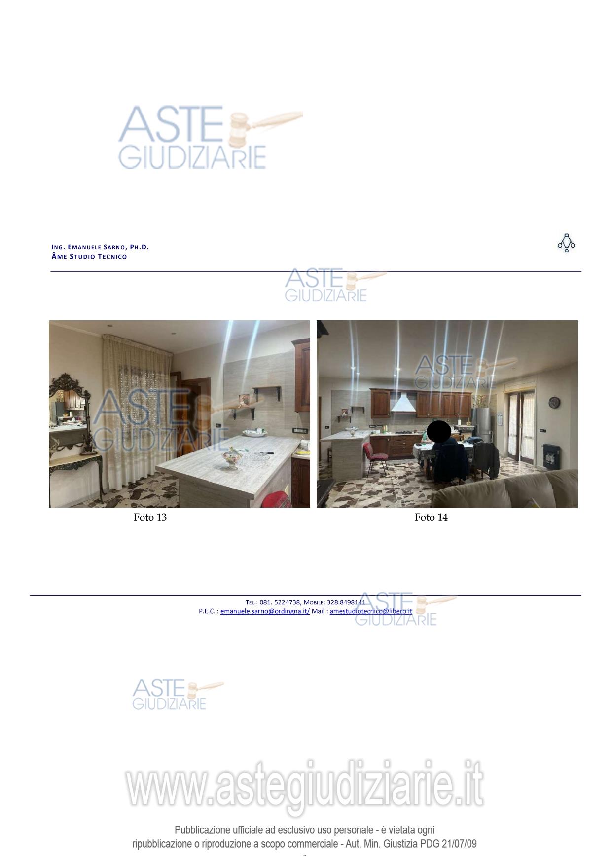 Vendita all'asta Senza incanto, con gara telematica asincrona - LOTTO 2: LOTTO DUE: Bene N° 2 - Piena ed intera proprietà di appartamento ubicato nel Comune di Marigliano (NA) alla Via San Marcellino n. 26A posto al piano primo di un edificio residenziale che si articola su tre piani fuori terra. L’accesso al fabbricato avviene dal passaggio coperto, carrabile e pedonale, che conduce al vano scala comune; l’appartamento è composto da una cucina/soggiorno, due camere, un bagno, un ripostiglio ed un corridoio Il cespite è dotato di un balcone, prospiciente il lato est. Prezzo base € 110.025,00 (offerta minima € 82.518,75). Data inizio operazioni di vendita: 03/02/2026 ore 15:00. Giudice Gennaro Beatrice. Professionista delegato alla vendita Dott. Enzo Sorvino - Email "enzo_sorvino@fastwebnet.it"; Cell. 3382694153; Tel. 08119575035. Custode Giudiziario Dott. Enzo Sorvino - Email "enzo_sorvino@fastwebnet.it"; Cell. 3382694153; Tel. 08119575035. Rif. Tribunale di Nola - Espropriazione immobiliare (cartabia) n. 45/2024