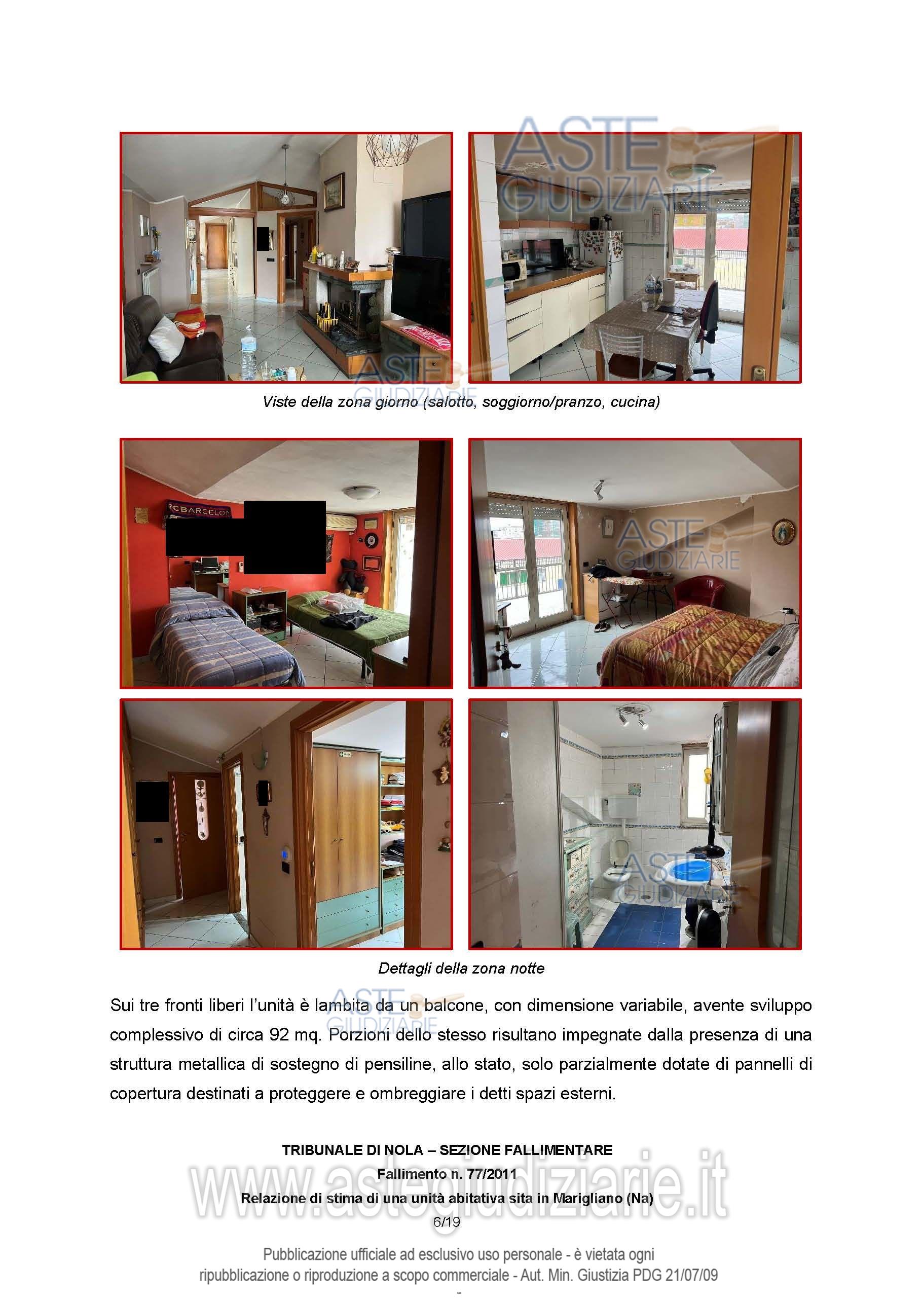Vendita all'asta Senza incanto, con gara telematica asincrona - LOTTO 4: Diritti di piena proprietà 1/1 su appartamento composto da salotto, soggiorno/pranzo, cucina, quattro camere, ambiente di servizio, due bagni, lavanderia e balcone sull’intero perimetro, afferente al piano secondo di un fabbricato per civiliabitazioni a carattere familiare sito in Marigliano (Na) alla via Nuova Isonzo n. 18, con accesso anche dalla retrostante Viella San Pietro. Prezzo base € 290.000,00 (offerta minima € 217.500,00). Data inizio operazioni di vendita: 05/03/2026 ore 10:00. Giudice Dott. Rosa Napolitano. Custode Giudiziario Aste Giudiziarie Inlinea Spa - Email "vendite@astegiudiziarie.it"; Tel. 0586 201480. Curatore Dott. Monica Osteria. Rif. Tribunale di Nola - Fallimentare (nuovo rito) n. 77/2011