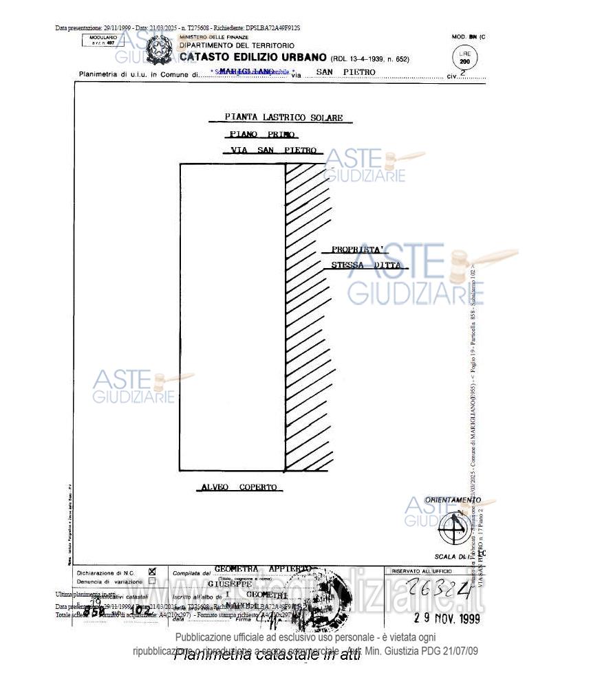 Vendita all'asta Senza incanto, con gara telematica asincrona - LOTTO 4: Право собственности в полном объеме 1/1 на квартиру, состоящую из гостиной, гостиной / столовой, кухни, четырех спален, служебного помещения, двух ванных комнат, прачечной и балкона по всему периметру, относящейся к второму этажу здания для жилых домов семейного типа в городе Марильяно (Неаполь) на улице Новый Исонцо, 18, с доступом также со стороны задней улочки Сан-Пьетро. Prezzo base € 290.000,00 (offerta minima € 217.500,00). Data inizio operazioni di vendita: 05/03/2026 ore 10:00. Giudice Dott. Rosa Napolitano. Custode Giudiziario Aste Giudiziarie Inlinea Spa - Email "vendite@astegiudiziarie.it"; Tel. 0586 201480. Curatore Dott. Monica Osteria. Rif. Tribunale di Nola - Fallimentare (nuovo rito) n. 77/2011