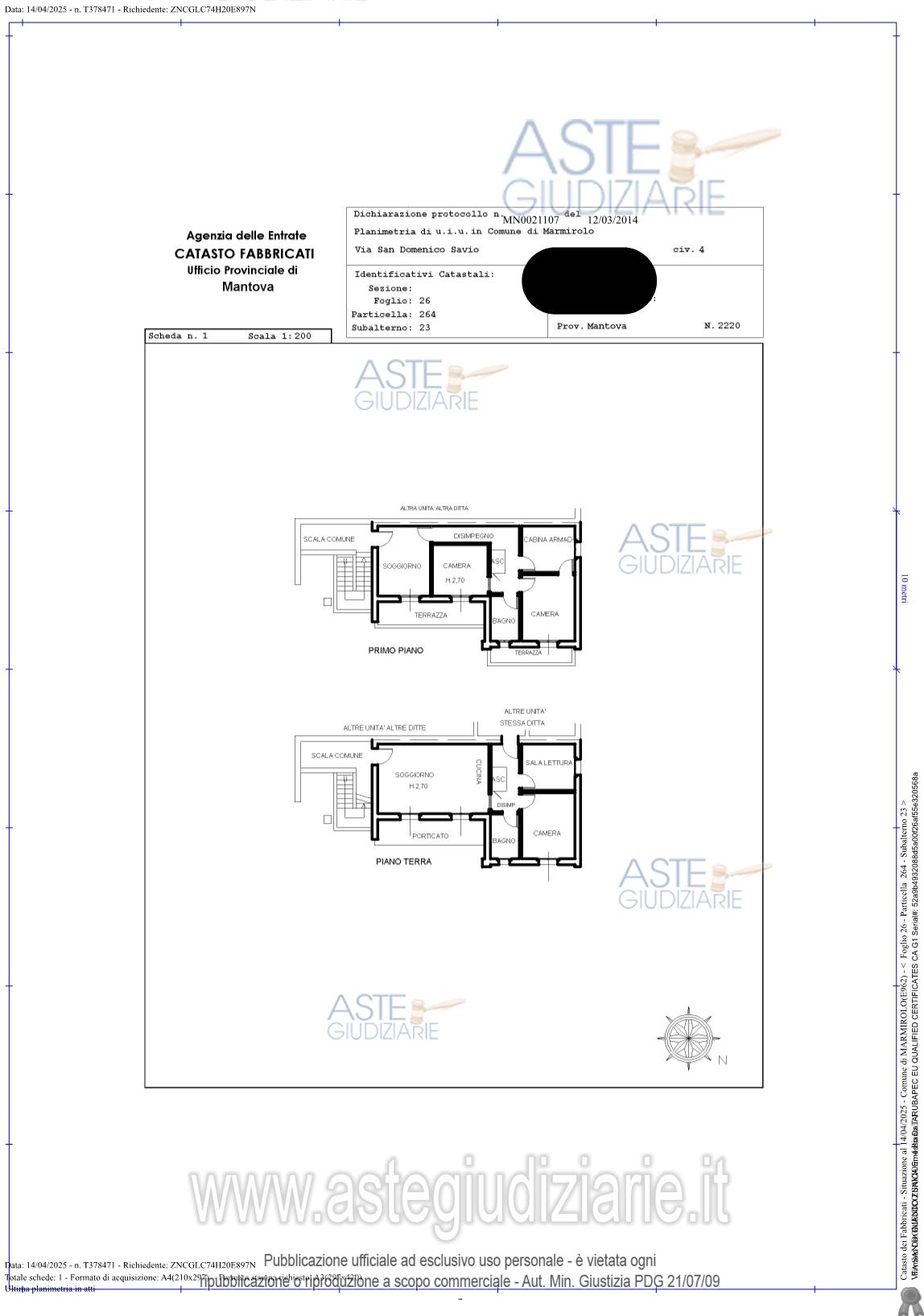 Vendita all'asta Senza incanto, con gara telematica sincrona mista - LOTTO UNICO: Piena proprietà di unità immobiliare a destinazione residenziale "A/3" che si sviluppa ai piani terra e primo ed è composta al piano terra da soggiorno con angolo cucina, disimpegno, camera, sala lettura, bagno e porticato, al piano primo da disimpegno, due camere, cabina armadio, soggiorno, bagno e due terrazze. I due piani sono collegati da piattaforma elevatrice interna all'unità immobiliare e sono accessibili da scala comune anche ad altre proprietà.completano il lotto due autorimesse. Prezzo base € 174.250,00 (offerta minima € 130.688,00). Data vendita 08/06/2026 ore 16:00. Professionista delegato alla vendita Avv. Elena Amadei - Email "AVV.AMADEI@GMAIL.COM"; Cell. 3477940144; Tel. 0376220460. Custode Giudiziario Ivg Di Mantova Sovemo - Email "IMMOBILIAREMANTOVA@SOVEMO.COM"; Tel. 0376220694. Rif. Tribunale di Mantova - Espropriazione immobiliare (cartabia) n. 27/2025