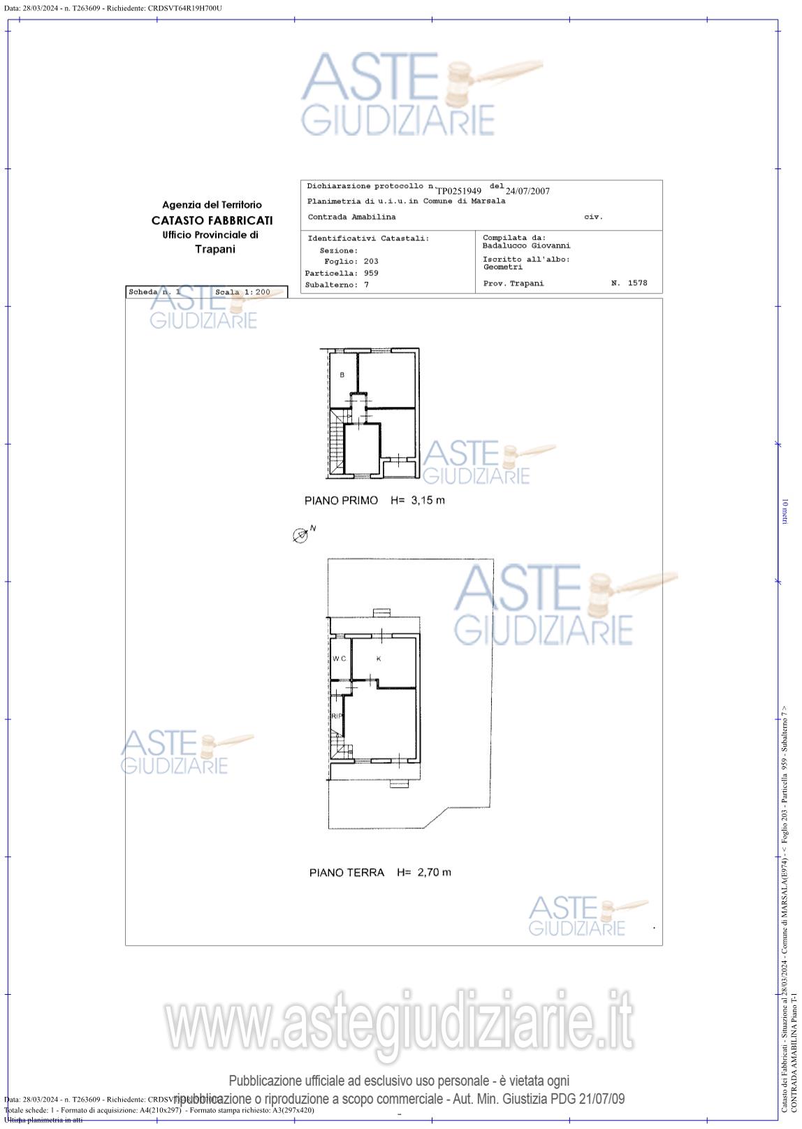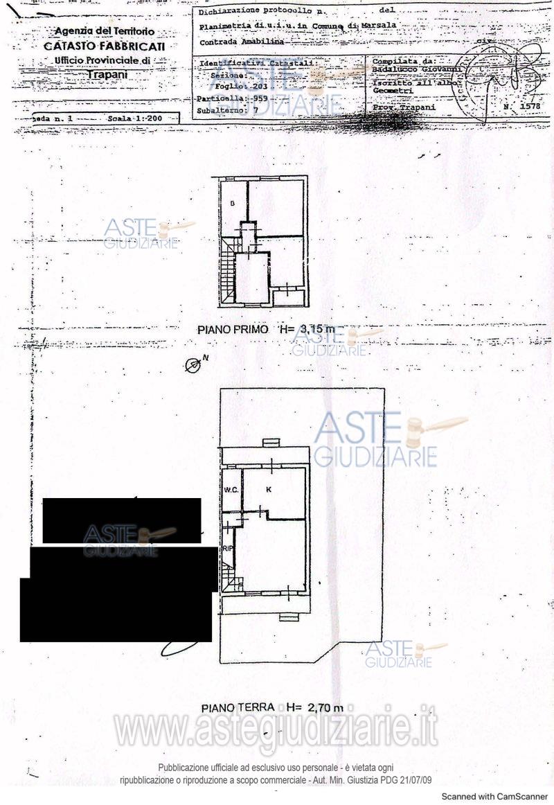Vendita all'asta Senza incanto, con gara telematica asincrona - LOTTO 1: Piena proprietà di Villetta Unifamiliare a due elevazioni fuori terra destinata a civile abitazione, realizzata su un lotto di terreno di 230 mq circa compresa l'area di sedime della fabbrica, facente parte di un complesso residenziale sito in Marsala, Contrada Amabilina n. 438/I, composta da soggiorno, cucina, bagno, ripostiglio, disimpegno e due verande scoperte al piano terra e da tre camere da letto, disimpegno e bagno al piano primo. Prezzo base € 64.700,00 (offerta minima € 48.525,00). Data inizio operazioni di vendita: 08/01/2026 ore 16:00. Giudice Marcello Bellomo. Professionista delegato alla vendita Avv. Giuseppina Faugiana - Email "g.faugiana@libero.it"; Cell. 3938734510; Tel. 092482357. Custode Giudiziario Avv. Giuseppina Faugiana - Email "g.faugiana@libero.it"; Tel. 092482357. Rif. Tribunale di Marsala - Espropriazione immobiliare (cartabia) n. 3/2024