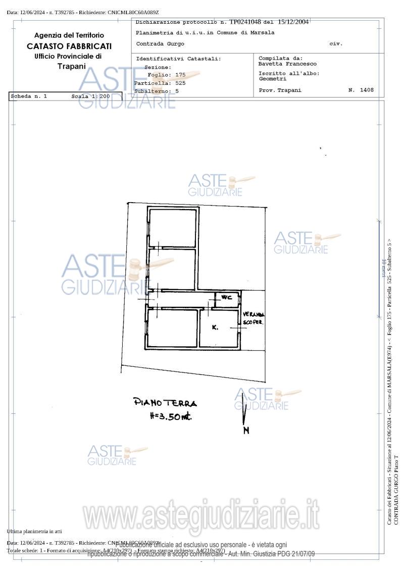 Vendita all'asta Senza incanto, con gara telematica asincrona - LOTTO 1: Piena proprietà (1/1) fabbricato ad uso civile sito in Marsala S.P.24 C/da Gurgo n. 328, P.T., ad un’unica elevazione fuori terra con struttura in muratura portante e copertura piana, Identificato al Catasto Fabbricati al Foglio 175 Part.lla 525 Sub. 5, Z.C. 2, Cat. A/4, consistenza 5 vani, Superficie catastale 109 mq, R.C. € 170,43. Fa parte della dotazione accessoria dell’unità immobiliare lo spazio cortilizio intorno al fabbricato oltre ad una porzione di rispetto prospiciente la strada provinciale. Prezzo base € 49.500,00 (offerta minima € 37.127,00). Data inizio operazioni di vendita: 15/04/2026 ore 10:00. Giudice Dott. Giampaolo Bellofiore. Professionista delegato alla vendita Avv. Giuseppina Faugiana - Tel. 0924 82357. Rif. Tribunale di Marsala - Liquidazione giudiziale(cci) n. 3/2024