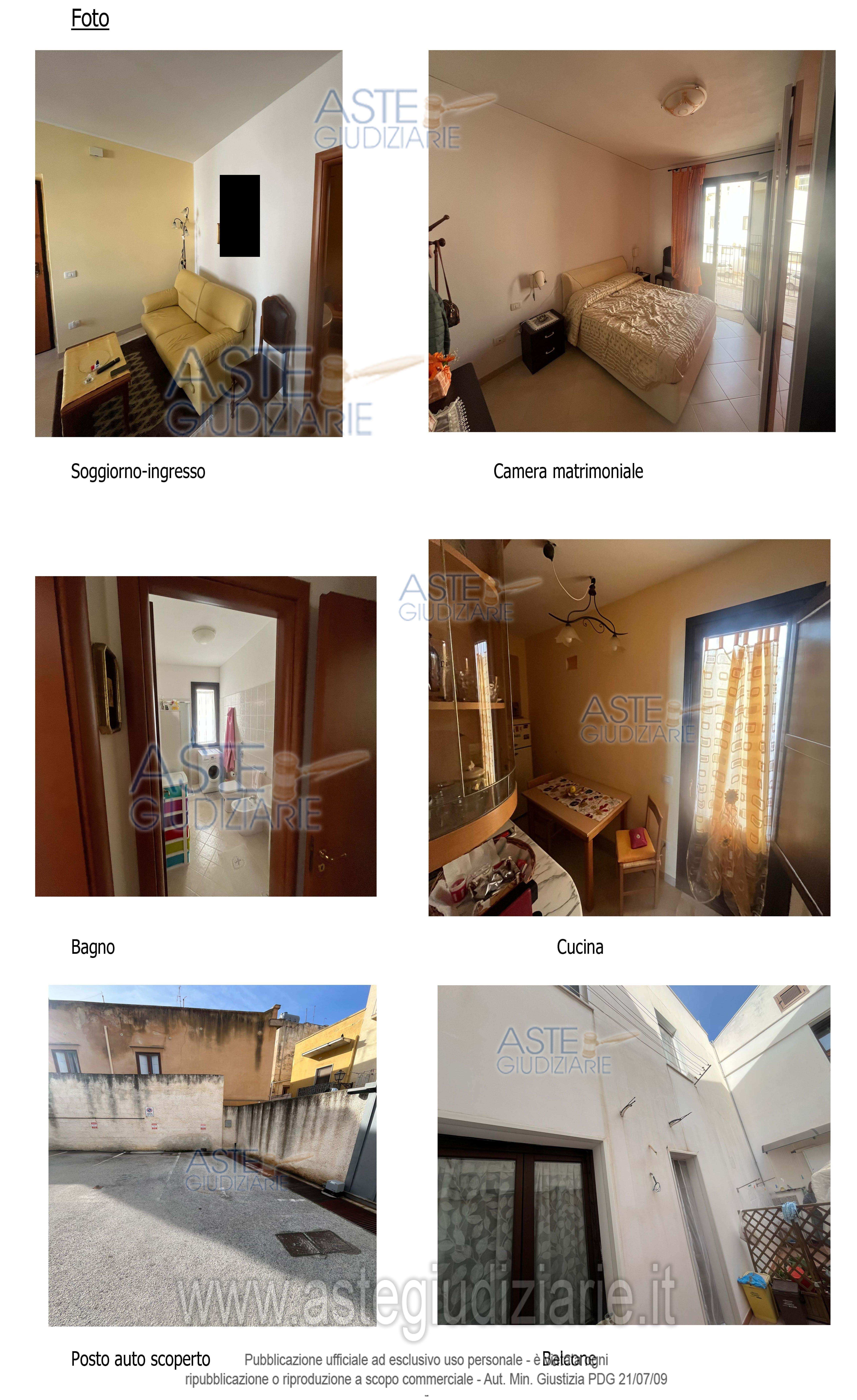 Vendita all'asta Senza incanto, con gara telematica asincrona - LOTTO UNICO: Ungeteilter Anteil von 1/2 (einem halben) des vollen und vollständigen Eigentums an der Immobilienanlage, bestehend aus einer Wohnung im ersten Stock mit Zugang von der Abele Damiani-Straße Nr. 64, bestehend aus einem Wohnzimmer mit Eingang, einem Flur, einem Schlafzimmer, einem Ankleidezimmer, einem Badezimmer und einer Küche, sowie einem offenen Parkplatz im Erdgeschoss mit Zugang von der Scalilla-Straße, ca. 10 Quadratmeter groß. Prezzo base € 45.000,00 (offerta minima € 33.750,00). Data inizio operazioni di vendita: 18/06/2026 ore 11:00. Giudice: Dott. Davide Naldi.