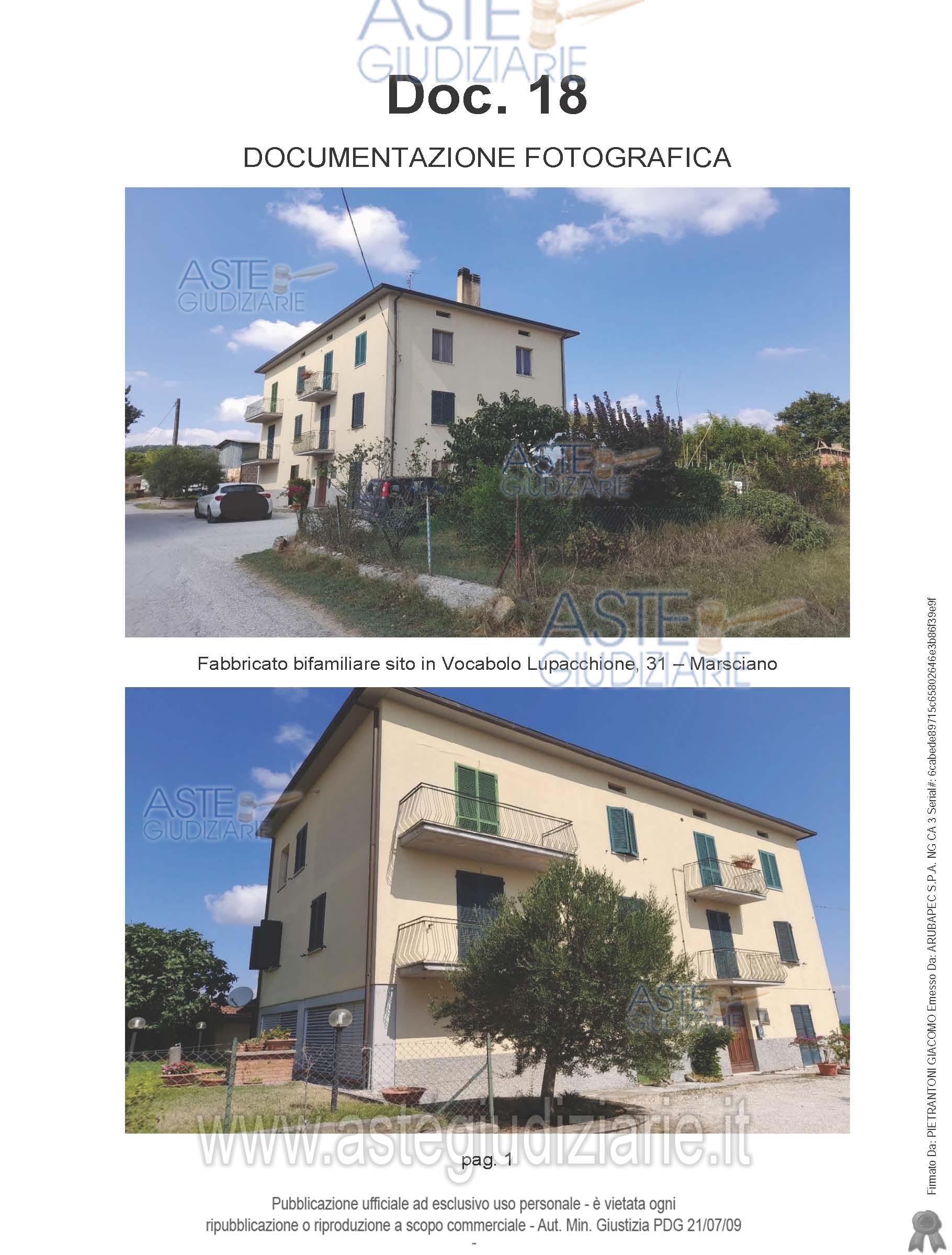 Vendita all'asta Senza incanto, con gara telematica sincrona mista - LOTTO UNICO: MARSCIANO (PG) VOC. LUPACCHIONE. Prezzo base € 122.223,88 (offerta minima € 91.667,91). Data vendita 28/11/2025 ore 14:00. Giudice Alberto Cappellini. Professionista delegato alla vendita Avv. Arianna Felicioni - Email "avv.ariannafelicioni@gmail.com"; Cell. 3409062466; Tel. 0755734237. Custode Giudiziario Ivg Perugia - Email "visite@ivgumbria.com"; Tel. 0755913525. Rif. Tribunale di Spoleto - Espropriazione immobiliare (cartabia) n. 41/2024