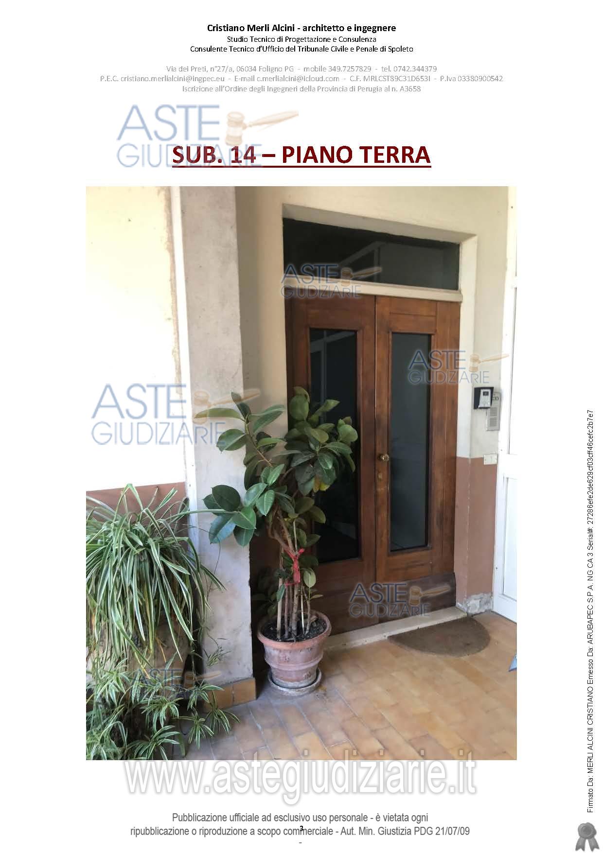 Vendita all'asta Senza incanto, con gara telematica sincrona mista - LOTTO UNICO: MARSCIANO (PG) VIA NINO BIXIO N. 5. Prezzo base € 86.400,00 (offerta minima € 64.800,00). Data vendita 28/05/2026 ore 09:00. Giudice Alberto Cappellini. Professionista delegato alla vendita Dott. Maria Cristina Lupi - Email "cristina.lupi@tiscali.it"; Tel. 0743671146. Custode Giudiziario Ivg Perugia - Email "visite@ivgumbria.com"; Tel. 0755913525. Rif. Tribunale di Spoleto - Espropriazione immobiliare (cartabia) n. 105/2023