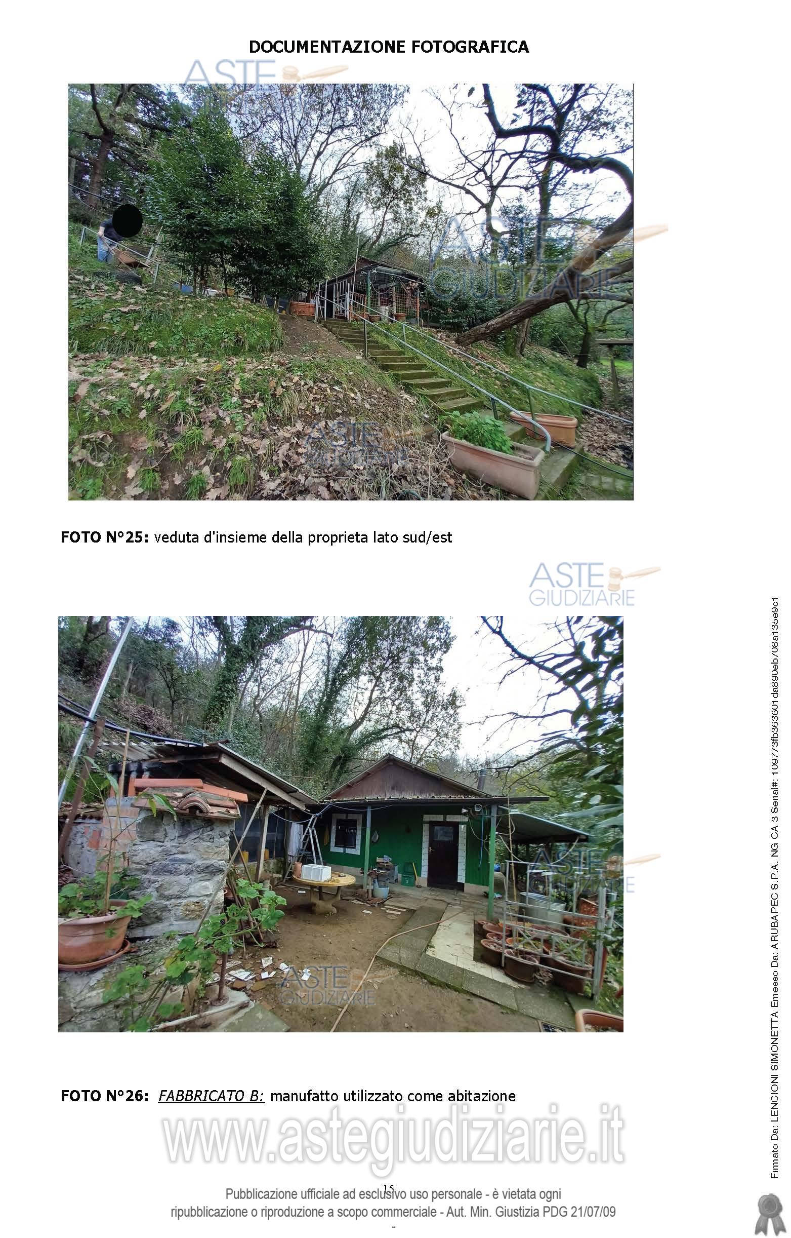 Vendita all'asta Senza incanto, con gara telematica sincrona mista - LOTTO UNICO: complesso immobiliare e terreni. Prezzo base € 178.308,60 (offerta minima € 133.731,45). Data vendita 31/03/2026 ore 15:00. Professionista delegato alla vendita Not. Nannini. Custode Giudiziario Luvisotti - Email "custodieivg@gmail.com". Rif. Tribunale di Lucca - Contenzioso civile n. 205/2025