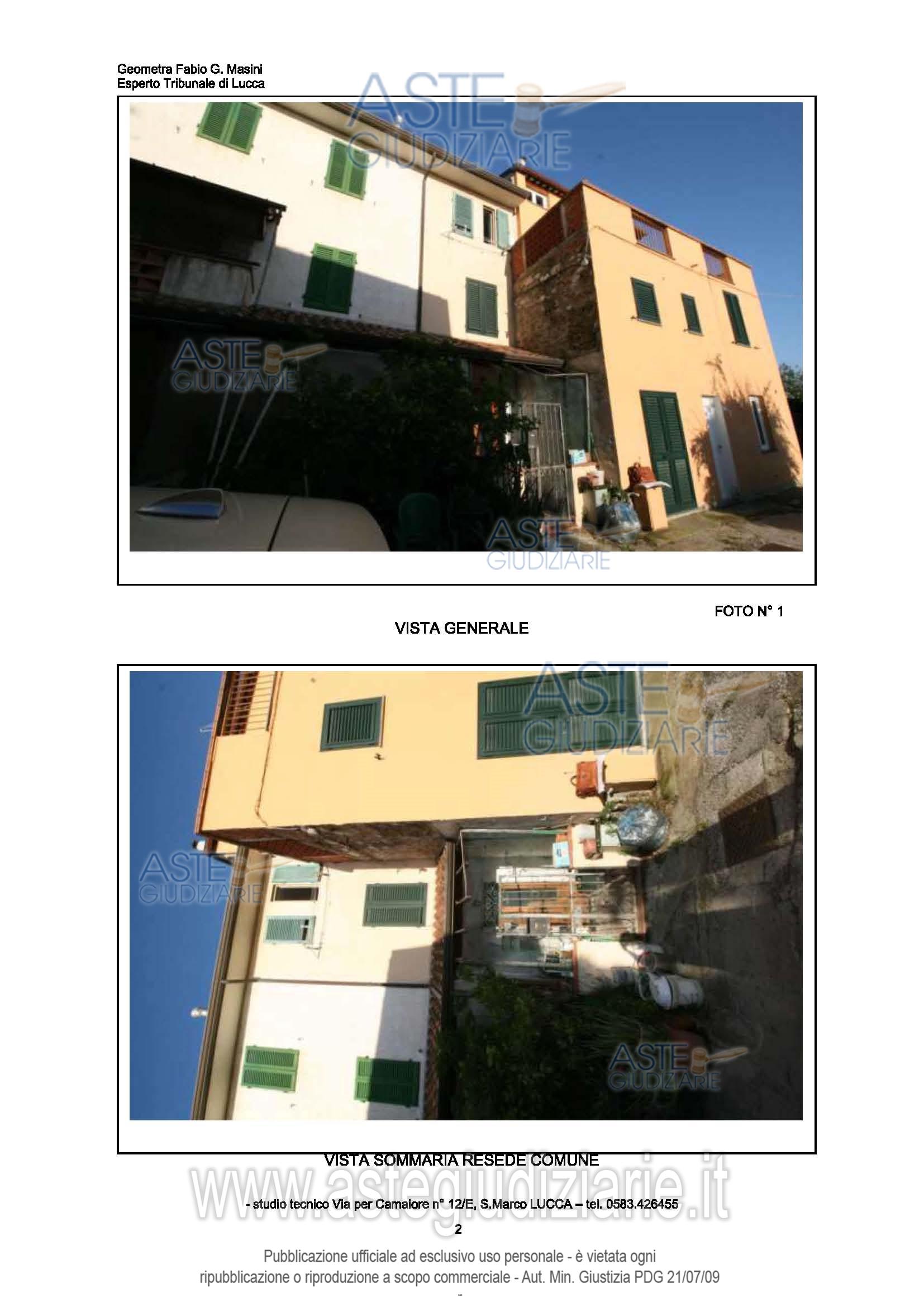 Vendita all'asta Senza incanto, con gara telematica sincrona mista - LOTTO UNICO: Fabbricato per civile abitazione elevato da terra a tetto per tre piani compreso il terrestre, composto al piano terra da cucina e piccolo ripostiglio unito da corpo scale conducente ai piani superiori dove al piano primo sono situati una camera, un disimpegno, al piano secondo un vano aperto suo camera, un bagno. Prezzo base € 36.620,80 (offerta minima € 27.465,60). Data vendita 11/03/2026 ore 10:00. Giudice Cecilia Ciolfi. Professionista delegato alla vendita Dott. Gino Del Prete - Email "DELPRETE.GINO@GMAIL.COM". Custode Giudiziario Irene Luvisotti - Email "custodieivg@gmail.com"; Tel. 0583418555. Rif. Tribunale di Lucca - Espropriazione immobiliare (cartabia) n. 100/2024