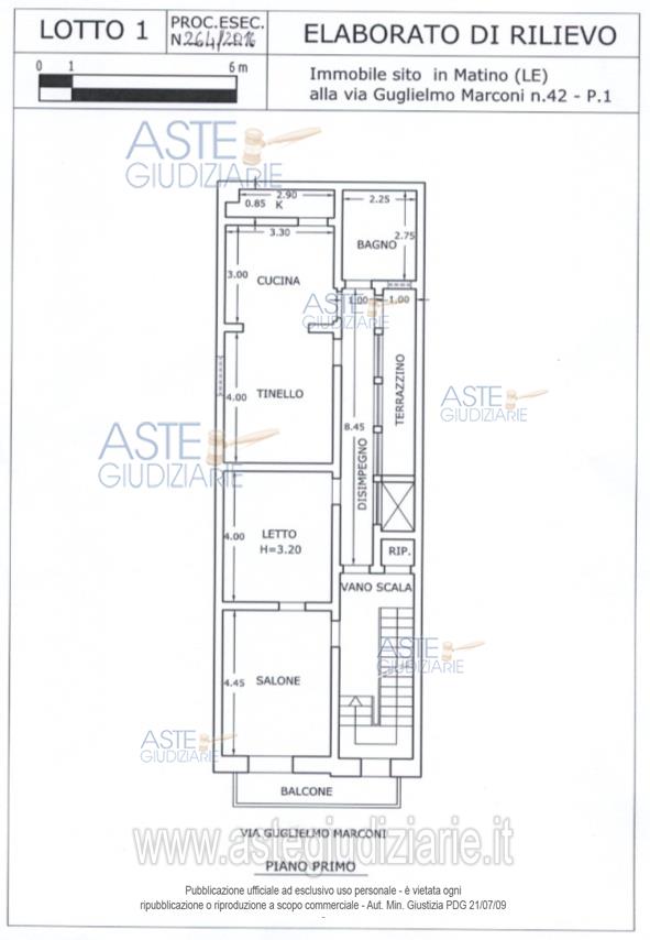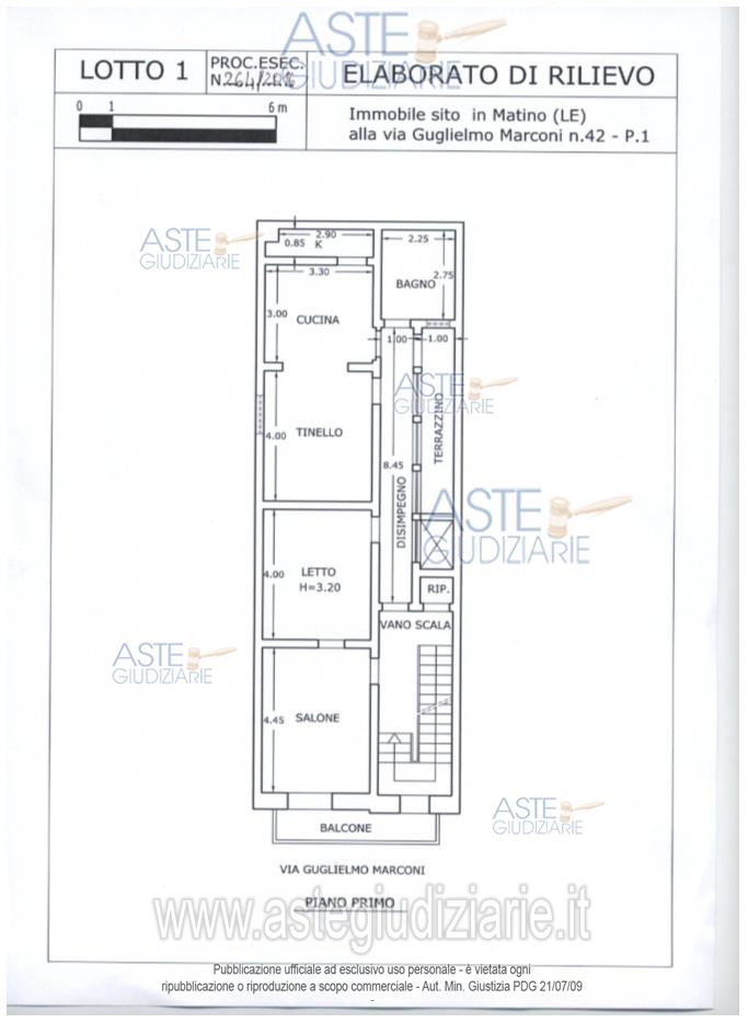 Vendita all'asta Senza incanto, con gara telematica asincrona - LOTTO UNICO: Nuda proprietà per la quota di 1000/1000 di appartamento della superficie commerciale di 113,65 mq.E' posto al piano primo, con accesso da un vano scala posto al piano terra, e risulta avere la seguente consistenza:vano scala, zona ingresso, disimpegno di distribuzione, salone, letto, tinello, cucina, bagno, terrazzino, balcone. Dal vano scala è possibile accedere al lastrico solare. Gli ambienti hanno un'altezza utile interna pari a mt.3,20. Prezzo base € 9.847,00 (offerta minima € 7.386,00). Data inizio operazioni di vendita: 18/05/2026 ore 10:00. Professionista delegato alla vendita Dott. Fabiana Aresta - Email "fabiana.aresta@gmail.com"; Cell. 3383941485. Custode Giudiziario Dott. Fabiana Aresta - Email "fabiana.aresta@gmail.com"; Cell. 3383941485. Rif. Tribunale di Lecce - Esecuzione immobiliare post legge 80 n. 264/2016