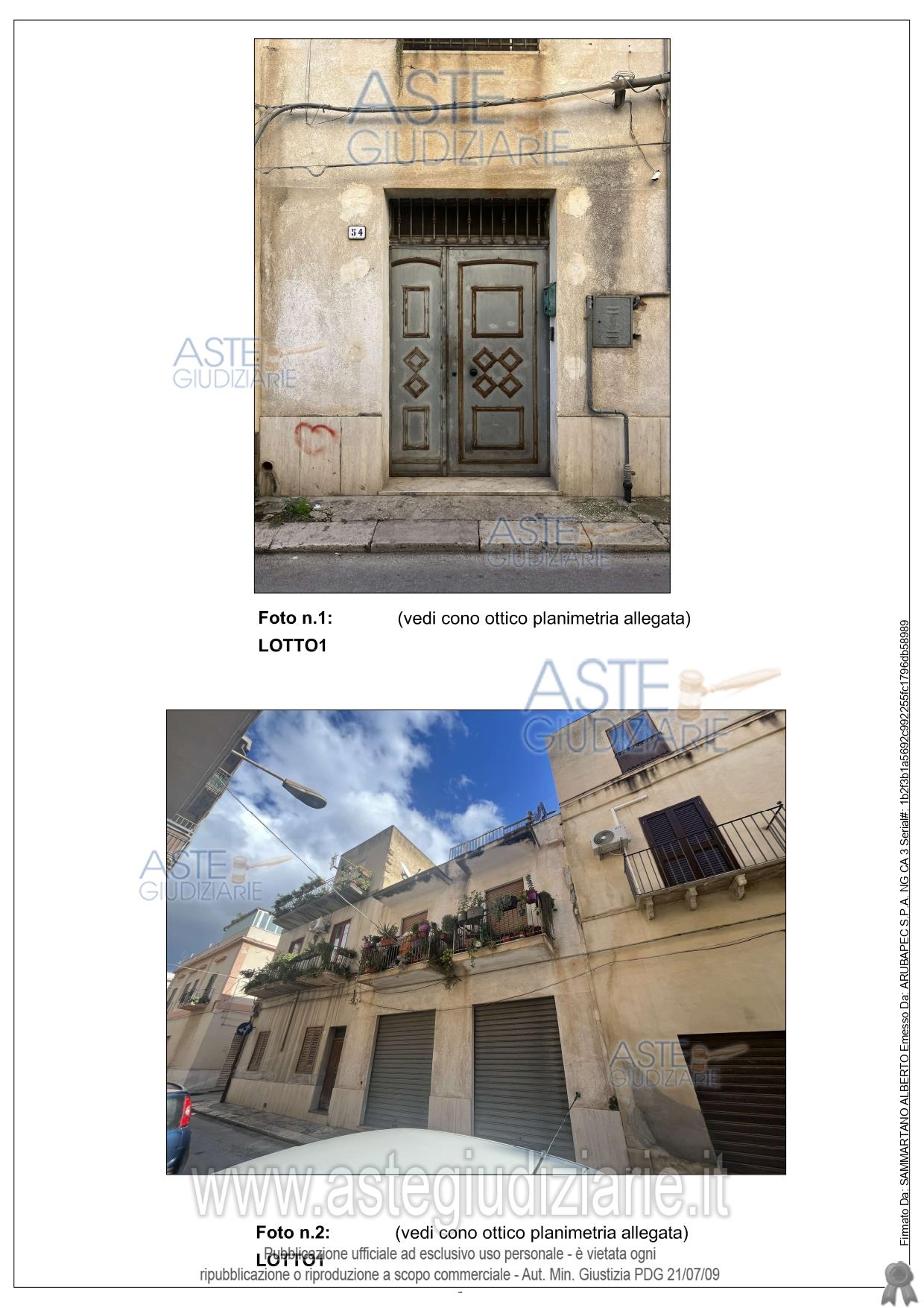 Vendita all'asta Senza incanto, con gara telematica asincrona - LOTTO 1: Piena proprietà per la quota dell’intero del fabbricato, adibito a civile abitazione, posto a piano primo con accesso da un androne esclusivo di piano terra e terrazzo esclusivo a piano primo. Prezzo base € 36.775,24 (offerta minima € 27.581,43). Data inizio operazioni di vendita: 13/05/2026 ore 17:00. Giudice Marcello Bellomo. Professionista delegato alla vendita Avv. Francesca Leone. Custode Giudiziario Avv. Francesca Leone - Email "francescaleoneavv@libero.it"; Cell. 3333169028; Tel. 092444377. Rif. Tribunale di Marsala - Espropriazione immobiliare (cartabia) n. 161/2024