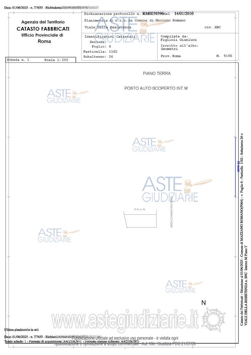 Vendita all'asta Senza incanto, con gara telematica asincrona - LOTTO 1: Bene n. 1:Quota 1/1 del diritto di proprietà di un’abitazione ubicata a Mazzano Romano (RM)in Via Capomandro n.10, PT int. 2, composto da soggiorno con angolo cottura, n. 2 camere, bagno, disimpegno con una superficie con una superficie di mq 64,50 e corti esclusive di mq 65.00; Bene n 2: Bene n 2:Quota 1/1 del diritto di proprietà di un posto auto scoperto ubicato a Mazzano Romano (RM)- Via Capomandro, 10. Prezzo base € 43.600,00 (offerta minima € 32.700,00). Data inizio operazioni di vendita: 30/06/2026 ore 15:00. Giudice: Francesco Lupia.