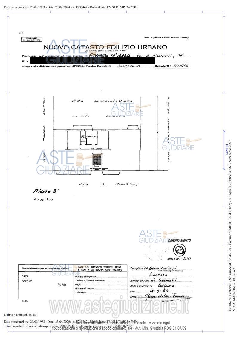 Vendita all'asta Senza incanto, con gara telematica asincrona - LOTTO UNICO: Appartamento posto al piano terzo (quarto fuori terra) di un condominio e composto da locale ingresso-disimpegno, soggiorno, cucina, una camera da letto e un bagno e dotato di terrazzo posto a servizio del locale cucina e della camera da letto. Autorimessa di pertinenza. Prezzo base € 27.562,50 (offerta minima € 20.671,88). Data inizio operazioni di vendita: 12/11/2025 ore 15:00. Giudice Luca Verzeni. Professionista delegato alla vendita Avv. Giovanni Bertino - Email "segreteria@giovannibertino.it"; Tel. 035213033. Custode Giudiziario Roberta Guarneri - ( Ivg Bergamo) - Email "immobiliare@ivgbergamo.it"; Tel. 0350763005. Rif. Tribunale di Bergamo - Espropriazione immobiliare (cartabia) n. 109/2024