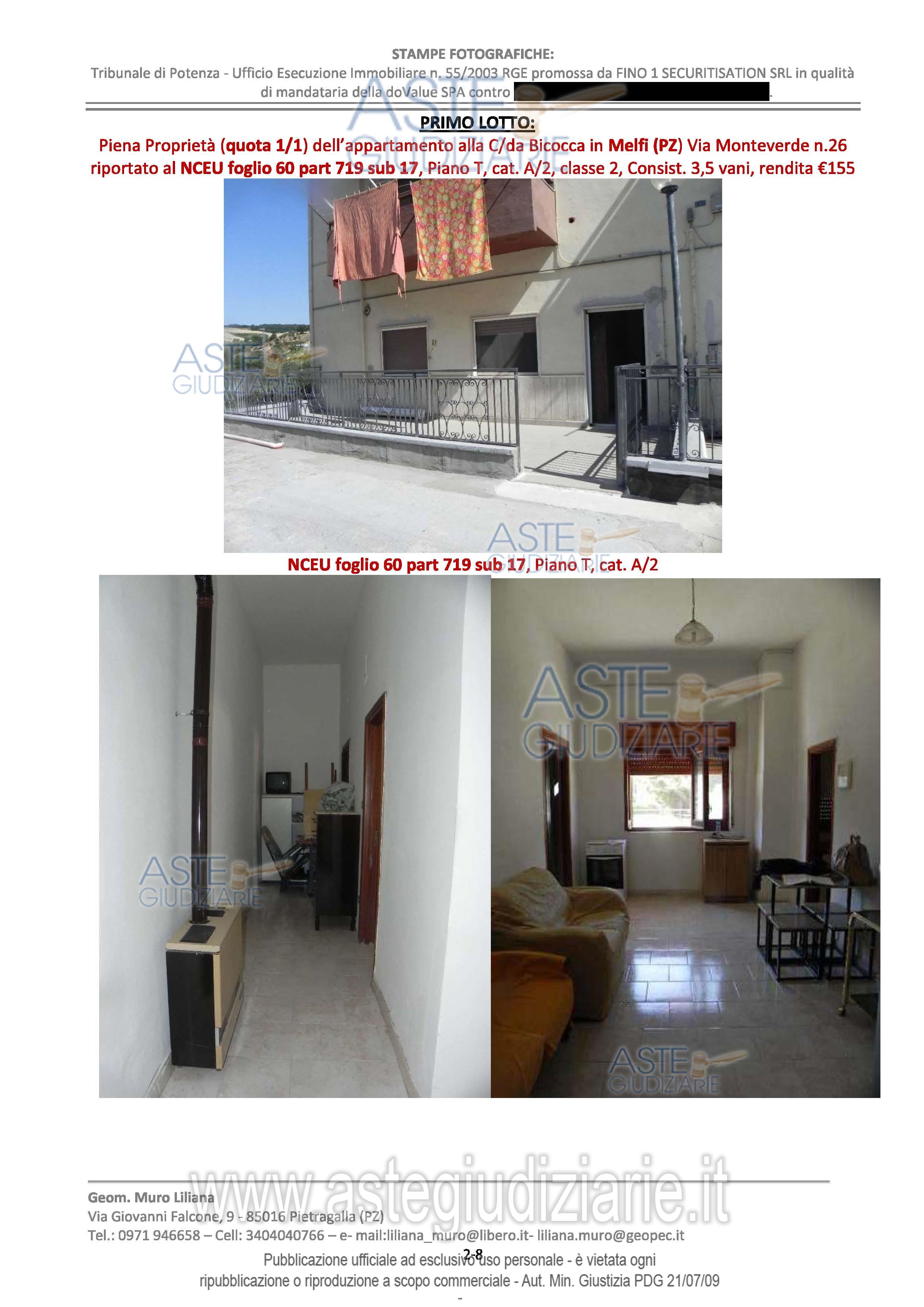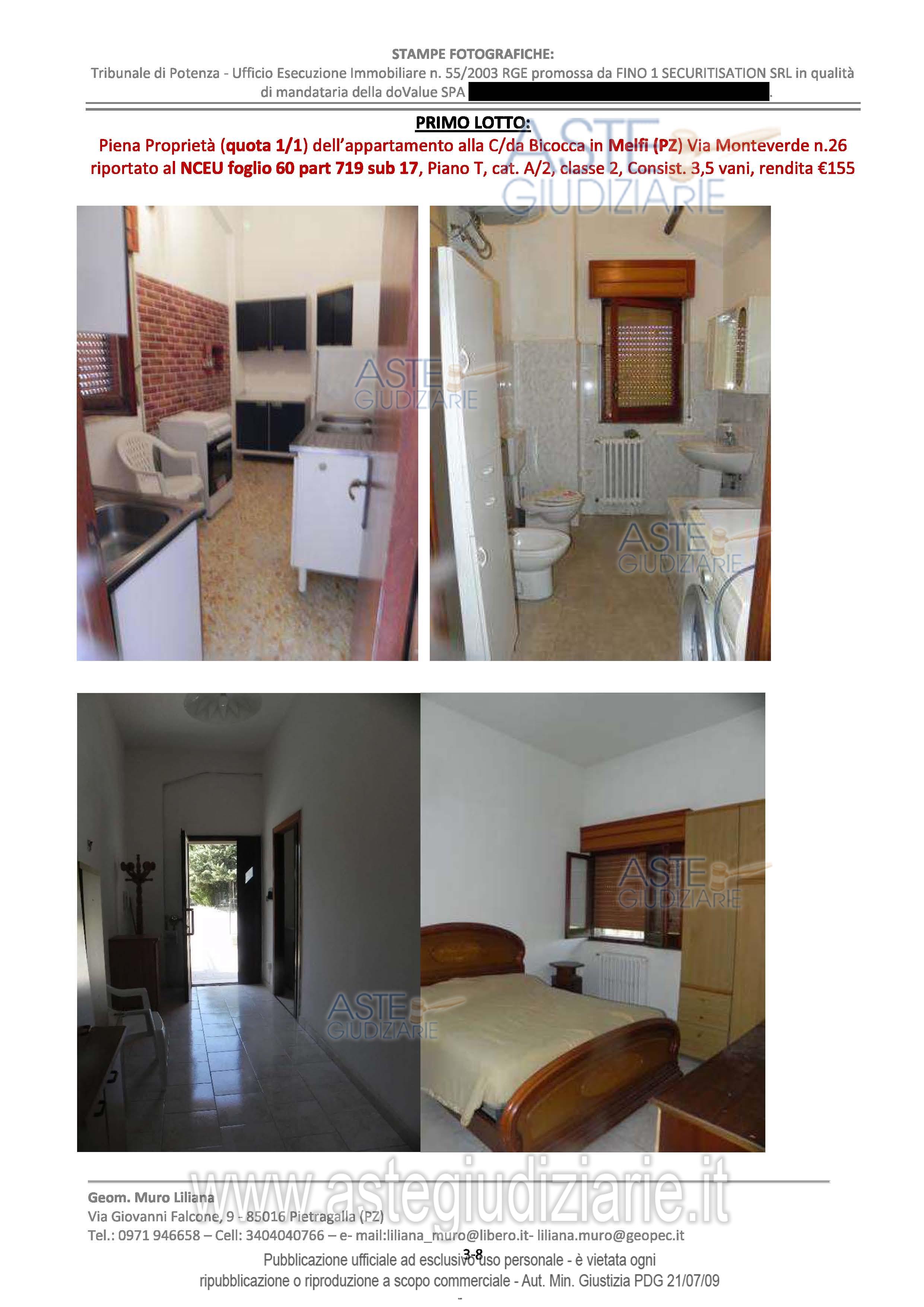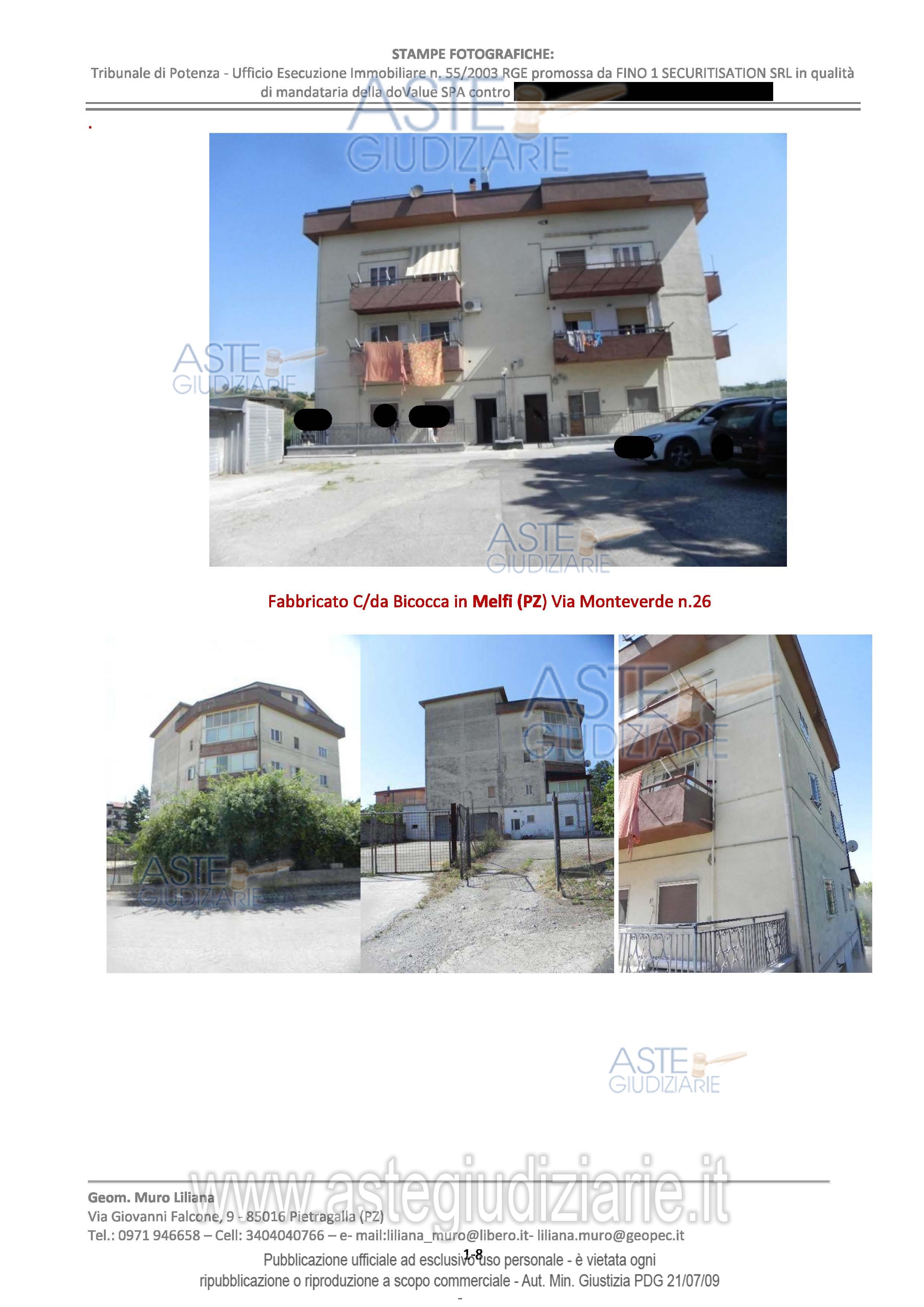 Custode Giudiziario: Avv. Antonio Calice - Email "studiocalice@virgilio.it"; Tel. 0972/720015; Cell. 335/6090455.