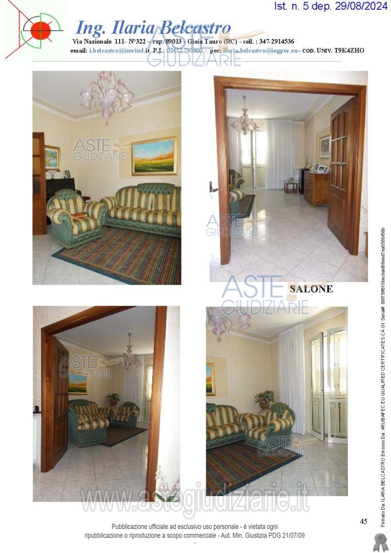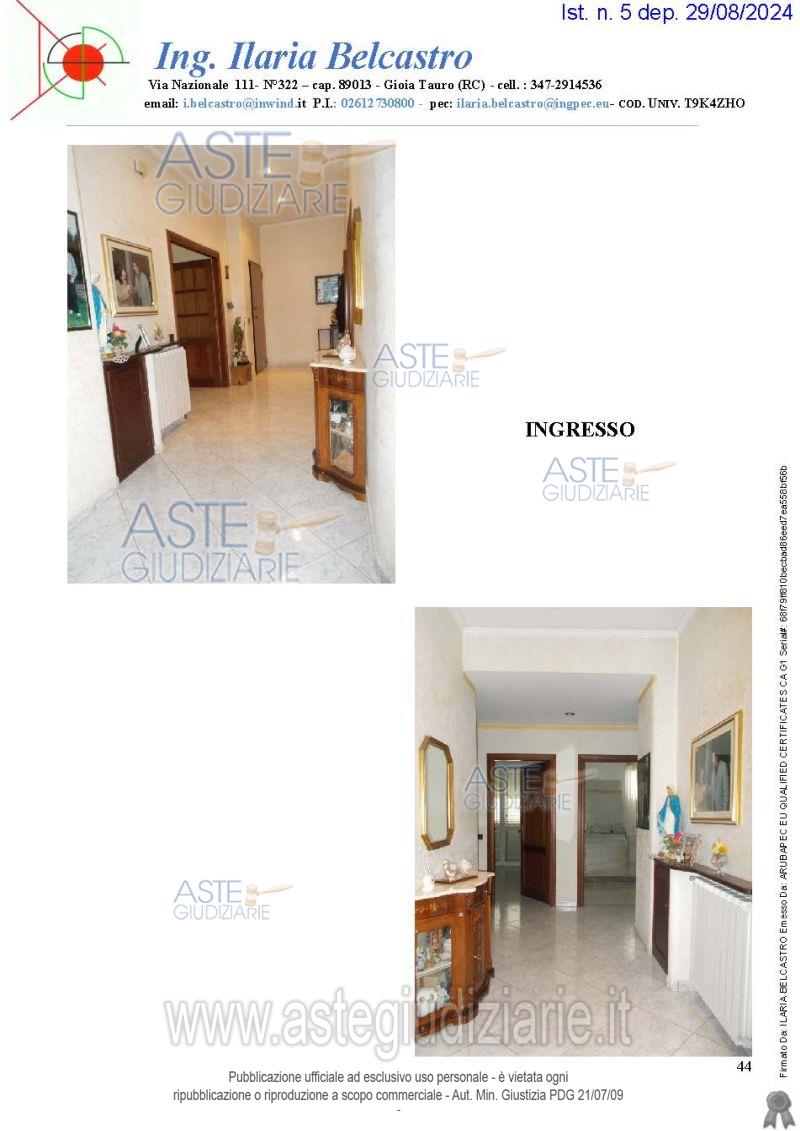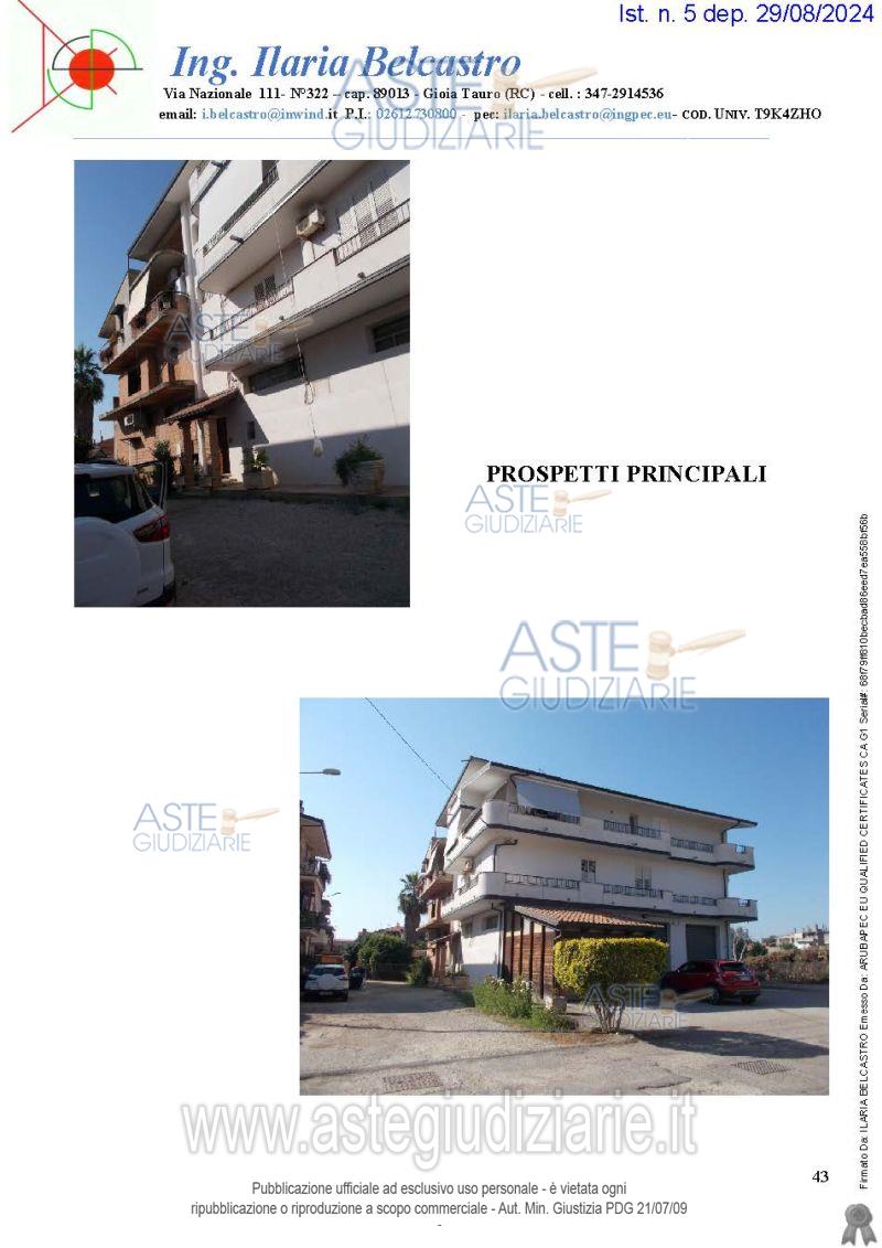 Vendita all'asta Senza incanto, con gara telematica asincrona - LOTTO 0: Piena proprietà di abitazione di tipo civile (cat. A/2), identificata al Foglio 9, part.1190 sub 4, del N.C.E.U. di 170 mq di superficie coperta, oltre 45 mq balconi. Prezzo base € 43.824,09 (offerta minima € 32.868,06). Data inizio operazioni di vendita: 31/03/2026 ore 09:30. Giudice Dott. Marta Caineri. Professionista delegato alla vendita Avv. Stefania Marcucci - Email "avv.stefaniamarcucci@yahoo.it"; Tel. 3284344141. Custode Giudiziario Avv. Stefania Marcucci - Email "avv.stefaniamarcucci@yahoo.it"; Tel. 3284344141. Rif. Tribunale di Palmi - Espropriazione immobiliare (cartabia) n. 23/2024