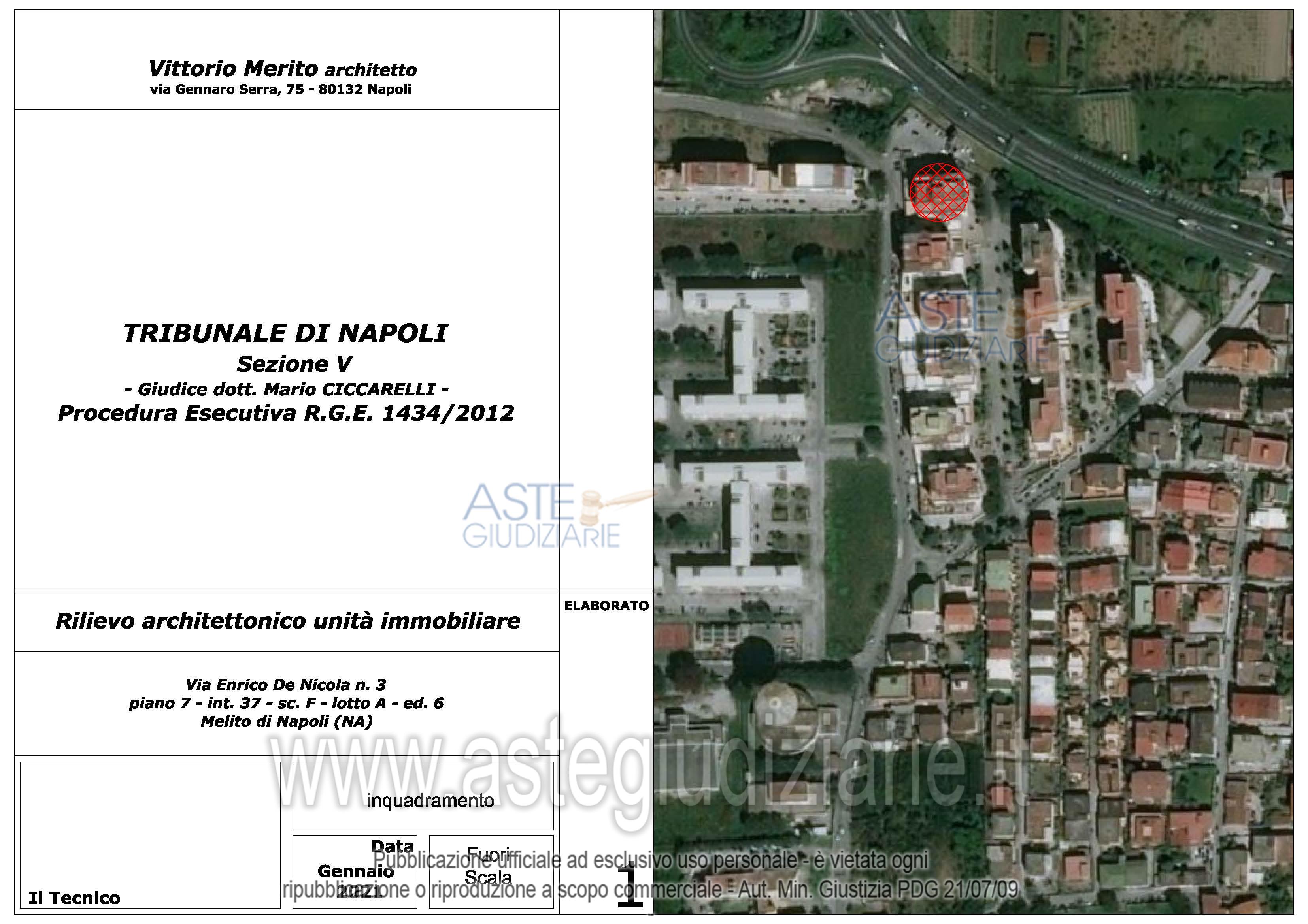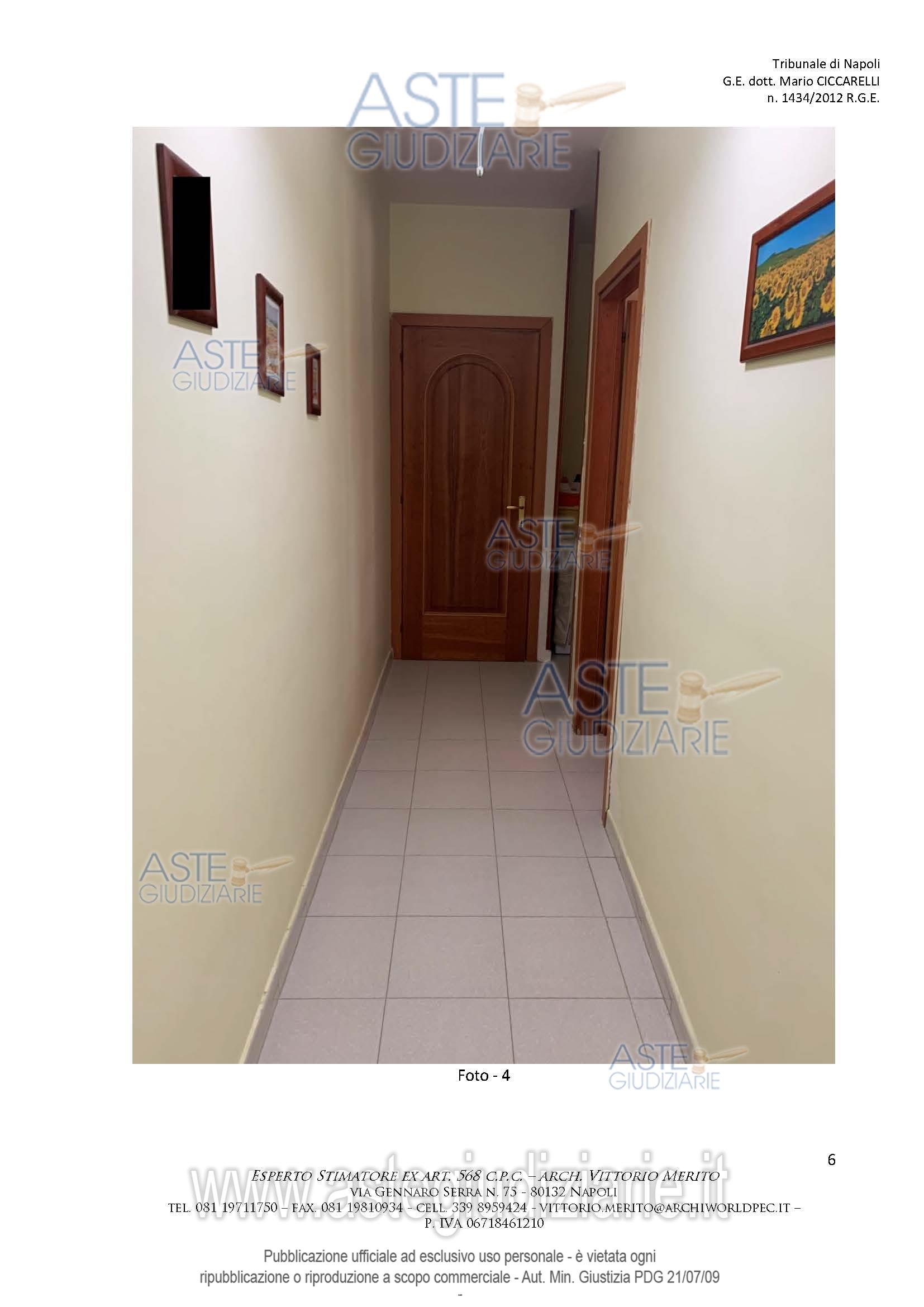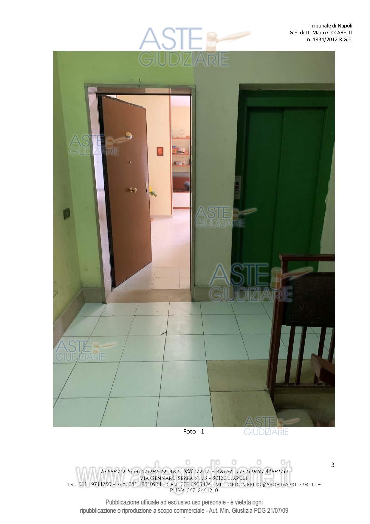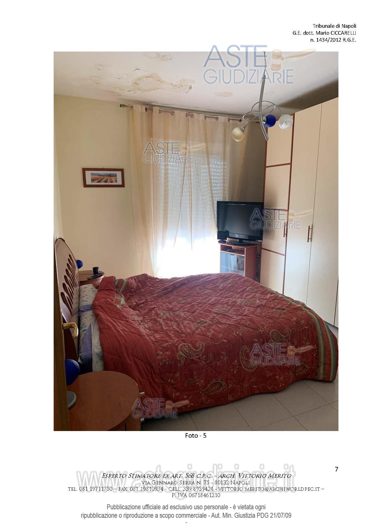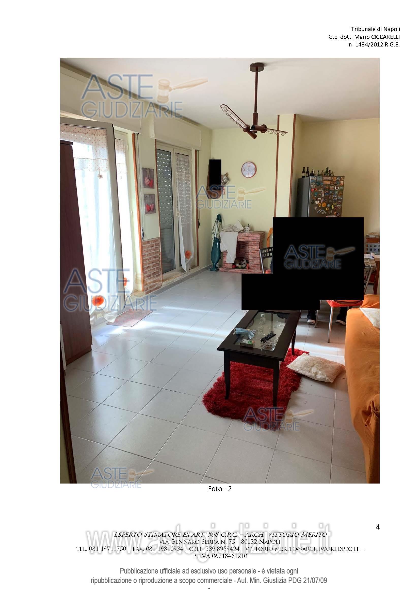 Vendita all'asta Senza incanto, con gara telematica asincrona - LOTTO 4: Piena e intera proprietà dei seguenti immobili siti in Melito di Napoli alla Via Enrico de Nicola n° 3 – Parco Aurora:- Appartamento al piano 7, interno 37, scala F, lotto A, edificio 6, 5,5 vani, sup. cat. 108 mq - Box al piano S2, sup. cat. 17 mq, interno 35, scala F, lotto A, edificio 6. Prezzo base € 60.019,00 (offerta minima € 45.015,00). Data inizio operazioni di vendita: 10/02/2026 ore 15:30. Giudice Ciccarelli. Professionista delegato alla vendita Avv. Valeria Collicelli - Email "valcollicelli@yahoo.it"; Cell. 3935402256. Custode Giudiziario Avv. Valeria Collicelli - Email "valcollicelli@yahoo.it"; Cell. 3935402256. Rif. Tribunale di Napoli - Esecuzione immobiliare post legge 80 n. 1434/2012