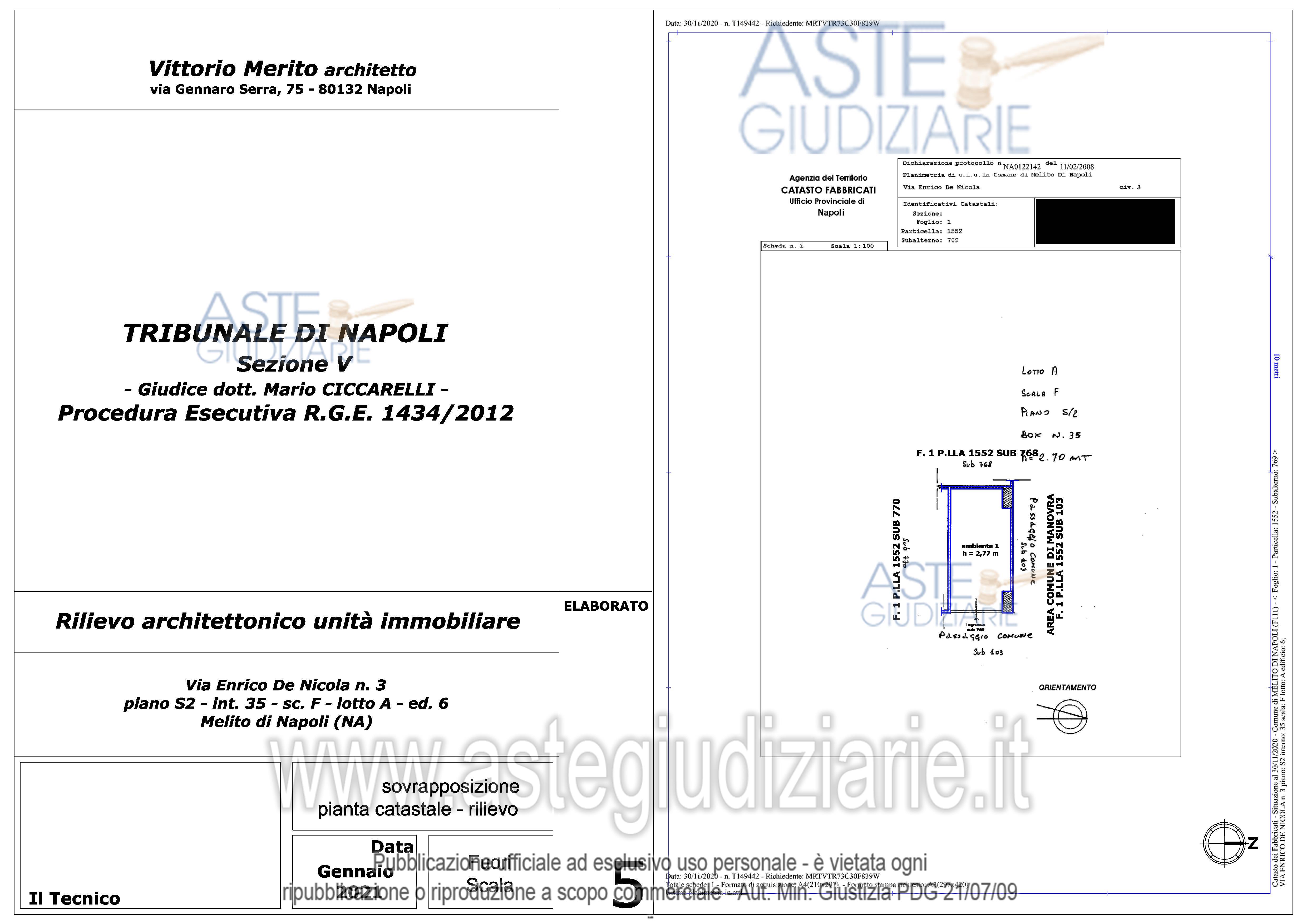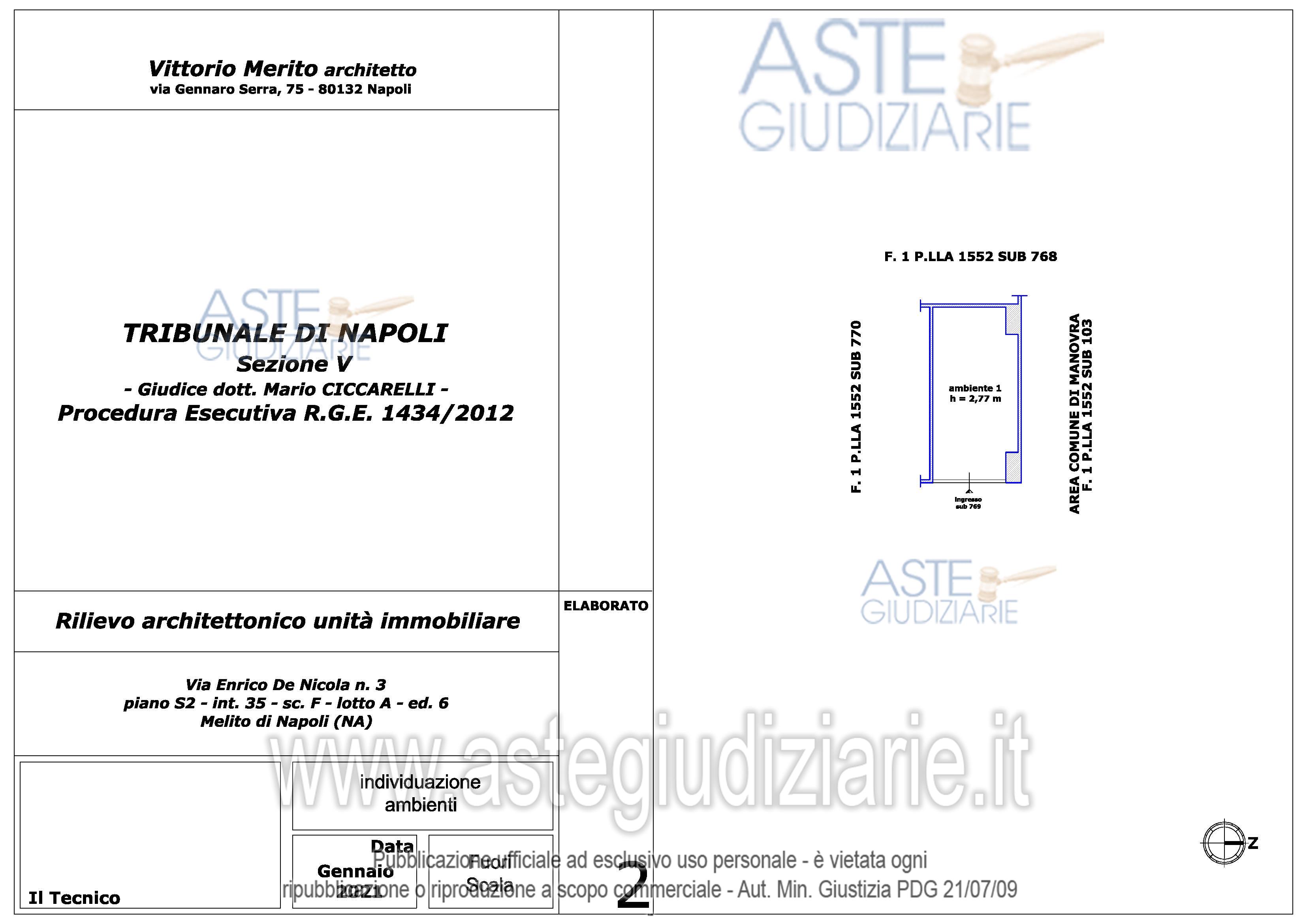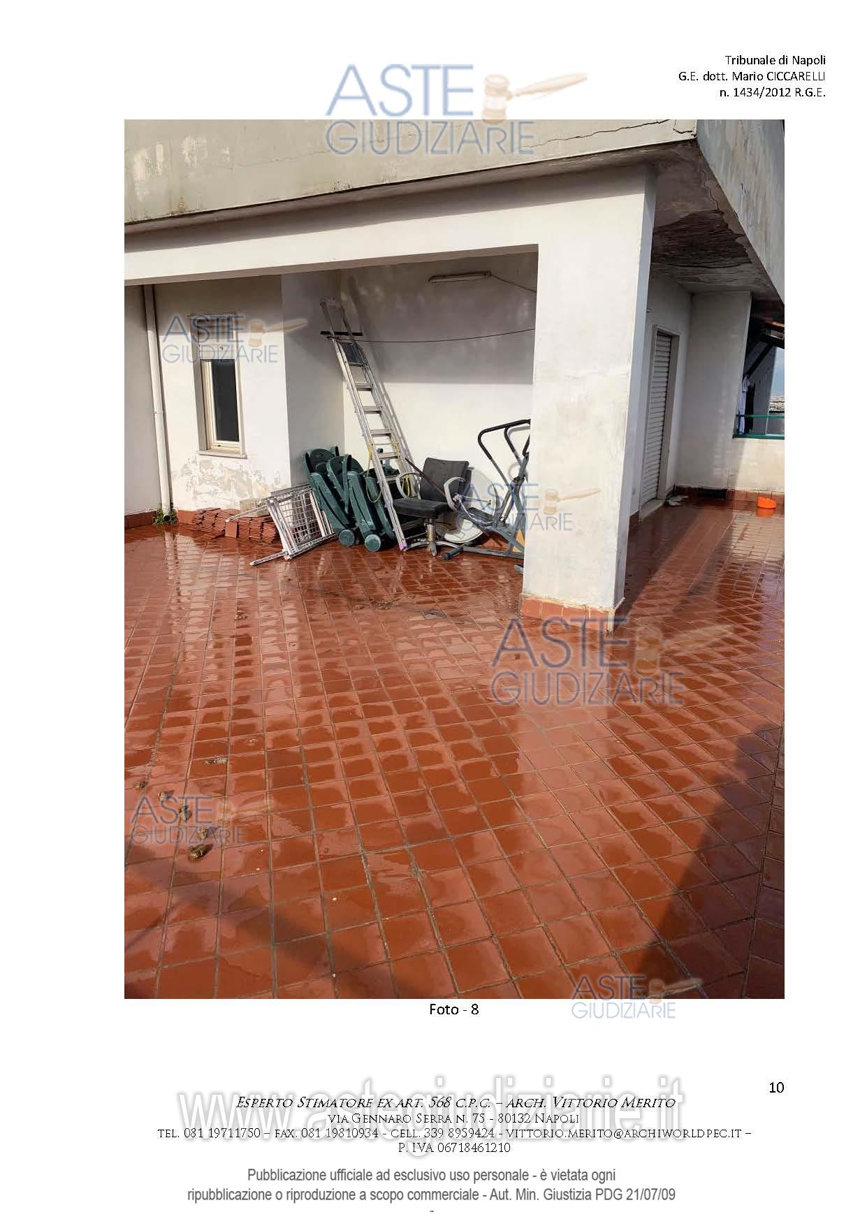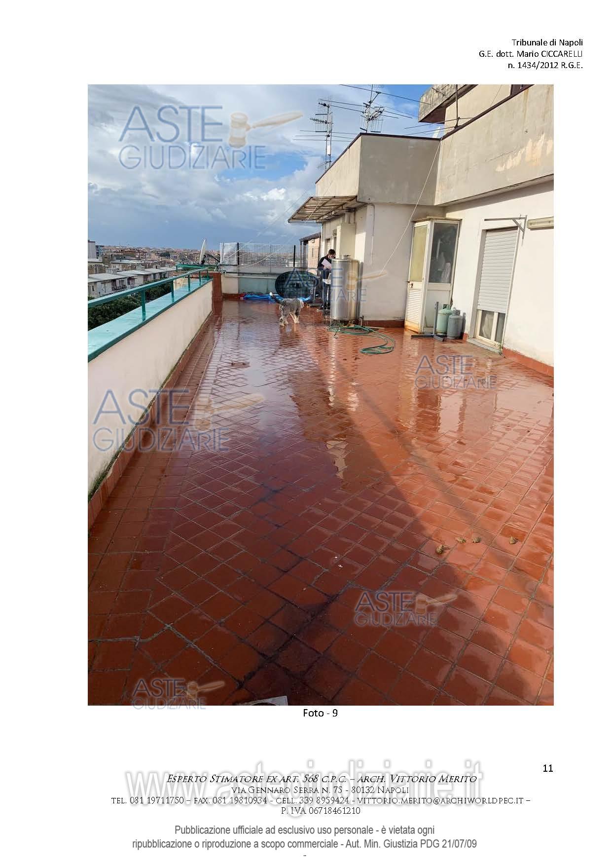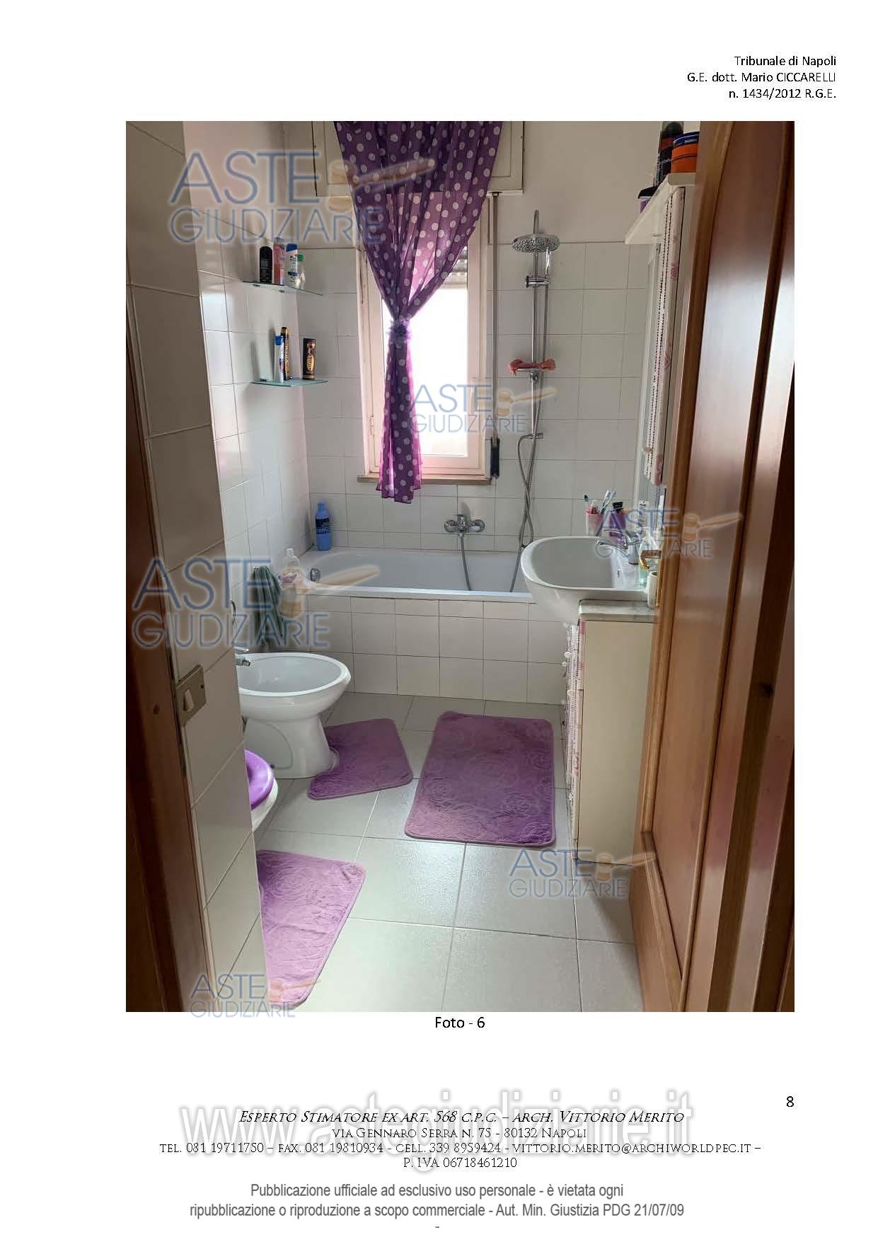 Vendita all'asta Senza incanto, con gara telematica asincrona - LOTTO 4: Piena e intera proprietà dei seguenti immobili siti in Melito di Napoli alla Via Enrico de Nicola n° 3 – Parco Aurora:- Appartamento al piano 7, interno 37, scala F, lotto A, edificio 6, 5,5 vani, sup. cat. 108 mq - Box al piano S2, sup. cat. 17 mq, interno 35, scala F, lotto A, edificio 6. Prezzo base € 60.019,00 (offerta minima € 45.015,00). Data inizio operazioni di vendita: 10/02/2026 ore 15:30. Giudice Ciccarelli. Professionista delegato alla vendita Avv. Valeria Collicelli - Email "valcollicelli@yahoo.it"; Cell. 3935402256. Custode Giudiziario Avv. Valeria Collicelli - Email "valcollicelli@yahoo.it"; Cell. 3935402256. Rif. Tribunale di Napoli - Esecuzione immobiliare post legge 80 n. 1434/2012